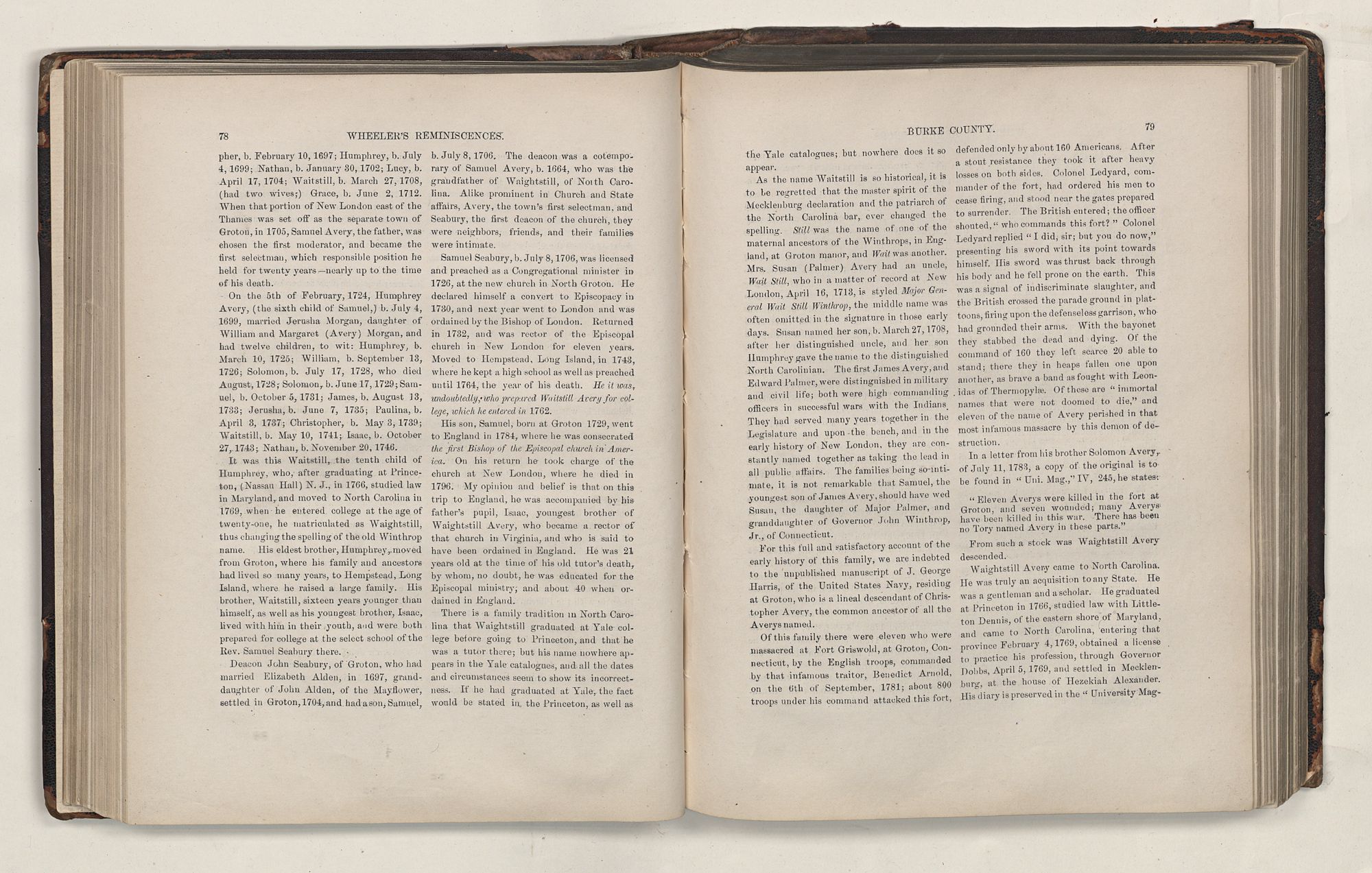 Life, character and services of Waightstill Avery. Genealogy of the Averys. The McDowell family; its genealogy and services in the Revolution. The Carson family. Life and services of John Carson, the founder of the family. Sketches of Samuel P. Carson; of Israel Pickens; of David Newland; of Todd R. Caldwell; of James William Wilson.