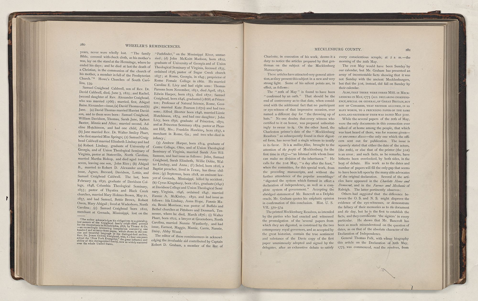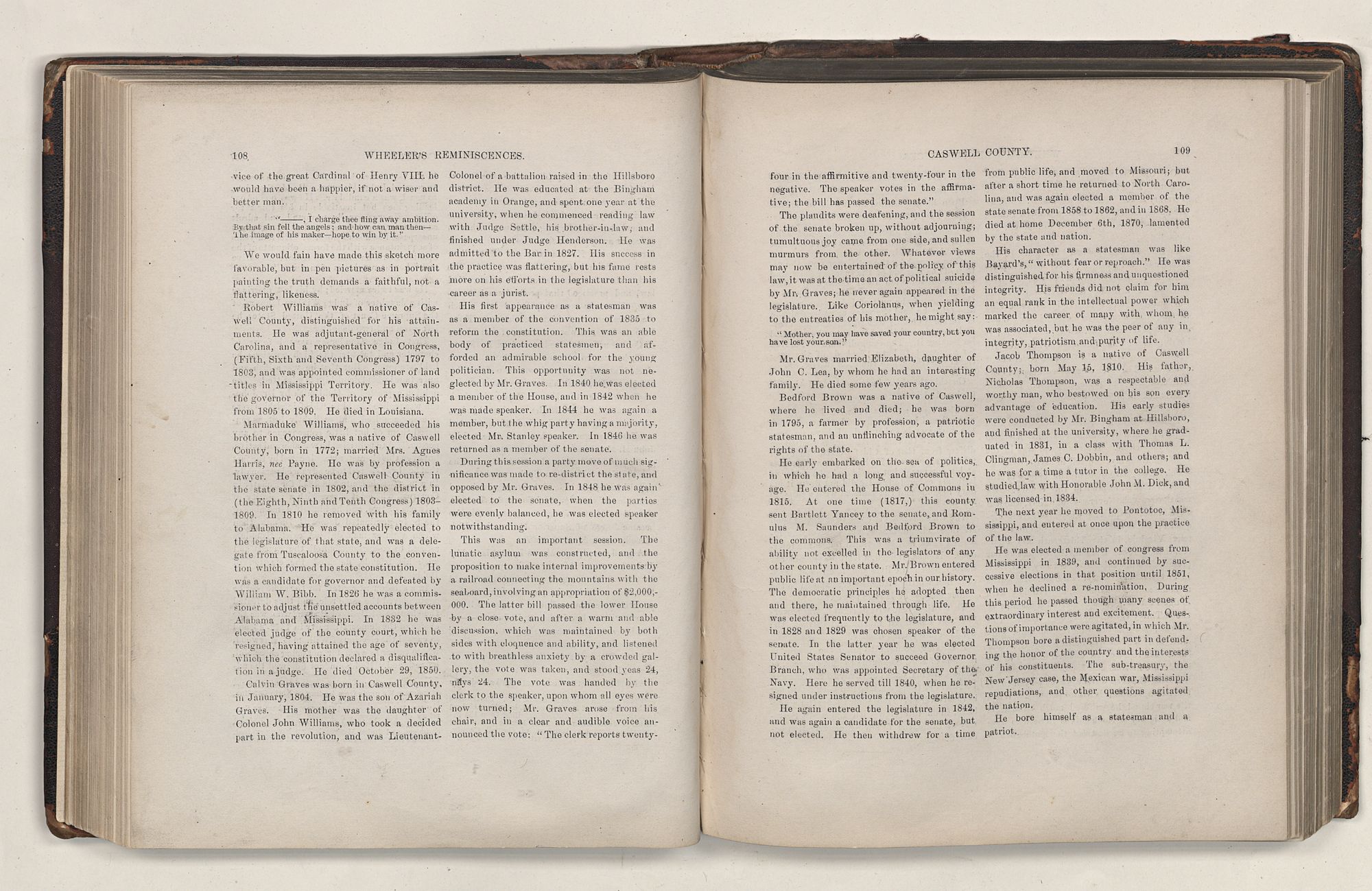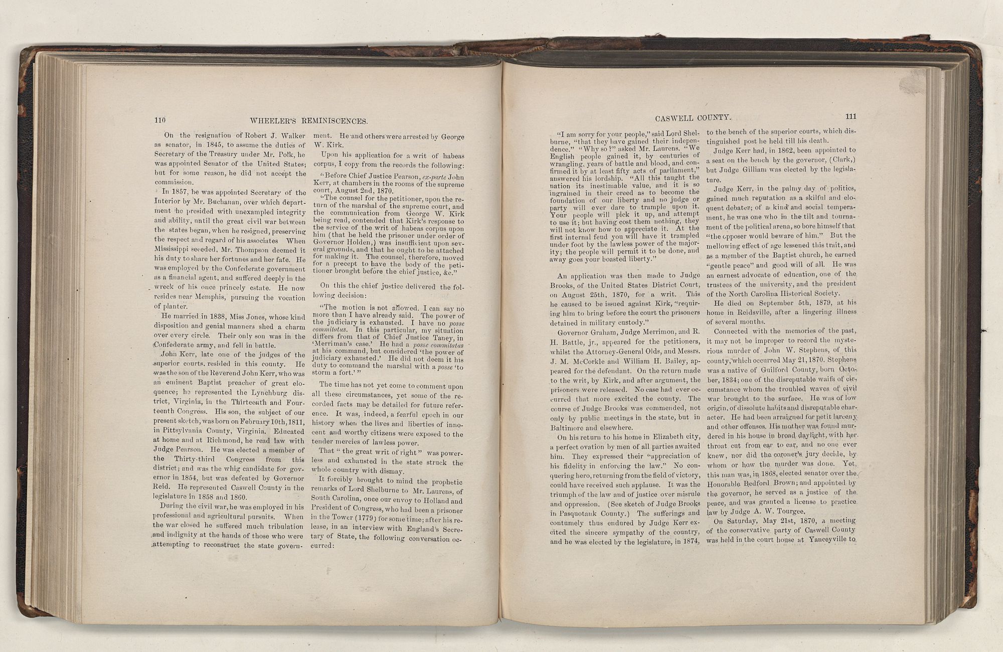 Life, character and services of Richard Caswell, the first Governor of the State under the Constitution. Genealogy of the family. Sketches of Bartlett Yancey; of Romulus M. Saunders; of Robert and Marmaduke Williams; of Calvin Graves; of Bedford Brown; of Jacob Thompson, Secretary of Interior in 1857, and Member of Congress from Mississippi; all natives of Caswell County. John Kerr, his sufferings at the hands of political opponents, and his release. The mysterious murder of John W. Stevens; his character.