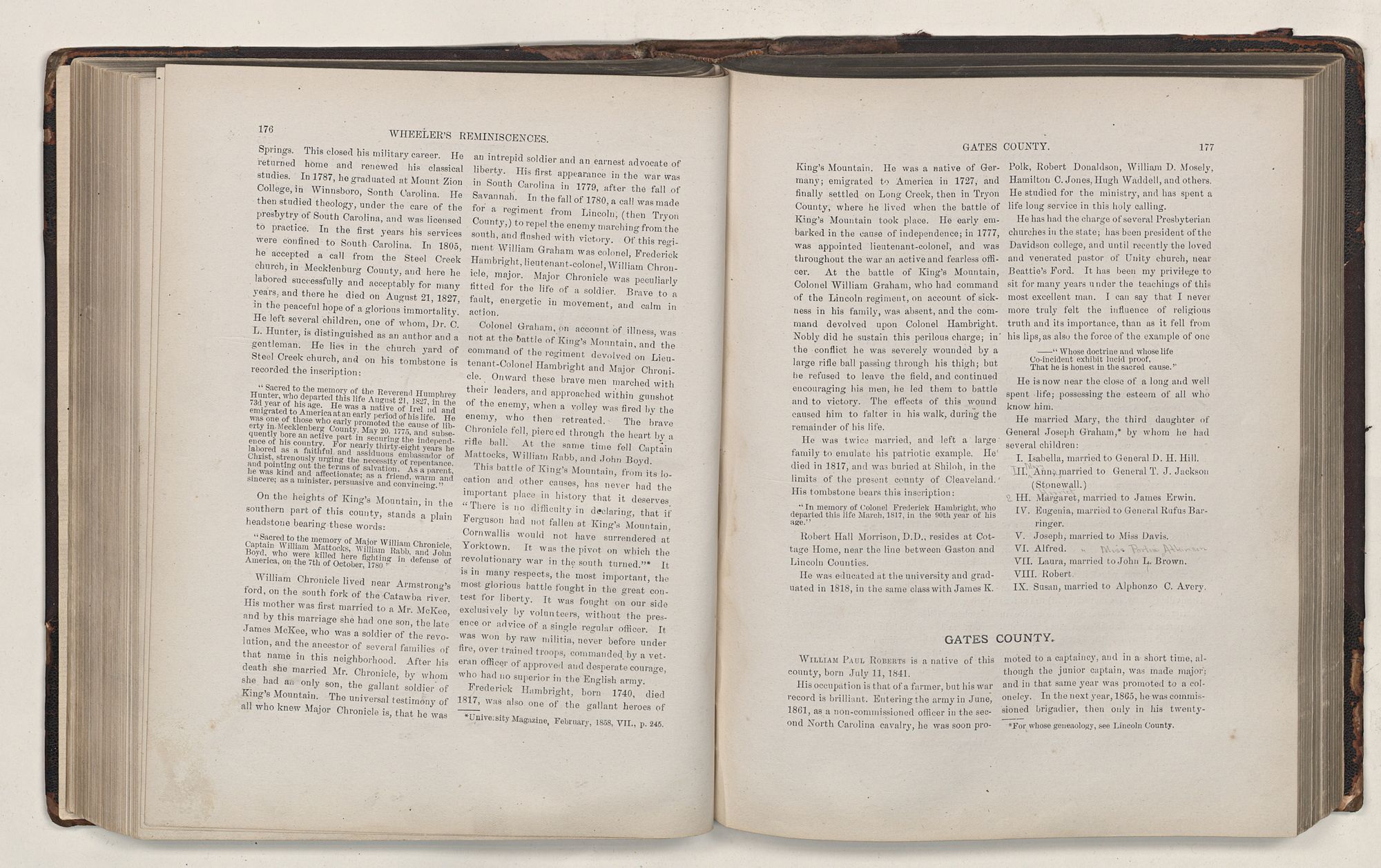 Sketch of Rev. Humphrey Hunter; Major Wm. Chronicle; of Rev. R. H. Morrison of Gaston County; of William Paul Roberts, of Gates; of John Penn of Granville, one of the Signers of the Declaration of