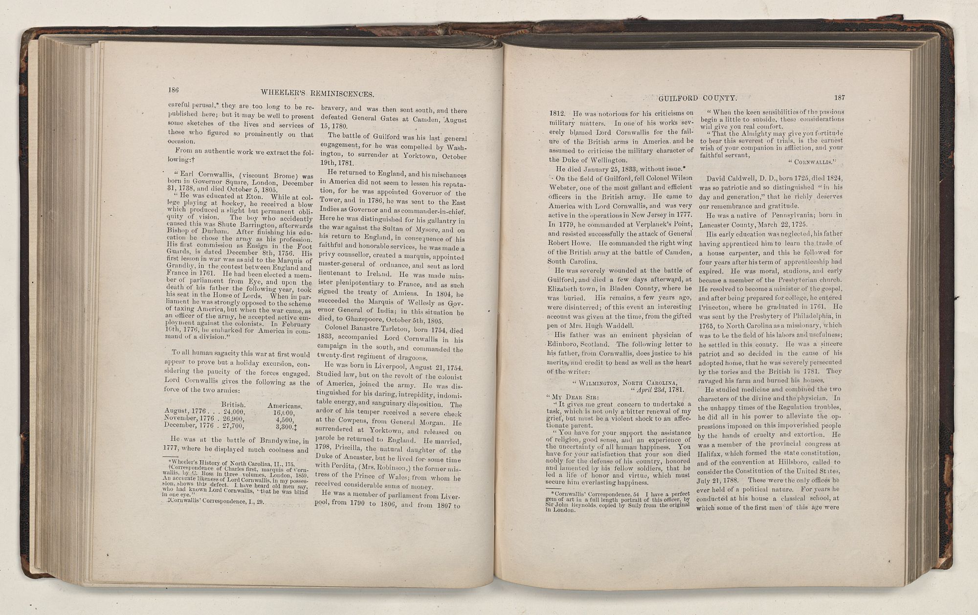 Webster, Col. Wilson, letter to, by Lord Cornwallis187Wynns, James D.120, 216