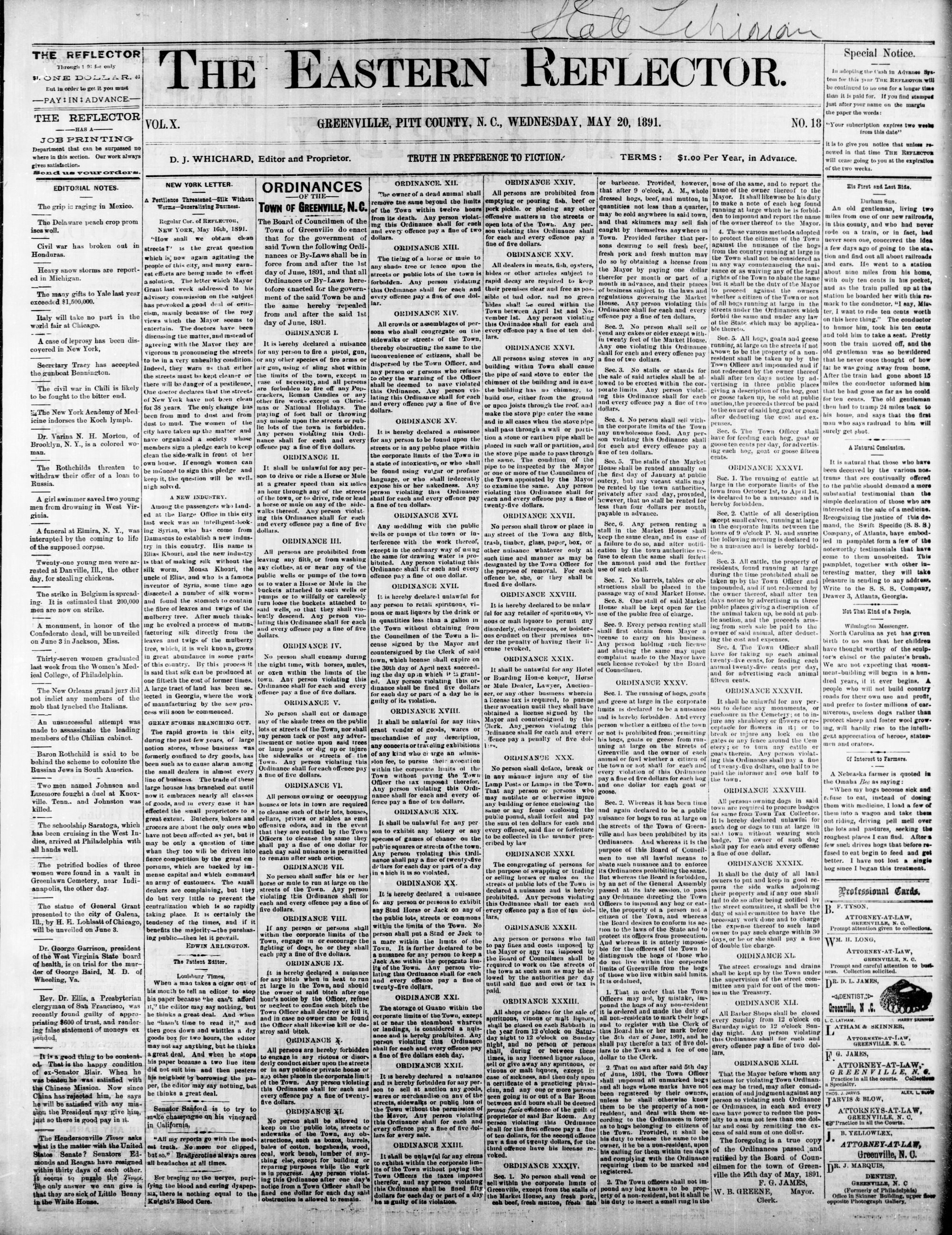 GREENVILLE, PITT COUNTY, N. C, WEDNESDAY, MAY 1891.