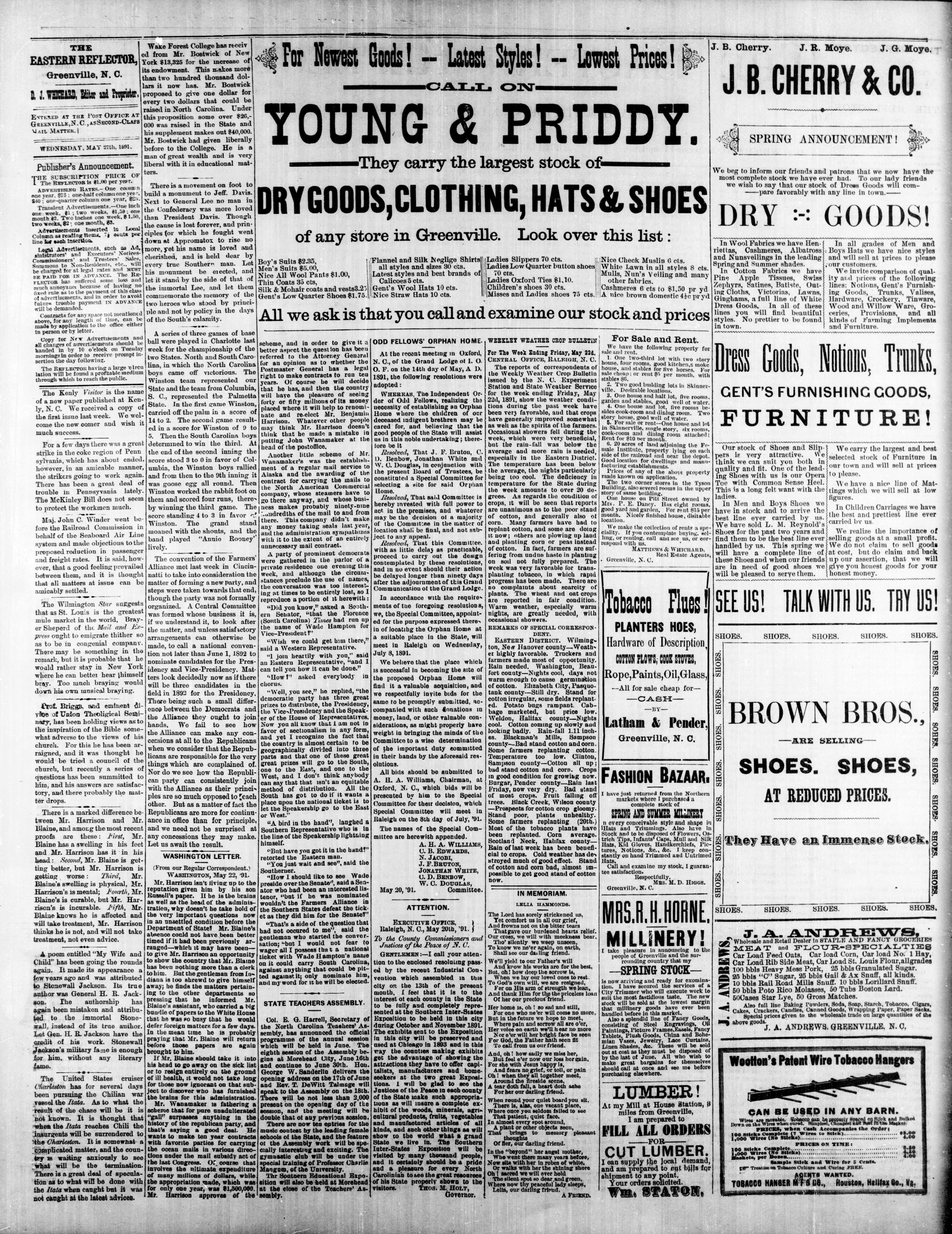 GREENVILLE, PITT COUNTY, N. C, WEDNESDAY, MAY 1891.