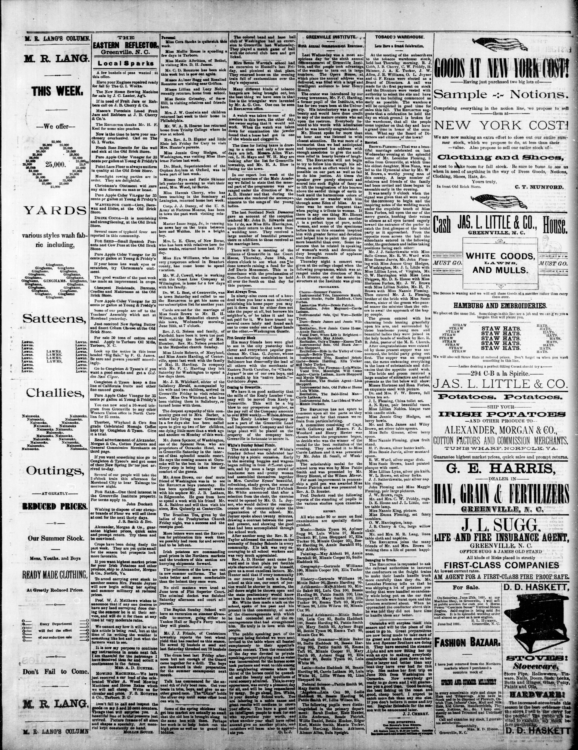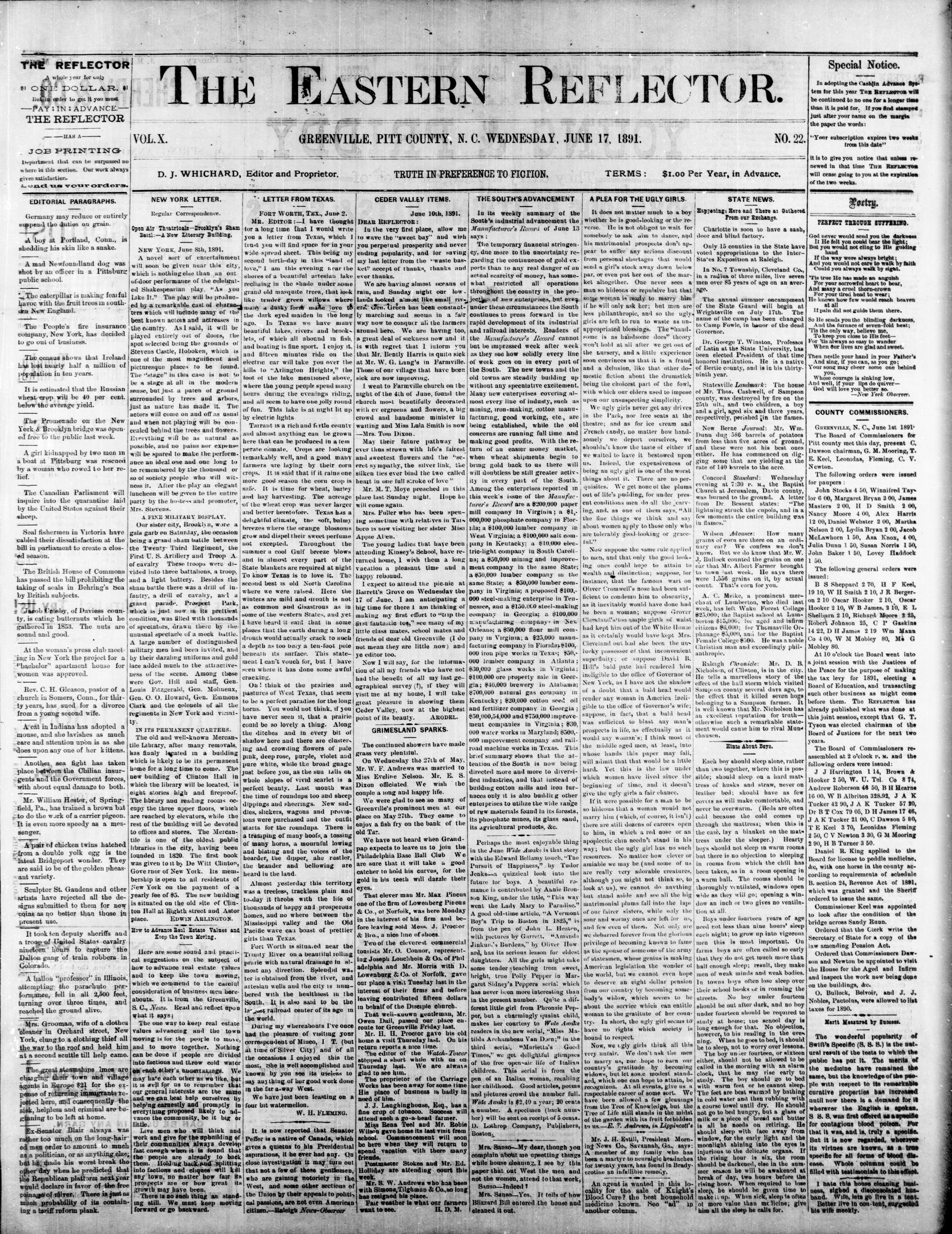 GREENVILLE, PITT COUNTY, N. C. WEDNESDAY, JUNE 1891.