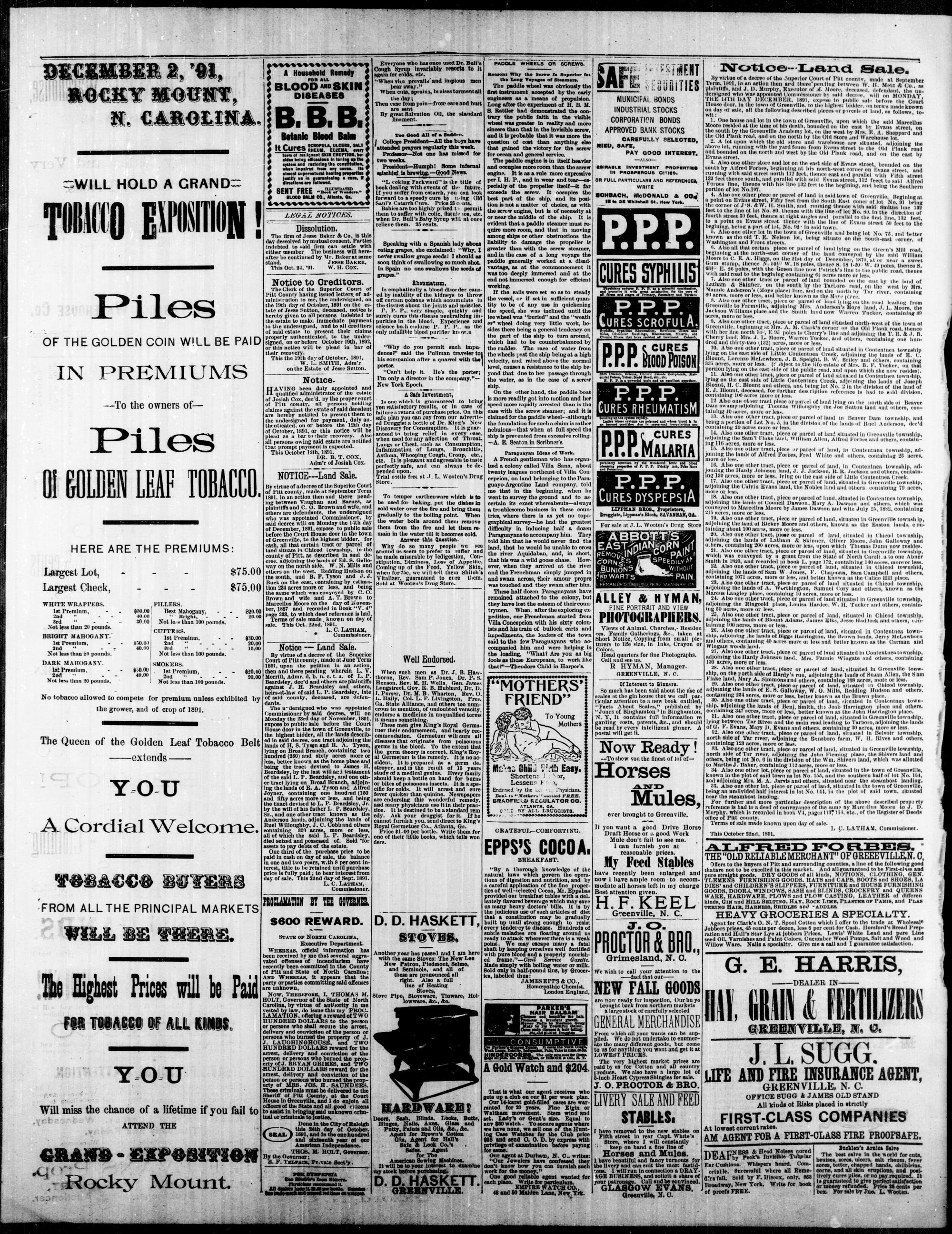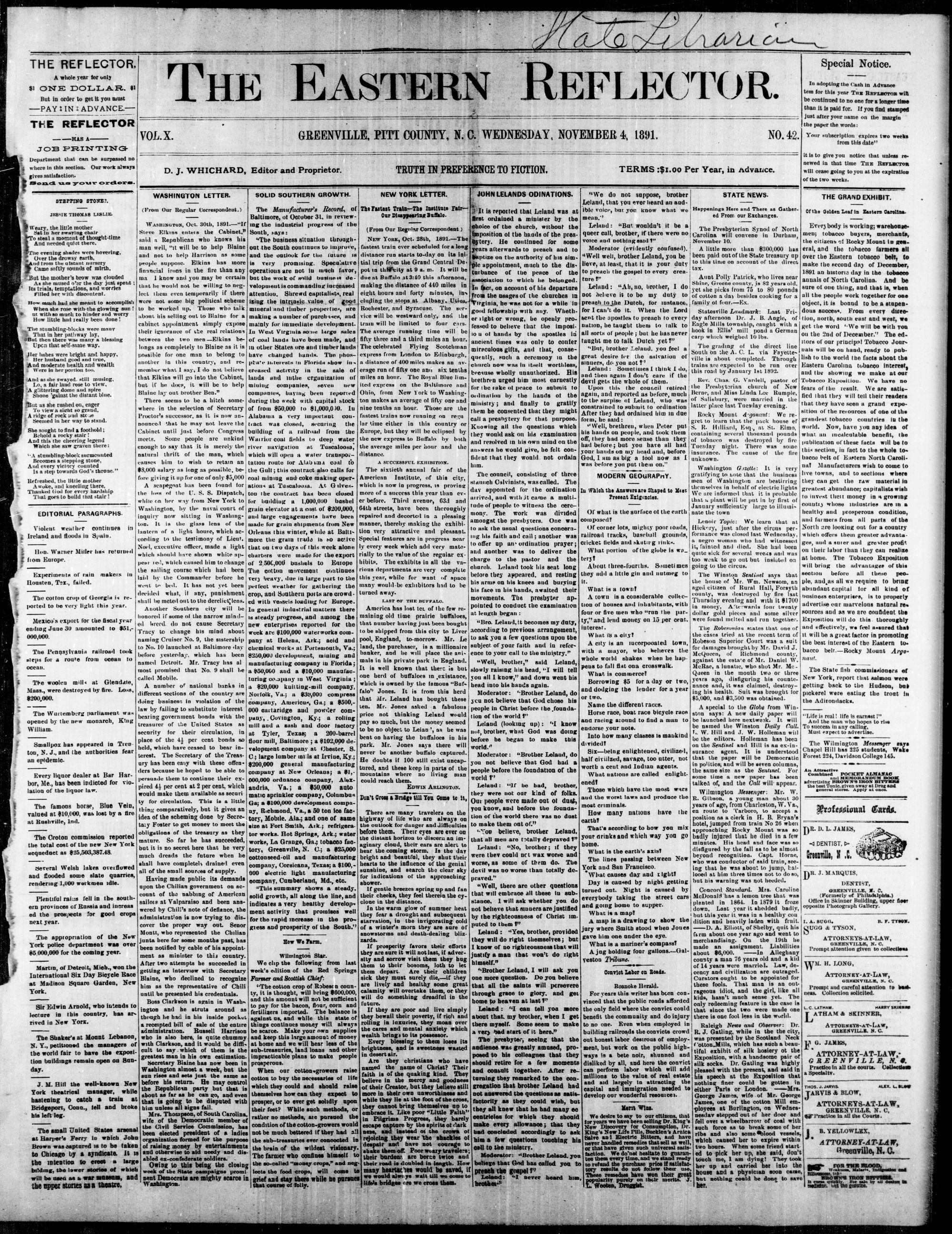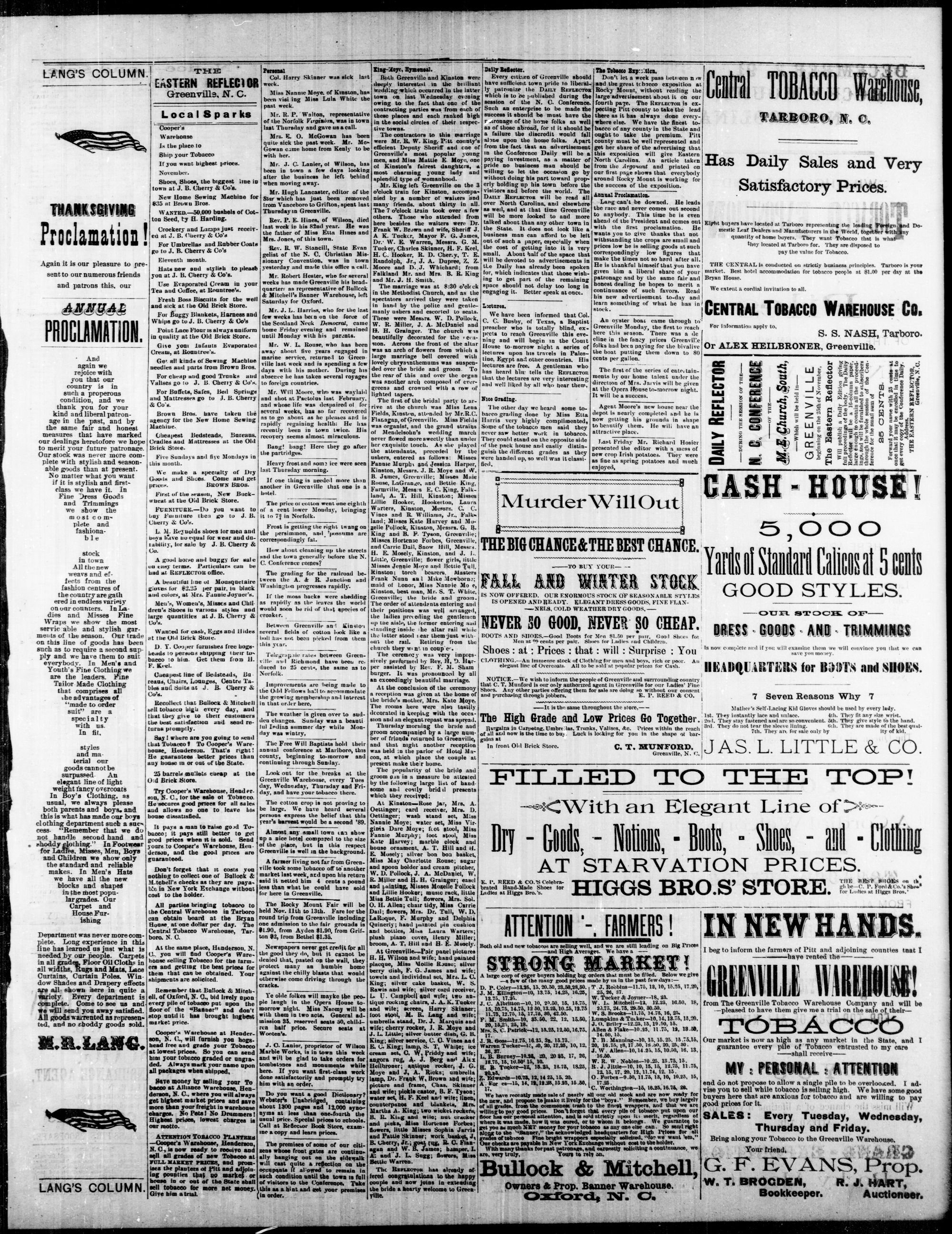 GREENVILLE, PITT COUNTY, N. C. WEDNESDAY, NOVEMBER 1891.
