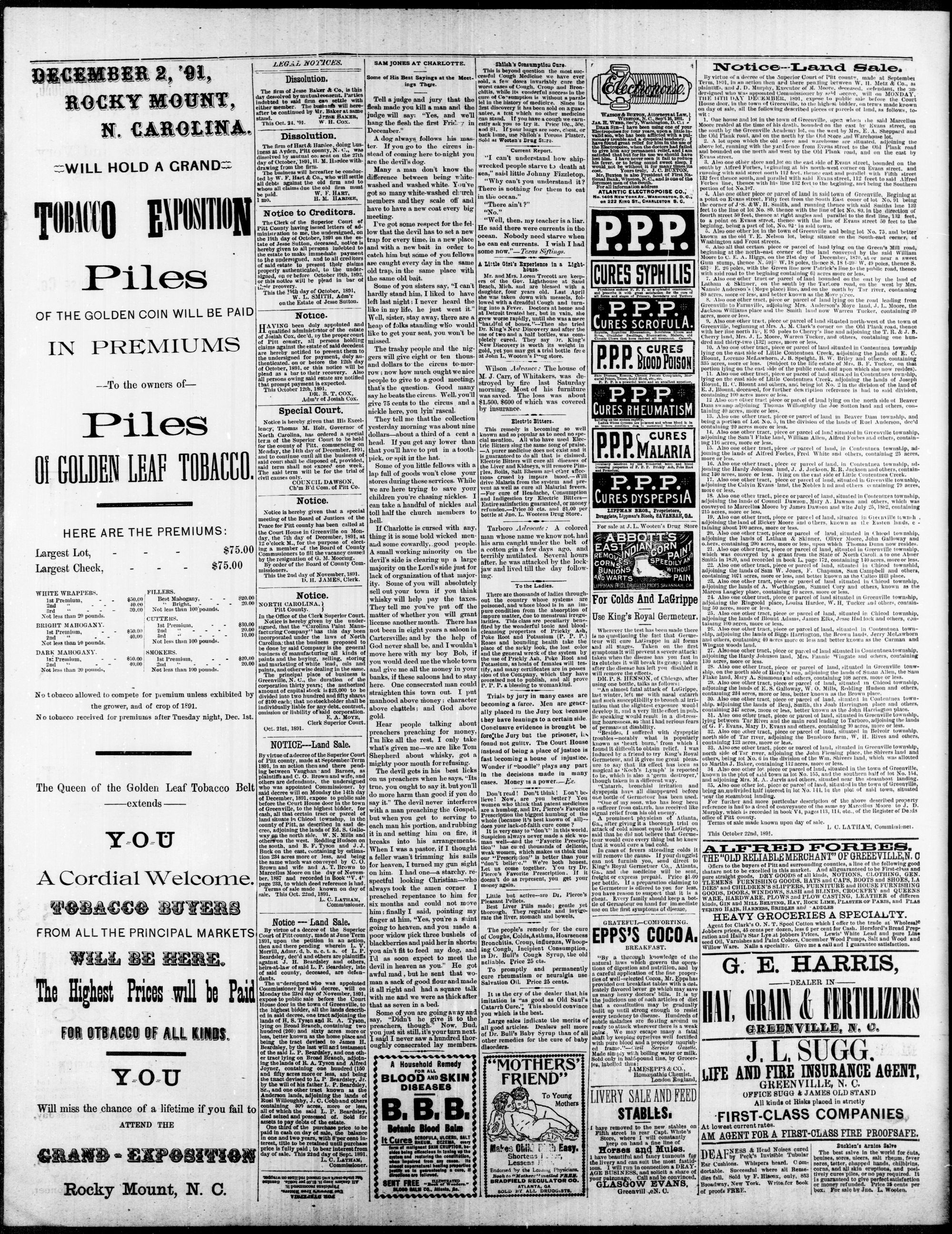 to the buyers of Pitt and surrounding counties, a line of the following good