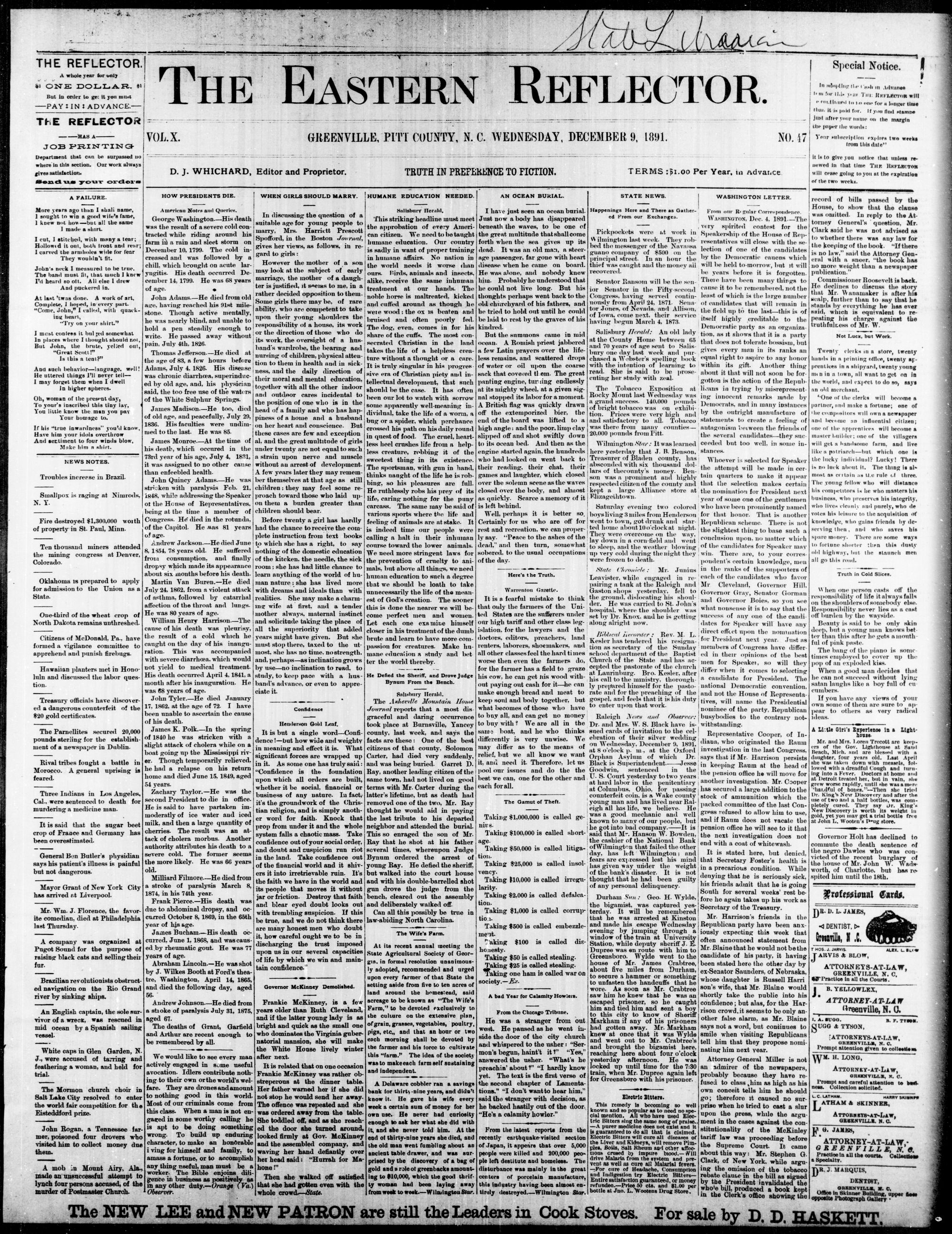 PITT COUNTY, N. C. WEDNESDAY, DECEMBER 1891.
