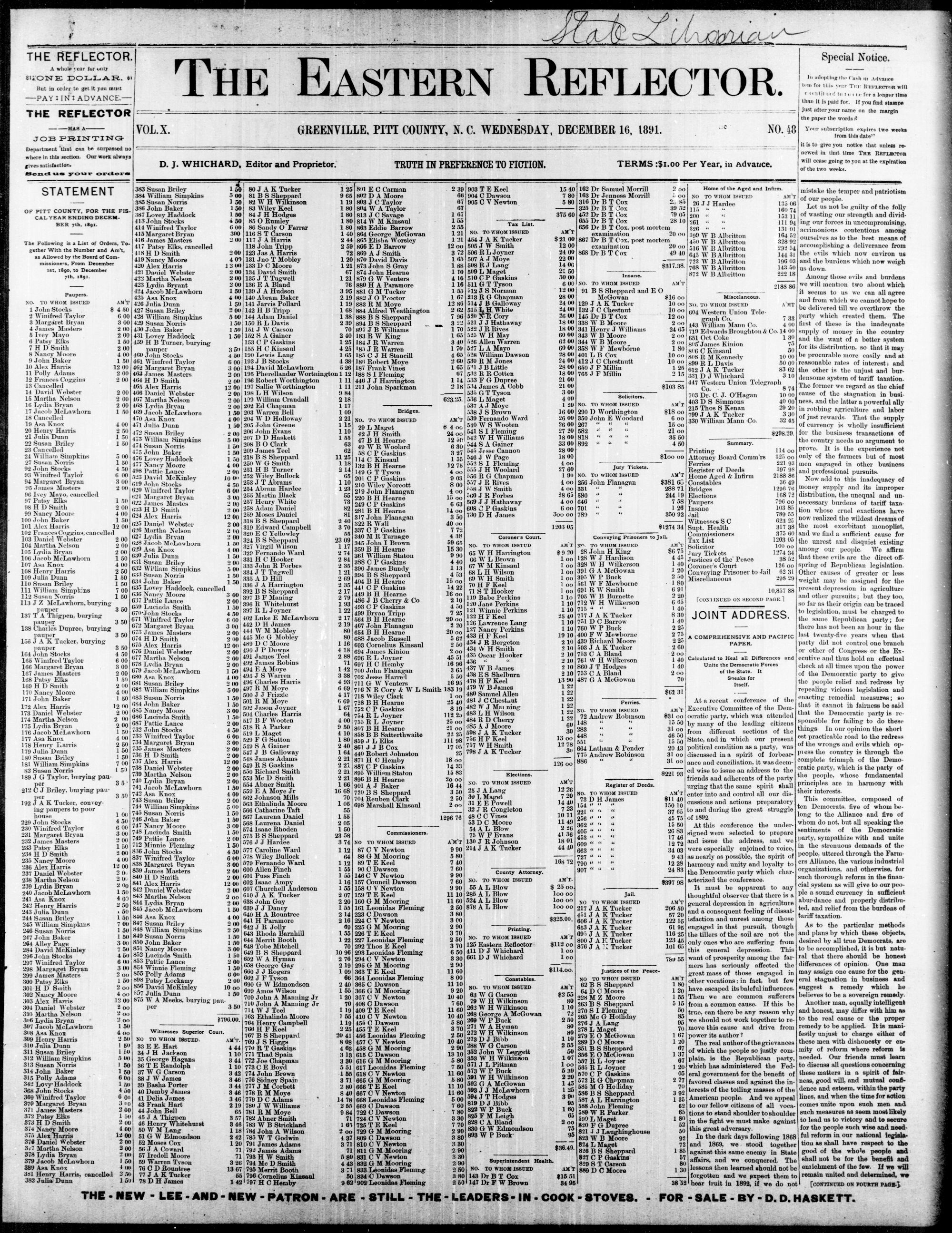 GREENVILLE, PITT COUNTY, N. C. WEDNESDAY, 1891.
