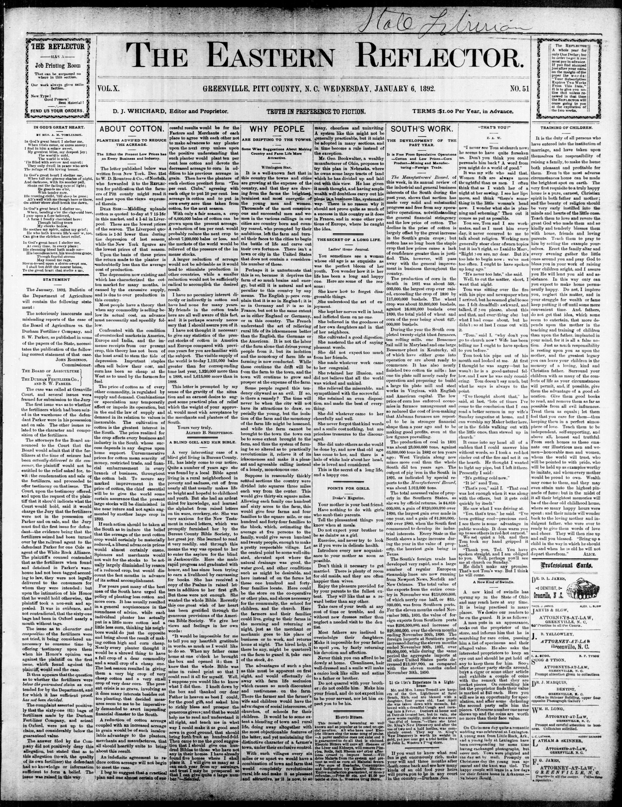 GREENVILLE, PITT COUNTY, N. C. WEDNESDAY, JANUARY 1892.