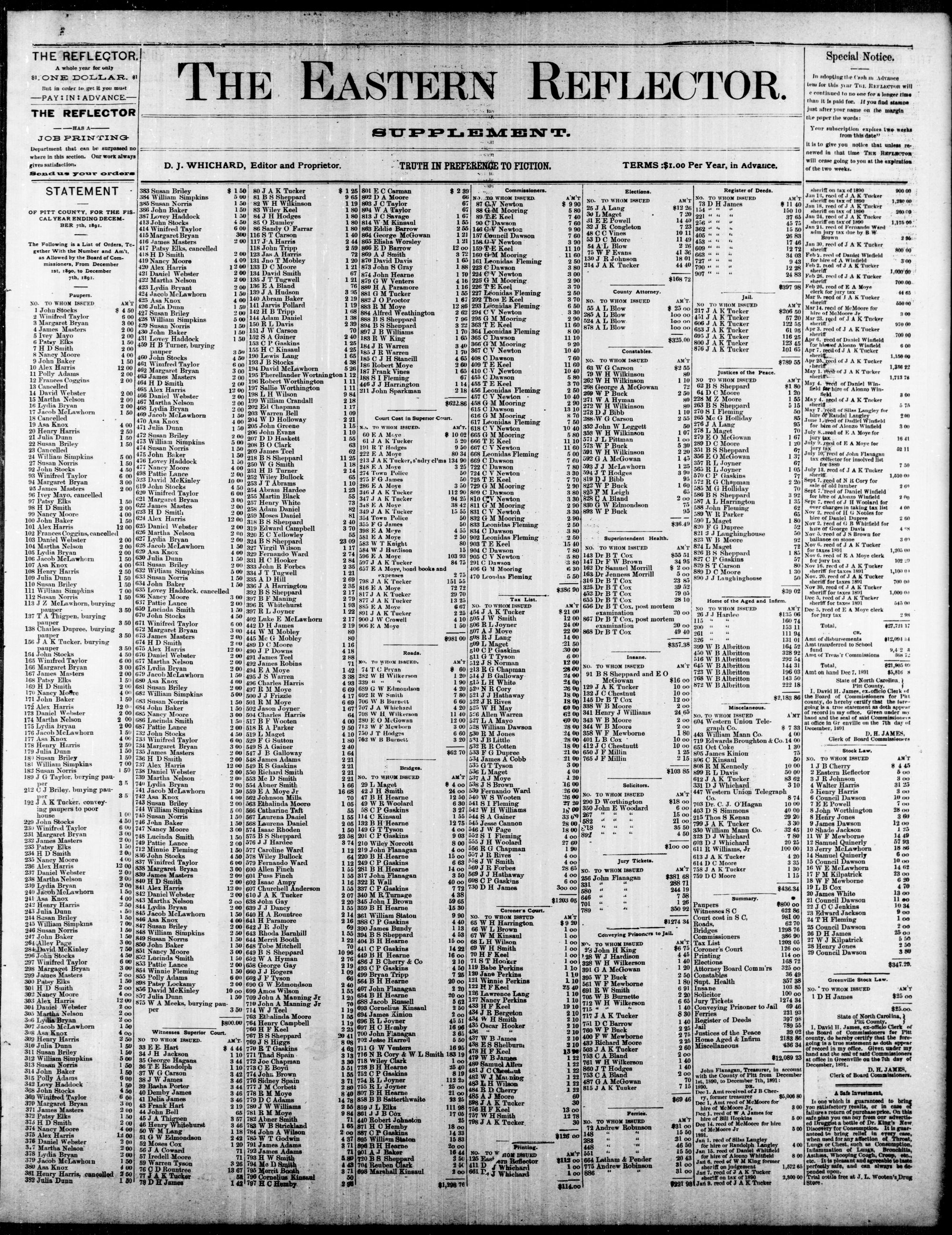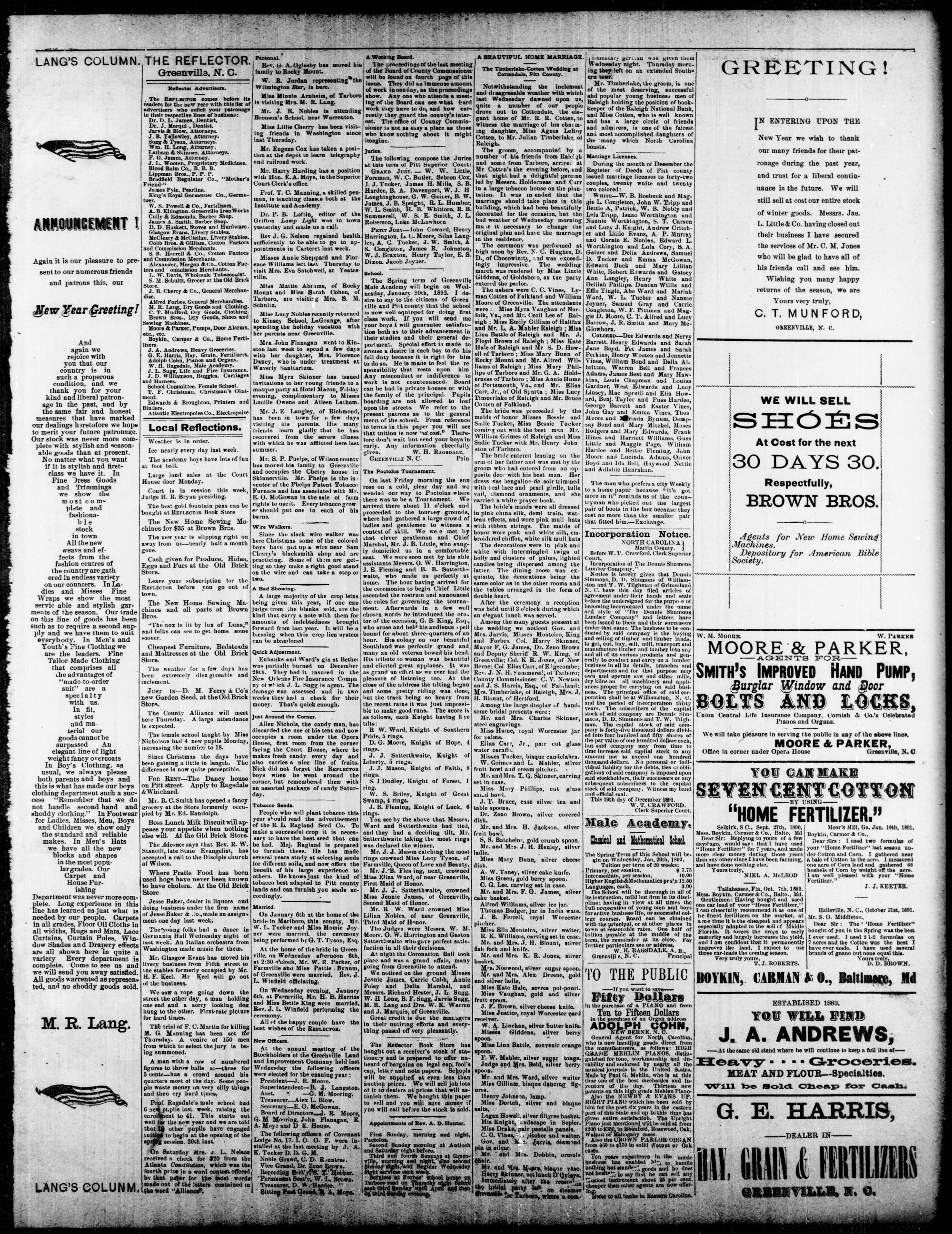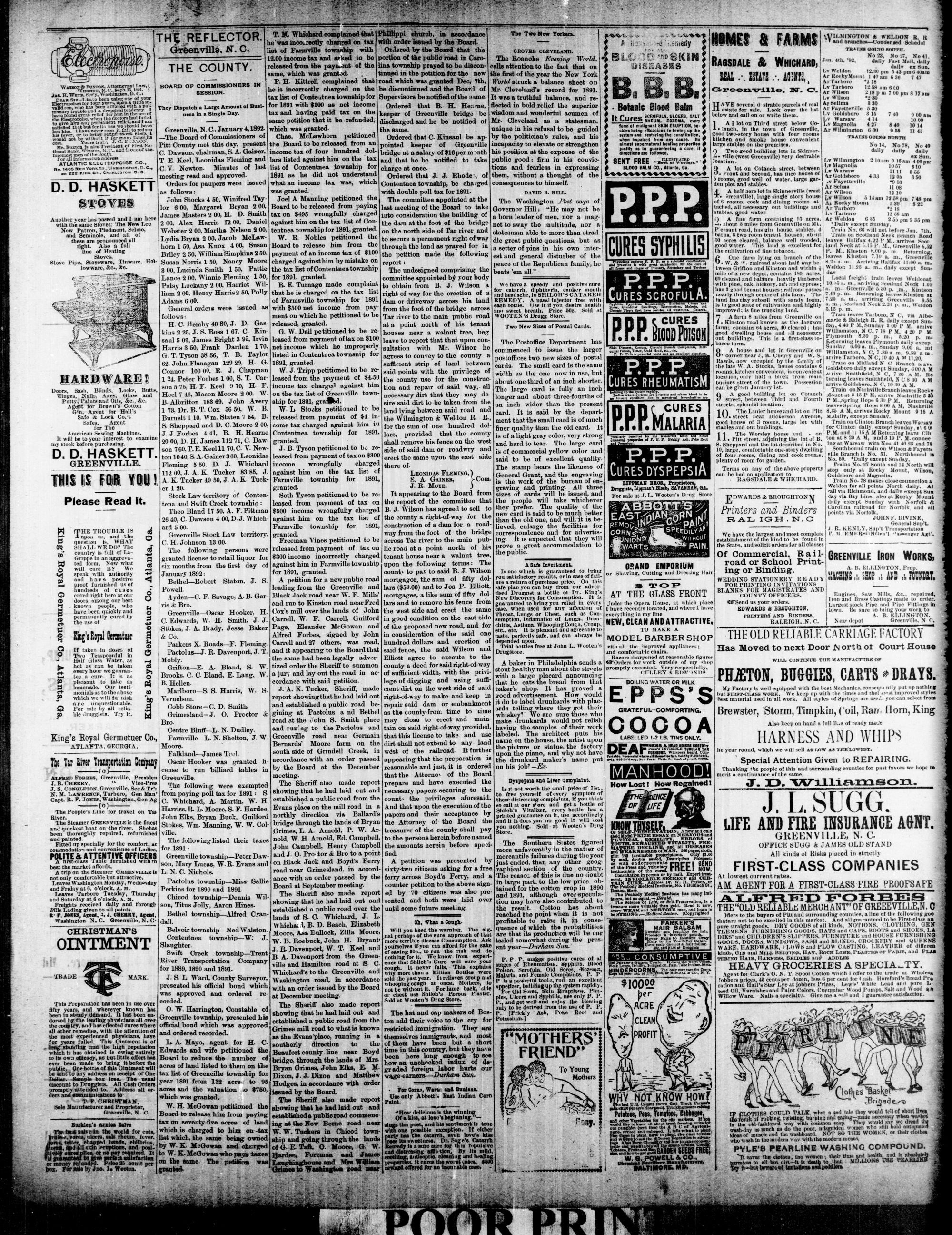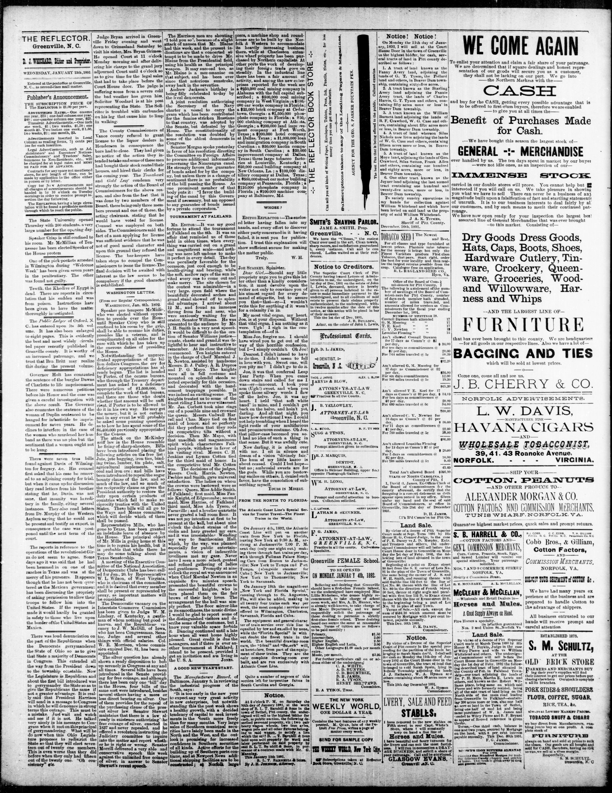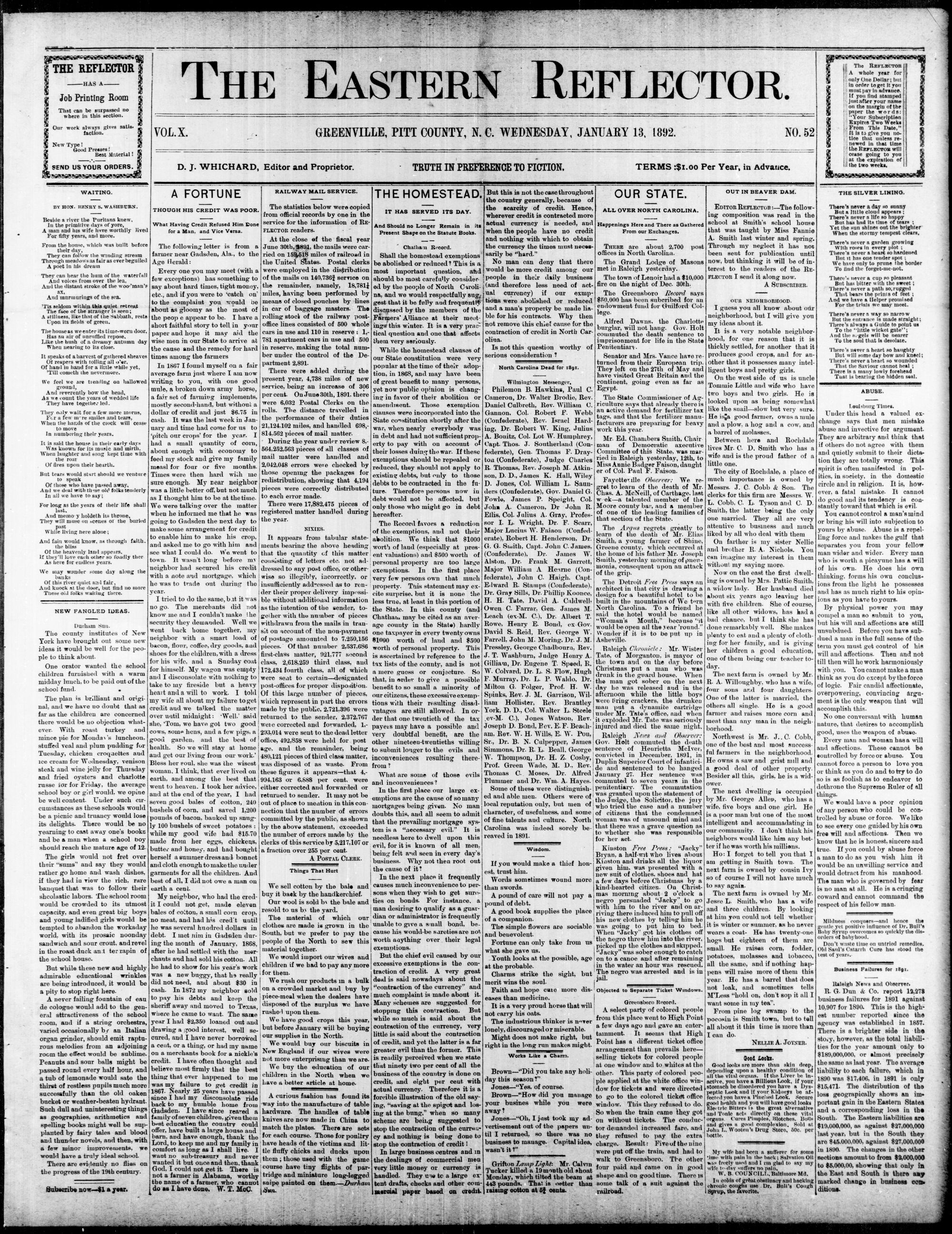 GREENVILLE, PITT COUNTY, N. C. WEDNESDAY, JANUARY 1892.