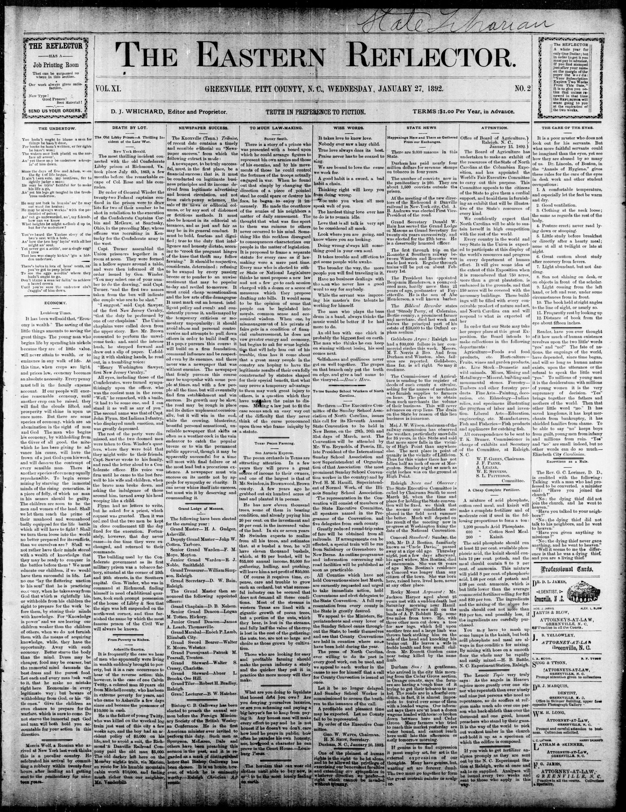 GREENVILLE, PITT COUNTY, WEDNESDAY, JANUARY 1892.