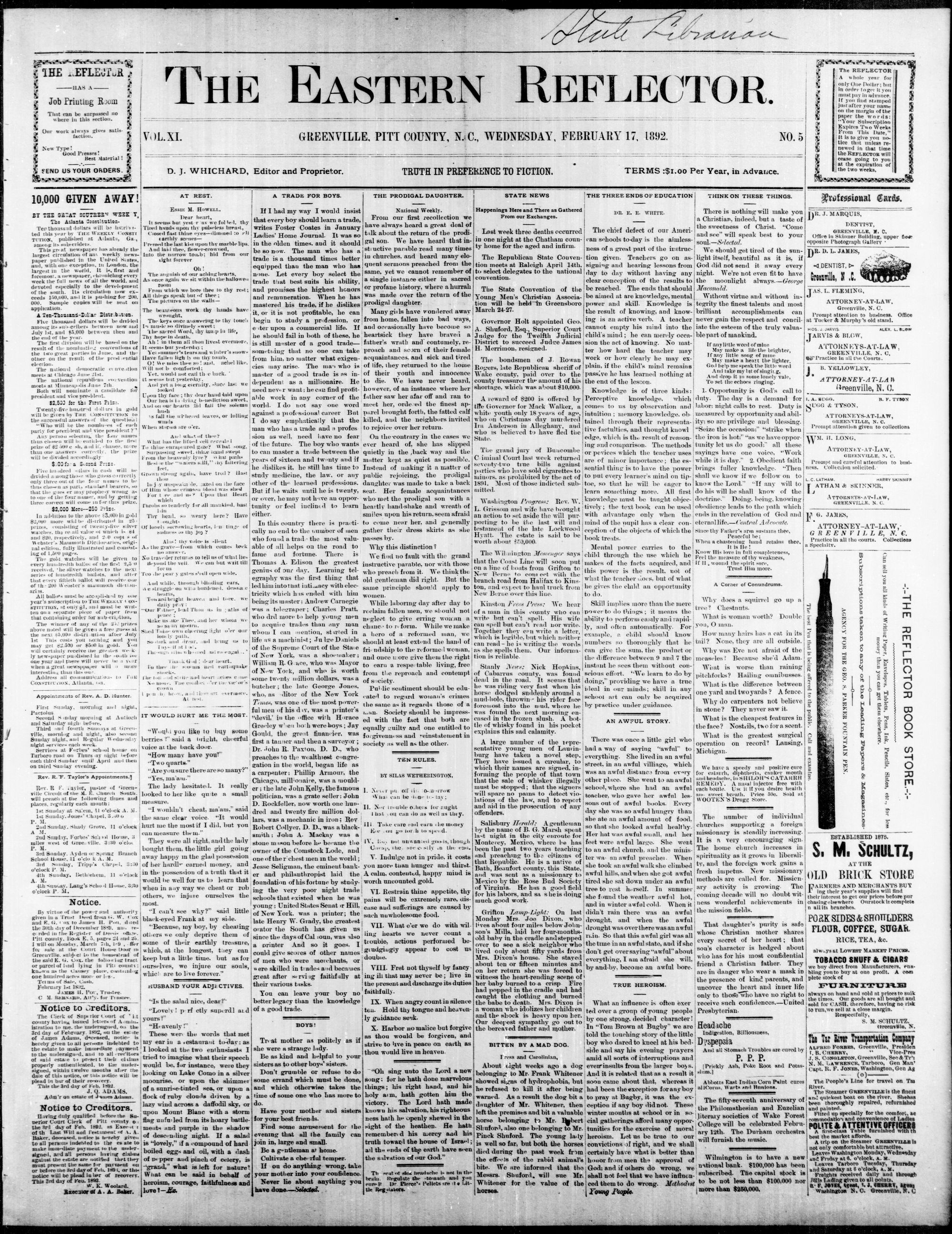 GREENVILLE, PITT COUNTY, WEDNESDAY, FEBRUARY 1892.