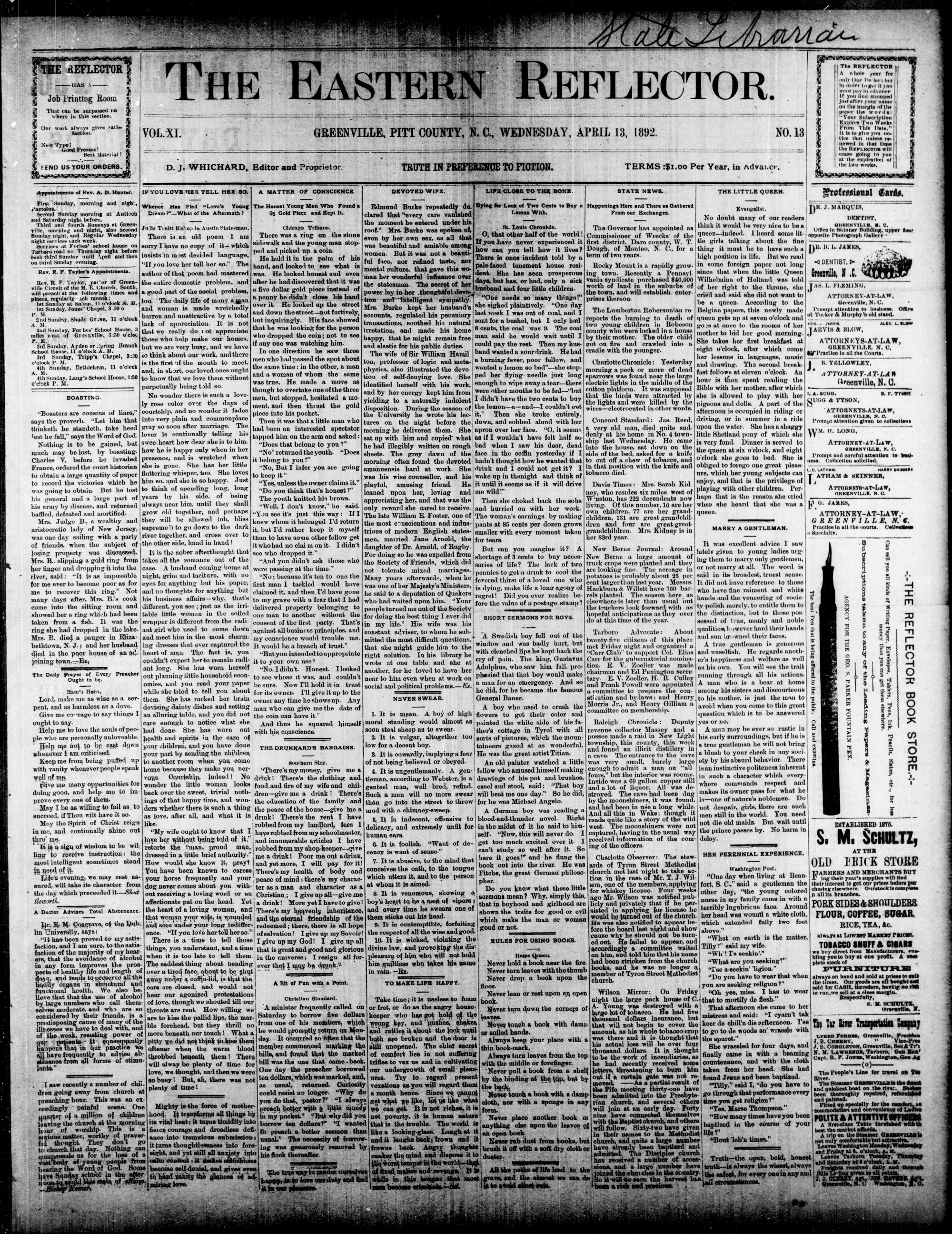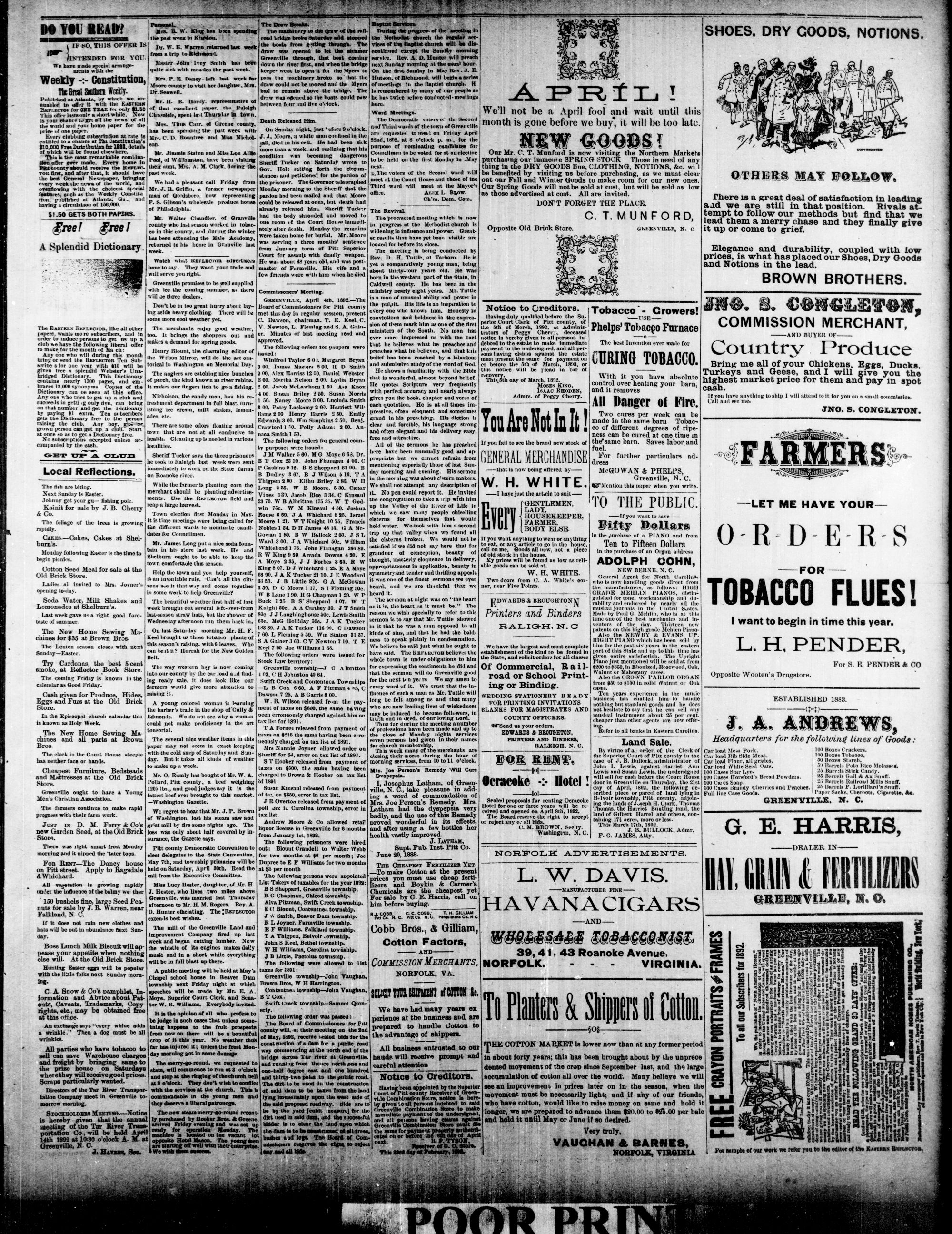 GREENVILLE, PITT COUNTY, I. WEDNESDAY. APRIL 1892.