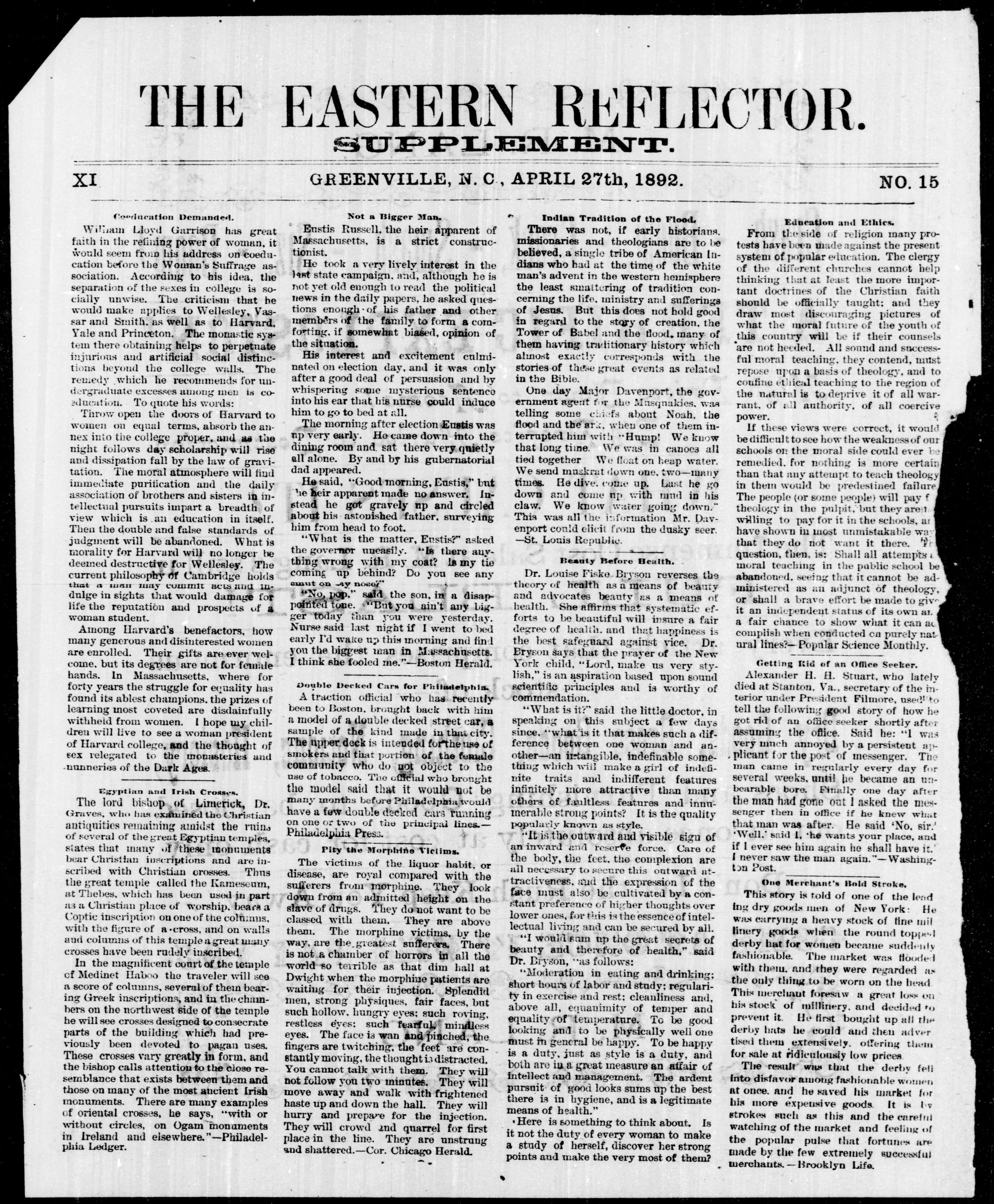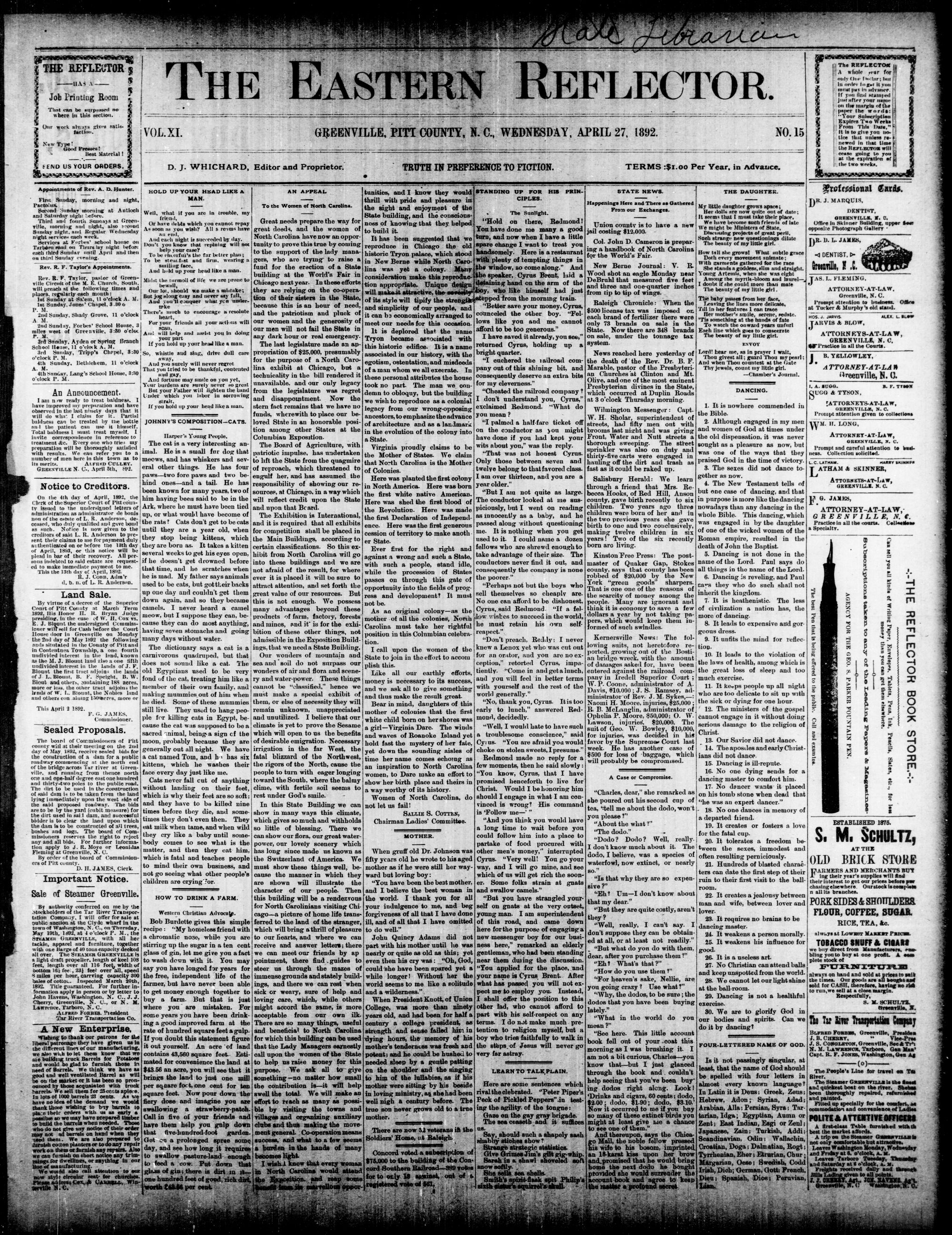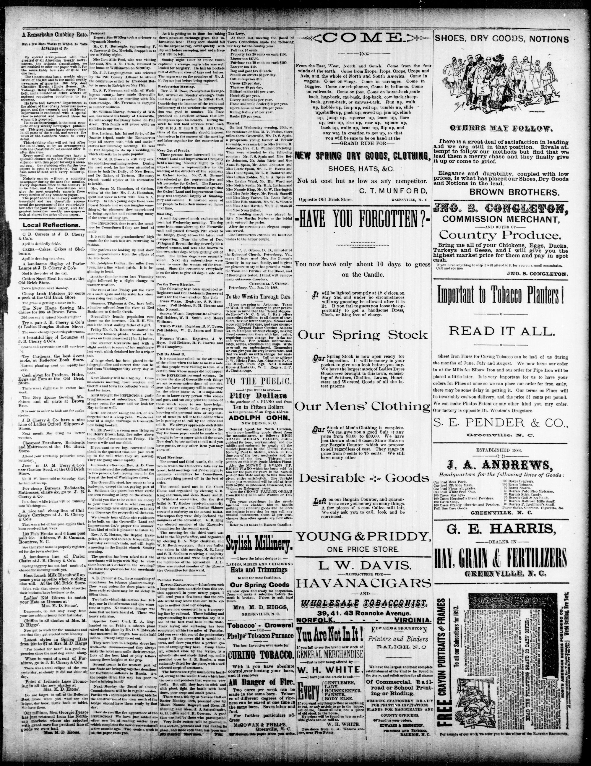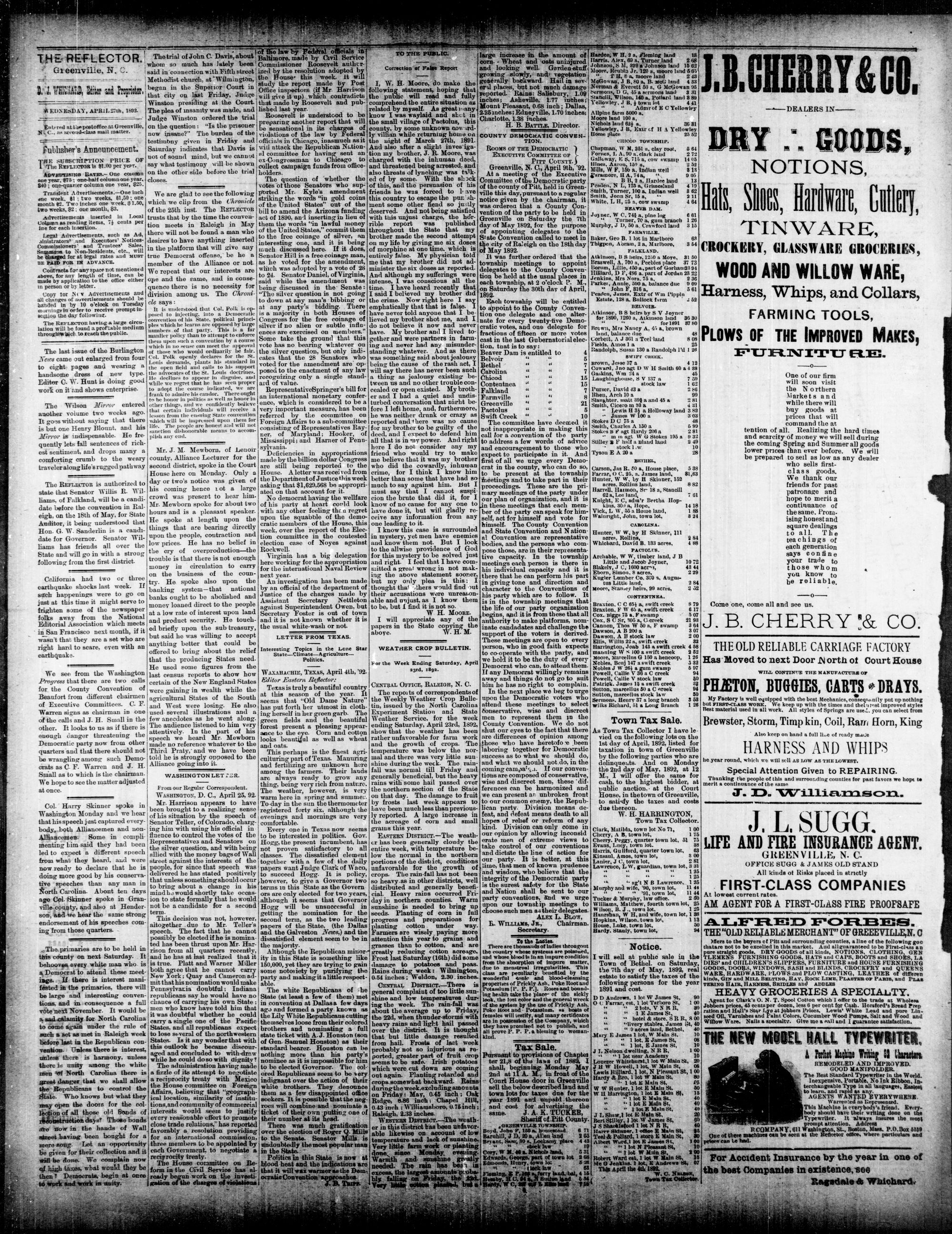 GREENVILLE, PITT COUNTY, WEDNESDAY. APRIL 1892.