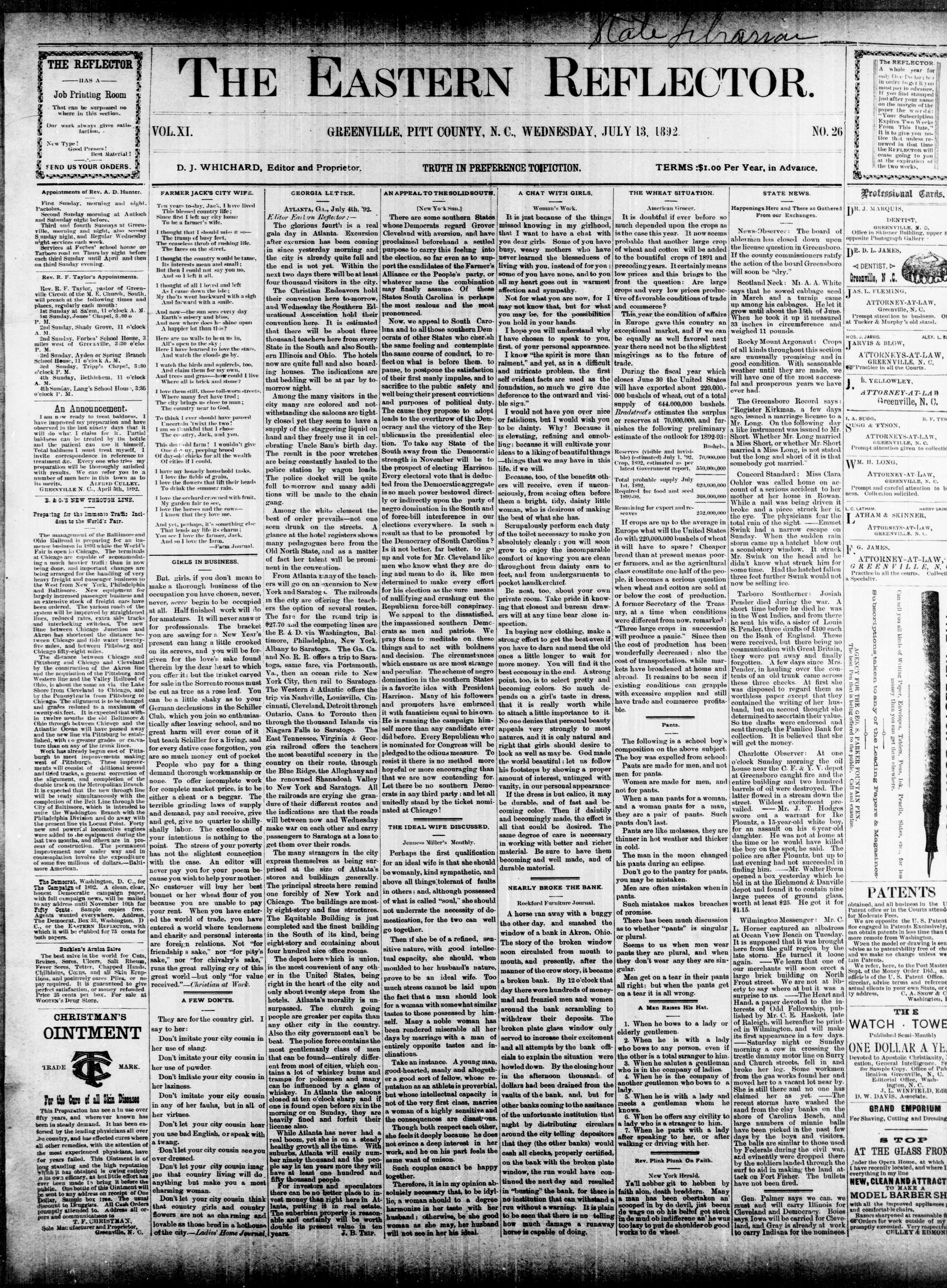 GREENVILLE, PITT COUNTY, WEDNESDAY, JULY 1892.