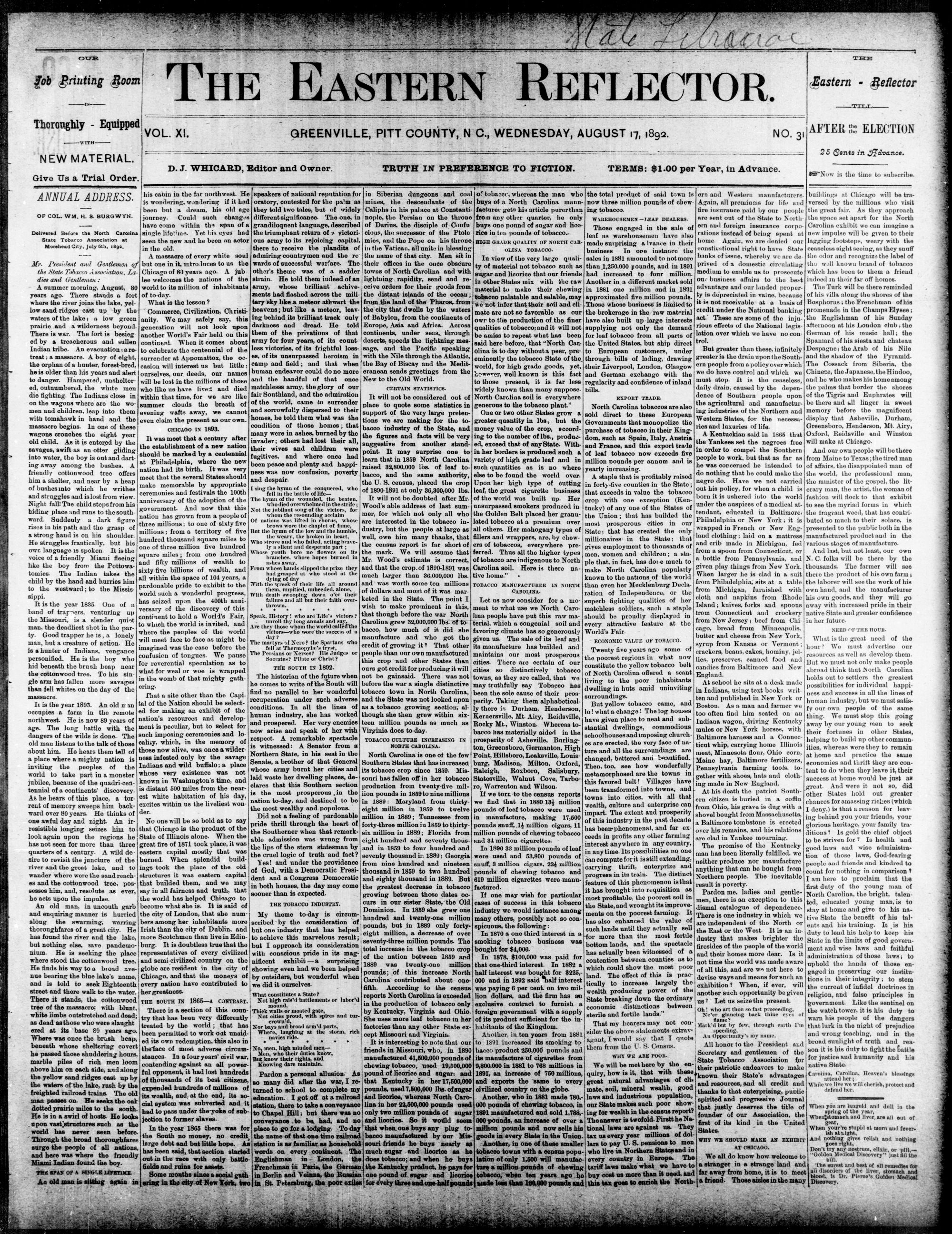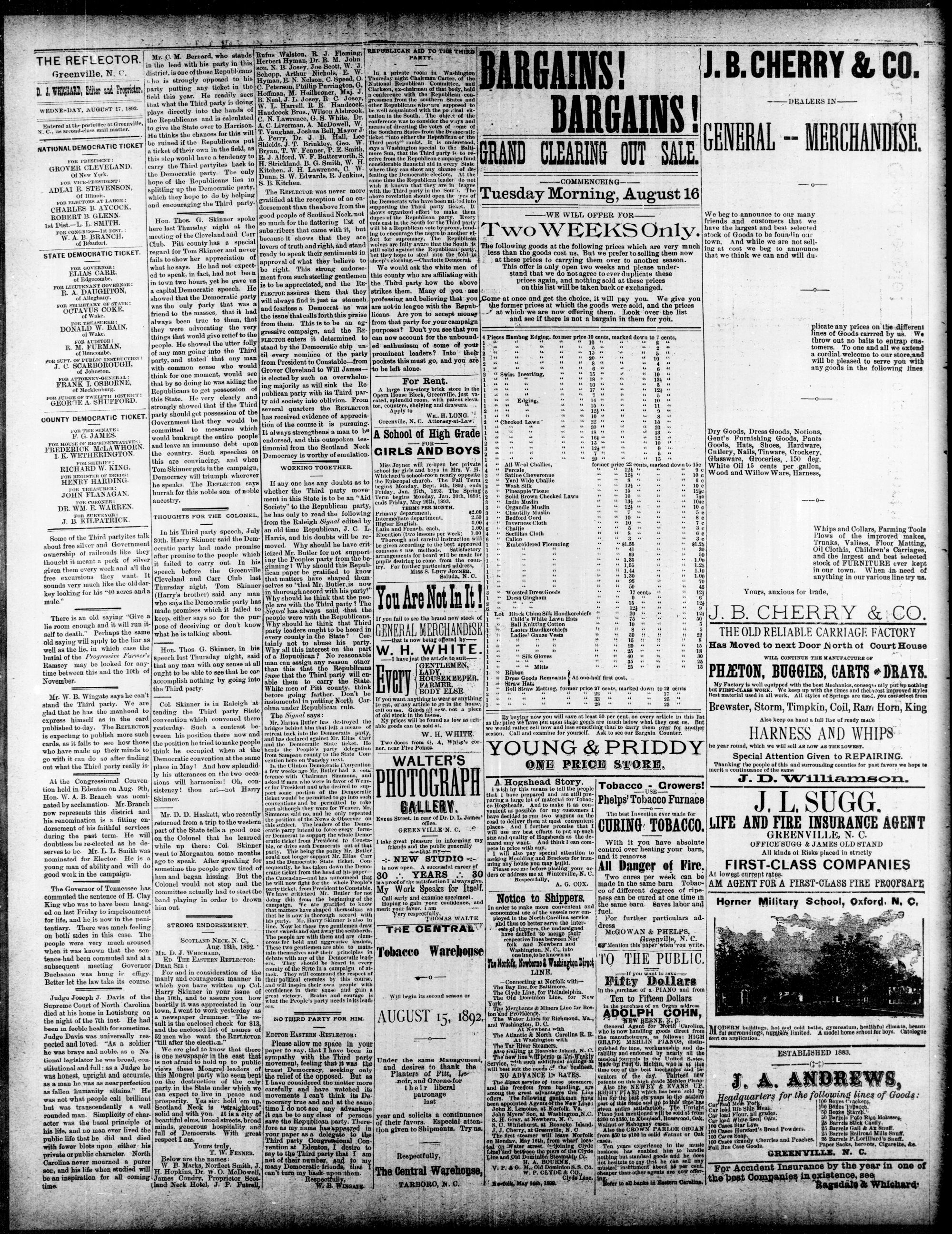 GREENVILLE, PITT COUNTY, WEDNESDAY, AUGUST 1892.