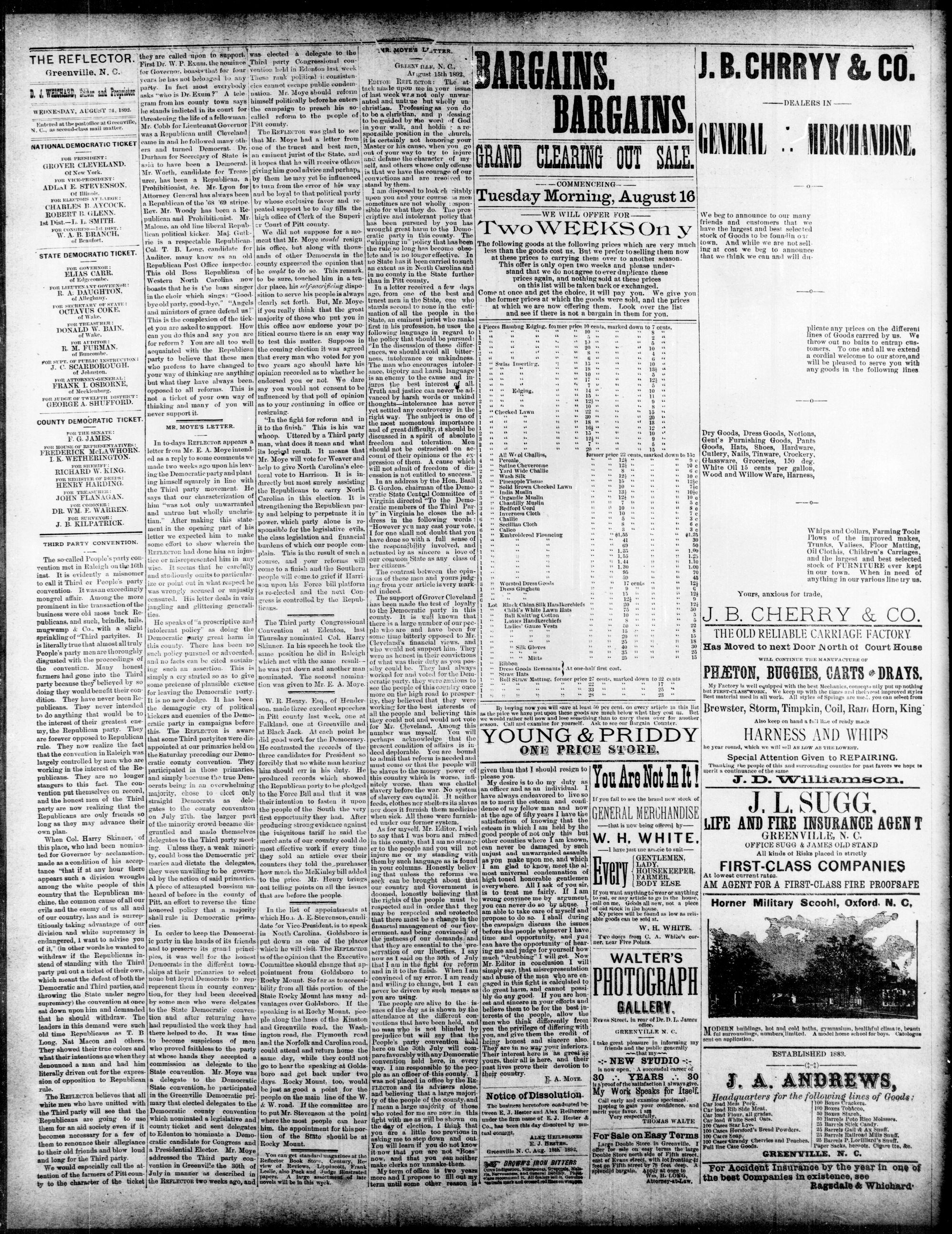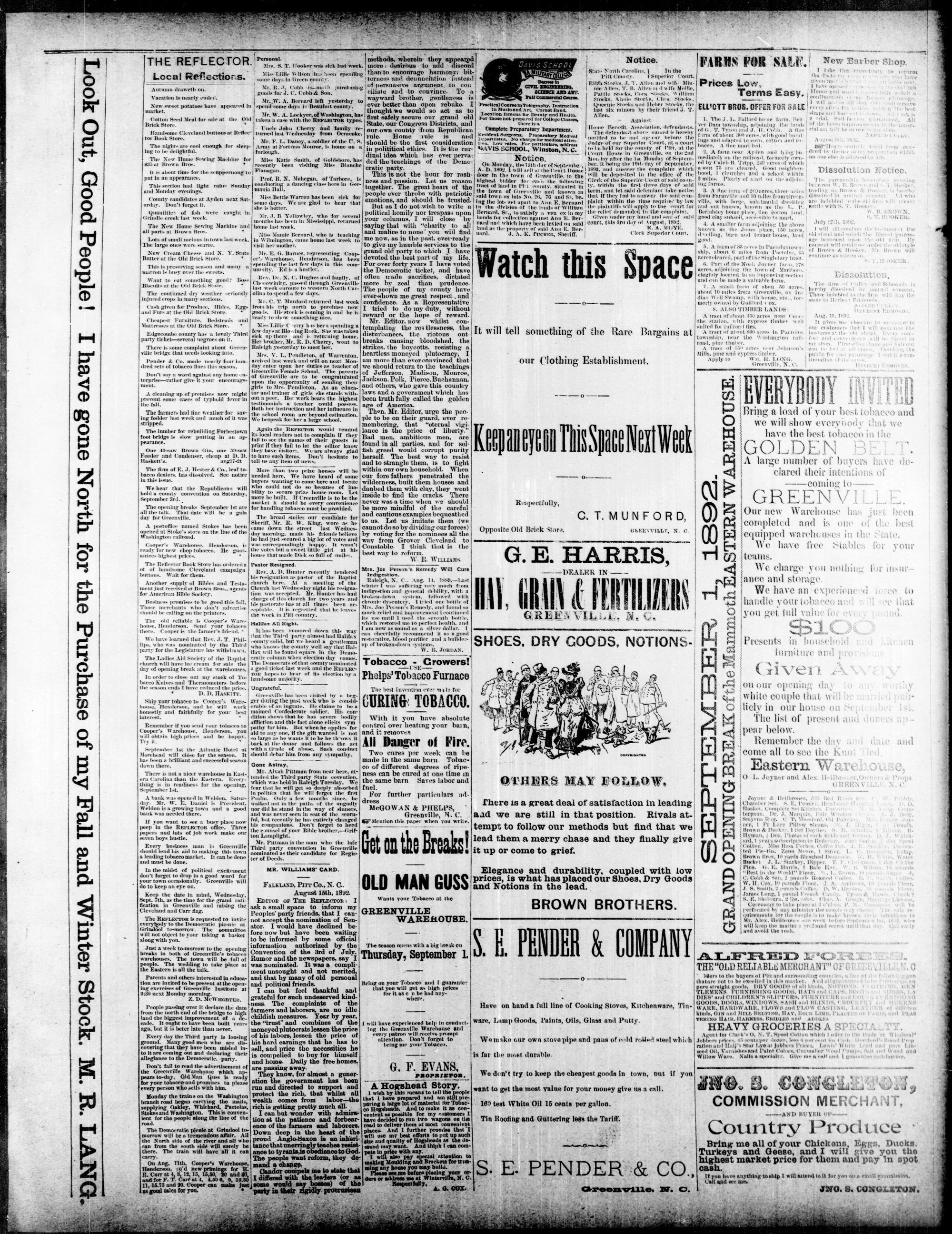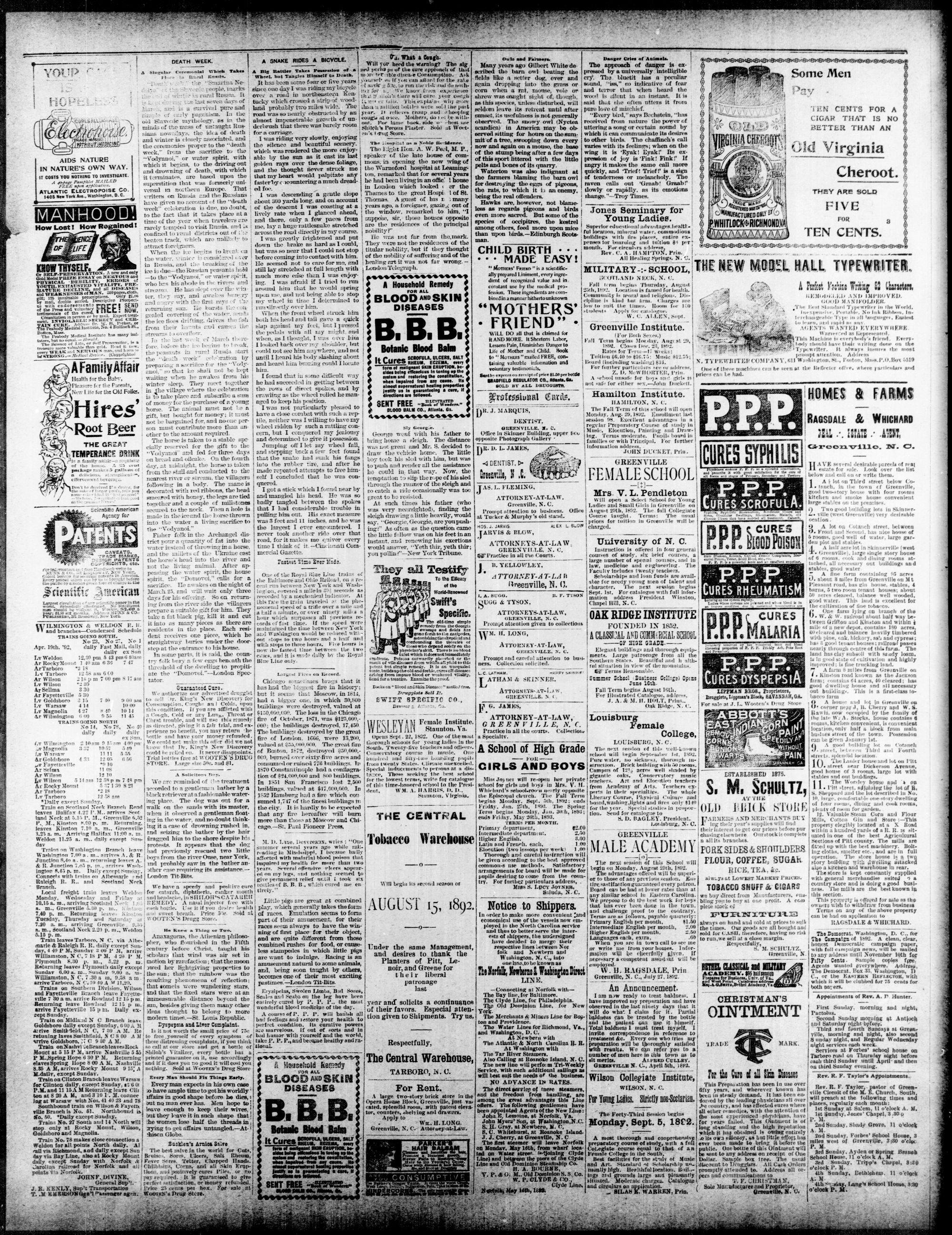 GREENVILLE, PITT COUNTY, WEDNESDAY, AUGUST 1892