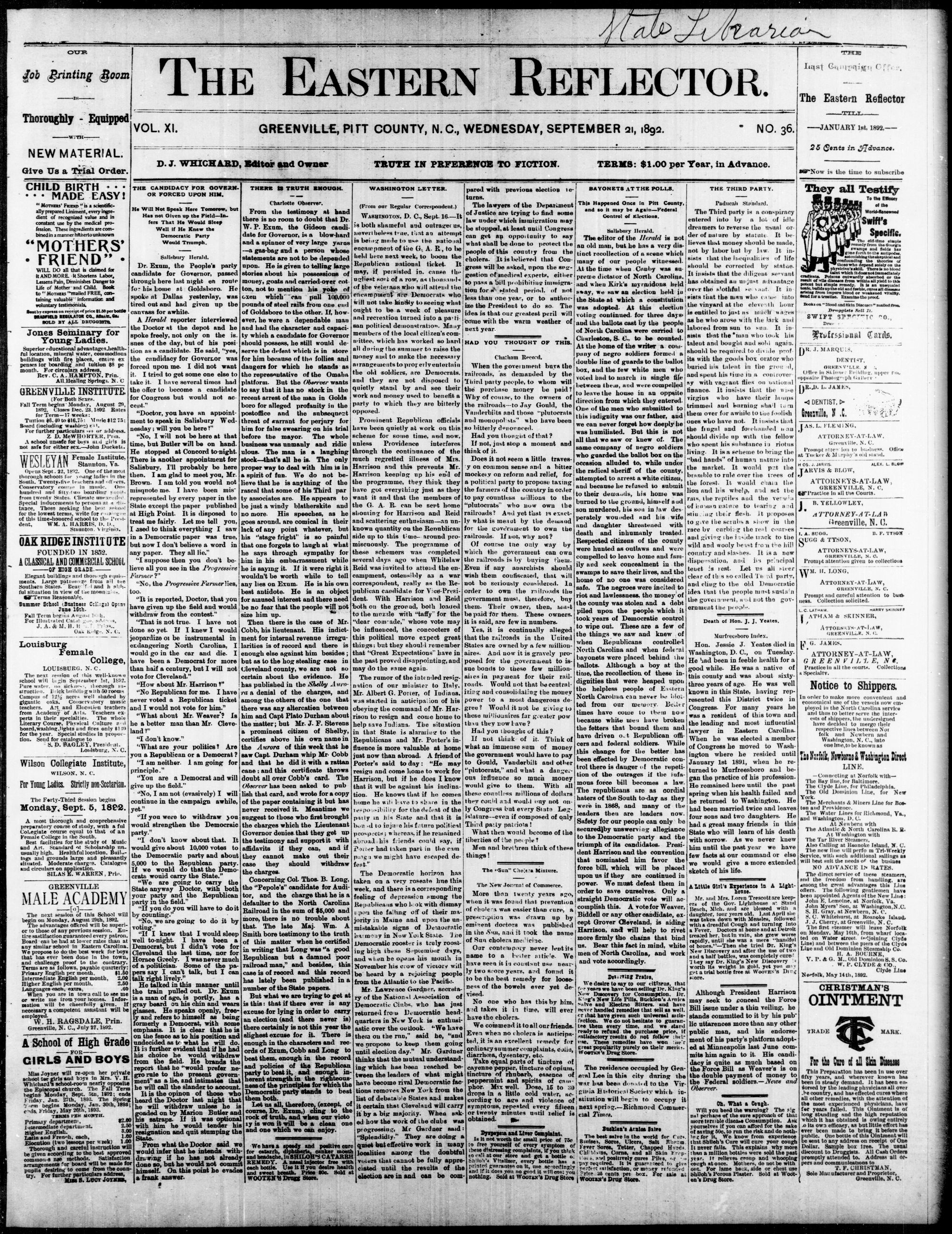 PITT COUNTY, WEDNESDAY, SEPTEMBER at, 1892.