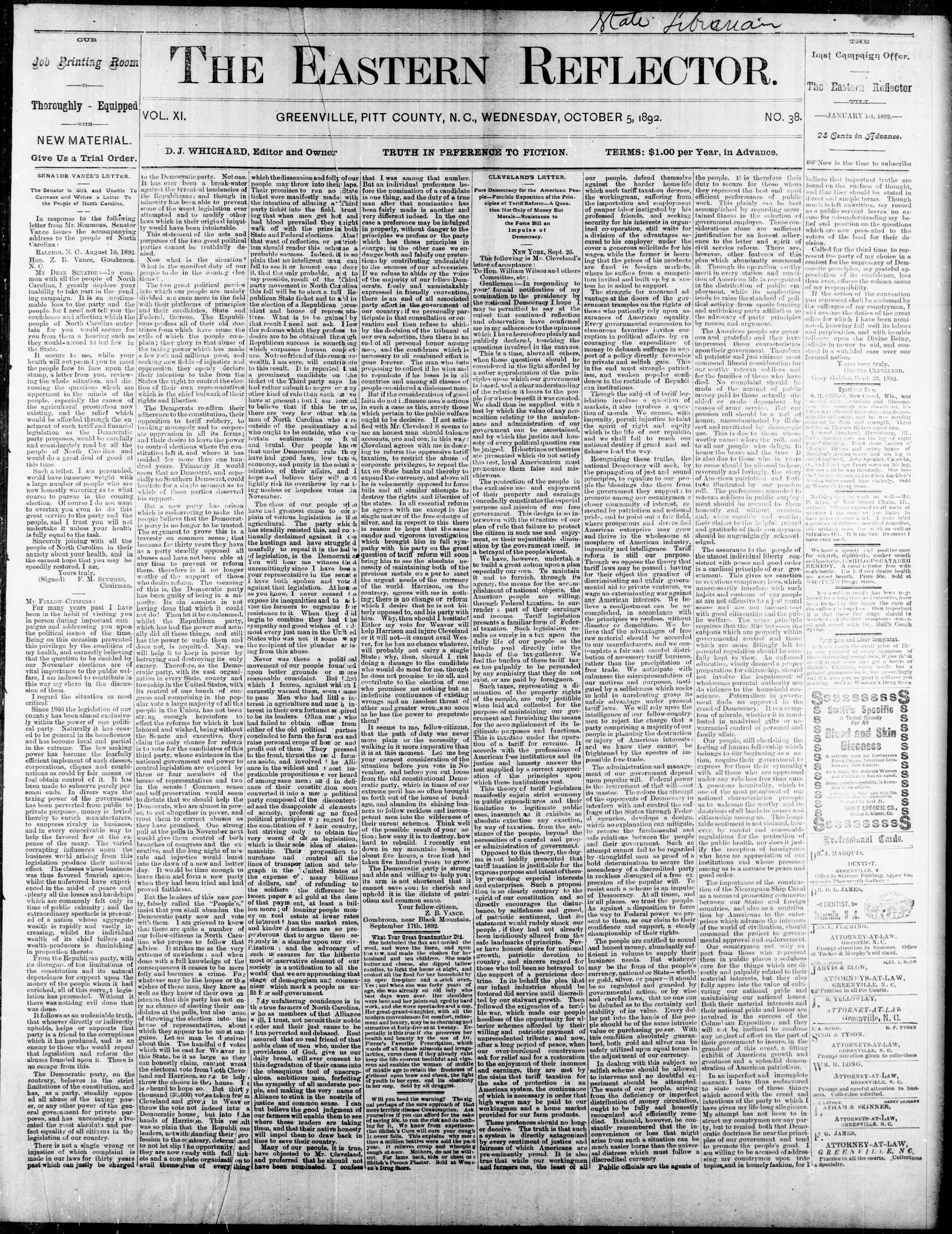 GREENVILLE, PITT COUNTY, WEDNESDAY, OCTOBER 1892.