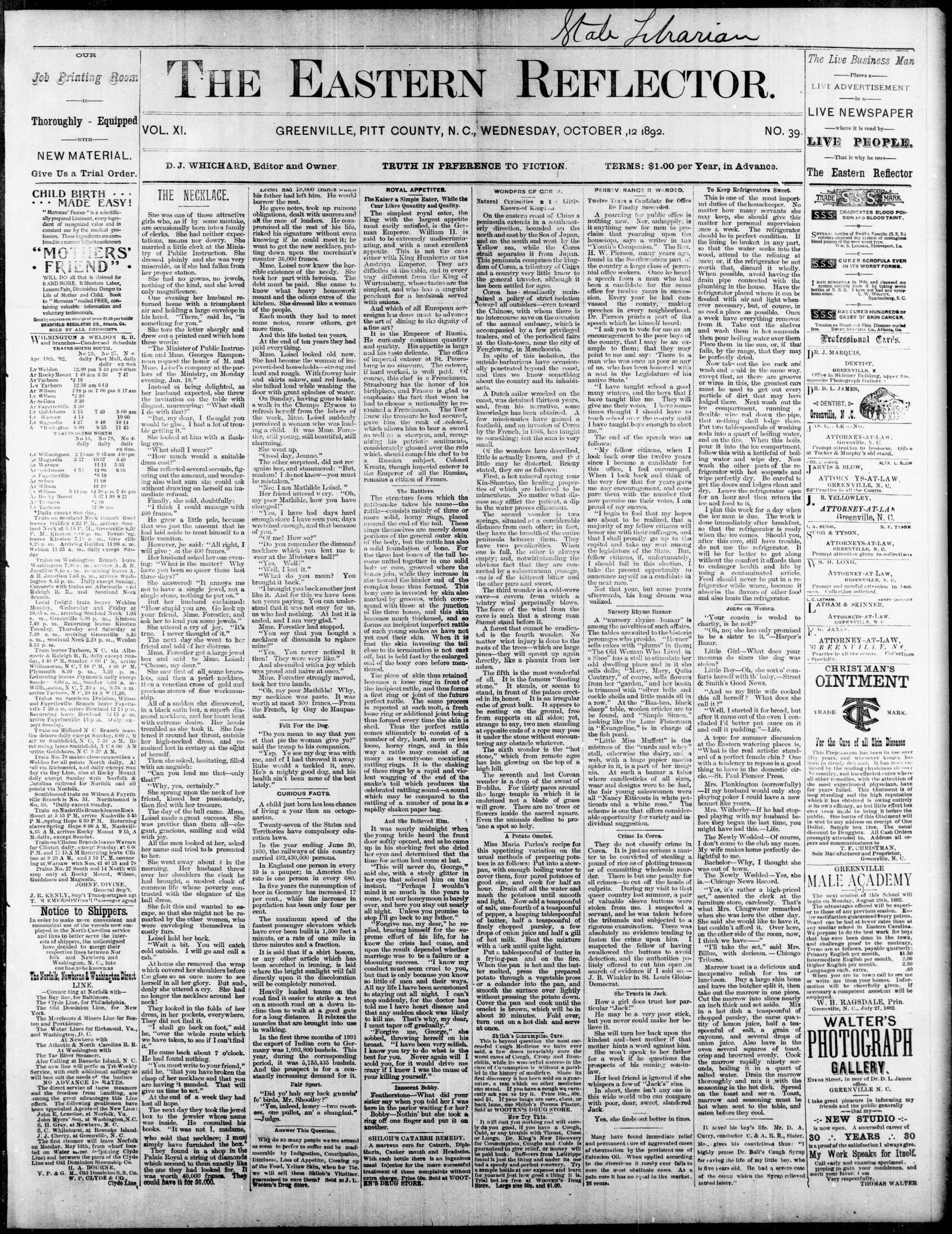 GREENVILLE, PITT COUNTY, N. C, WEDNESDAY, OCTOBER 1892.