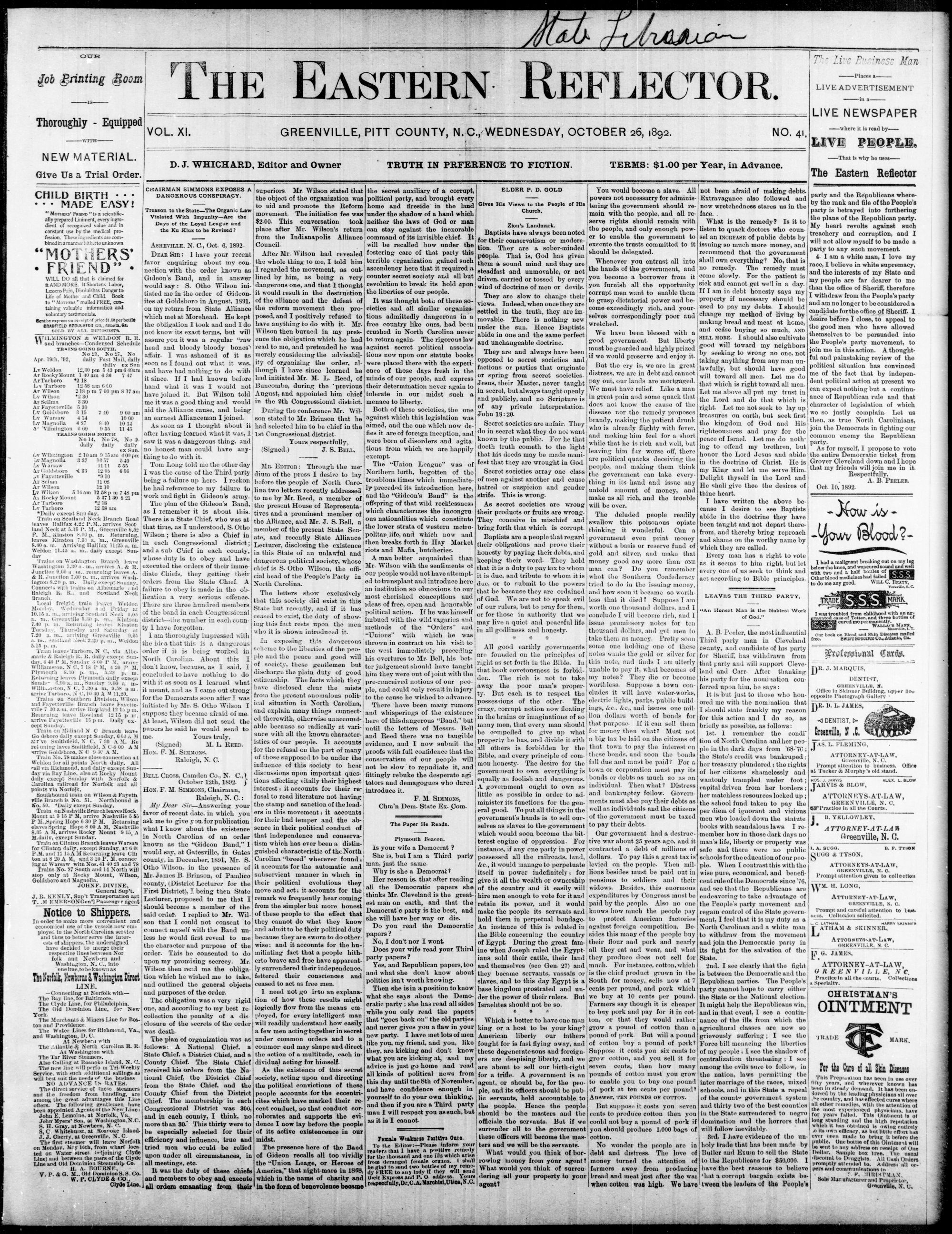 GREENVILLE, PITT COUNTY, N. C, WEDNESDAY, OCTOBER 1892.