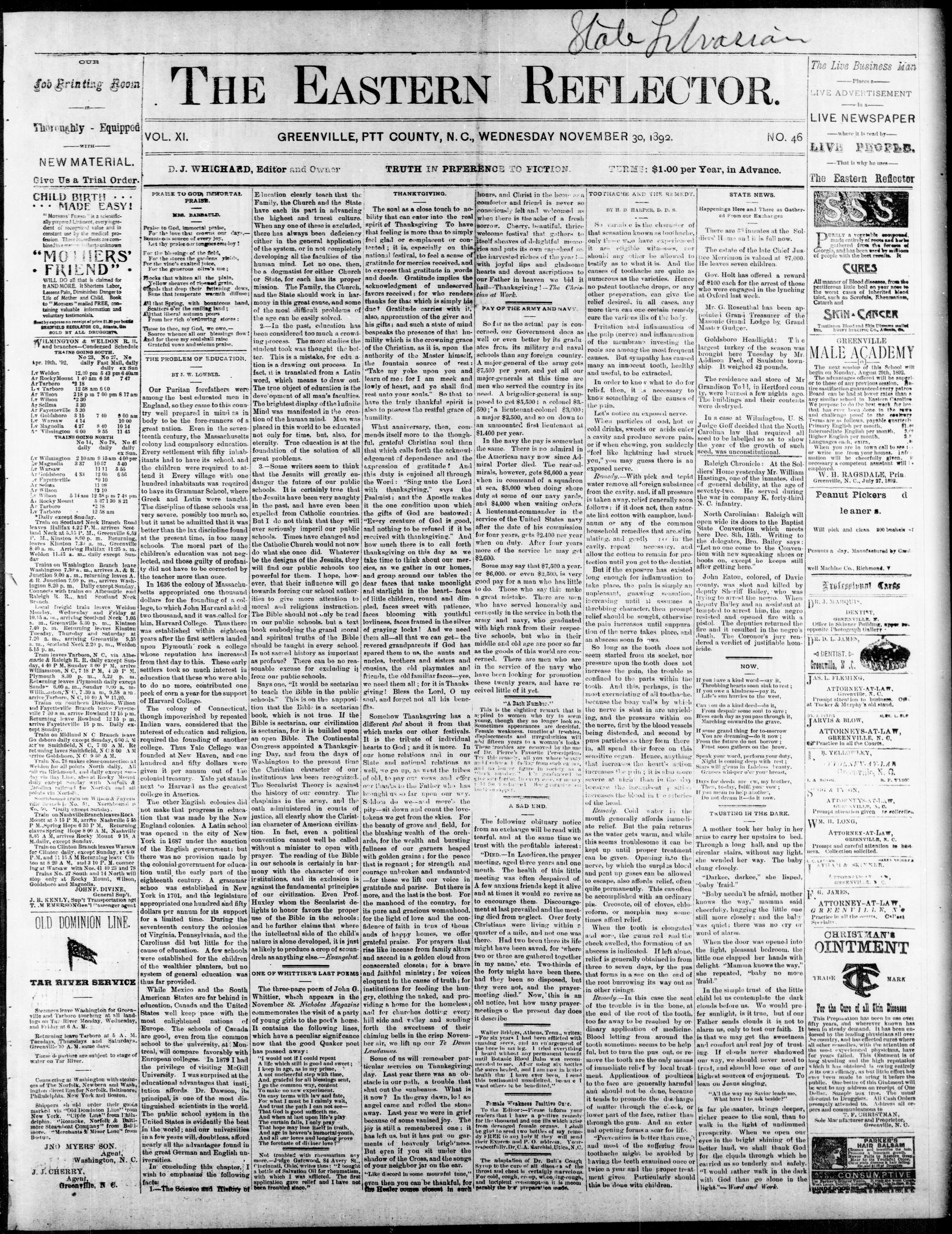 GREENVILLE, COUNTY, WEDNESDAY NOVEMBER 1892.