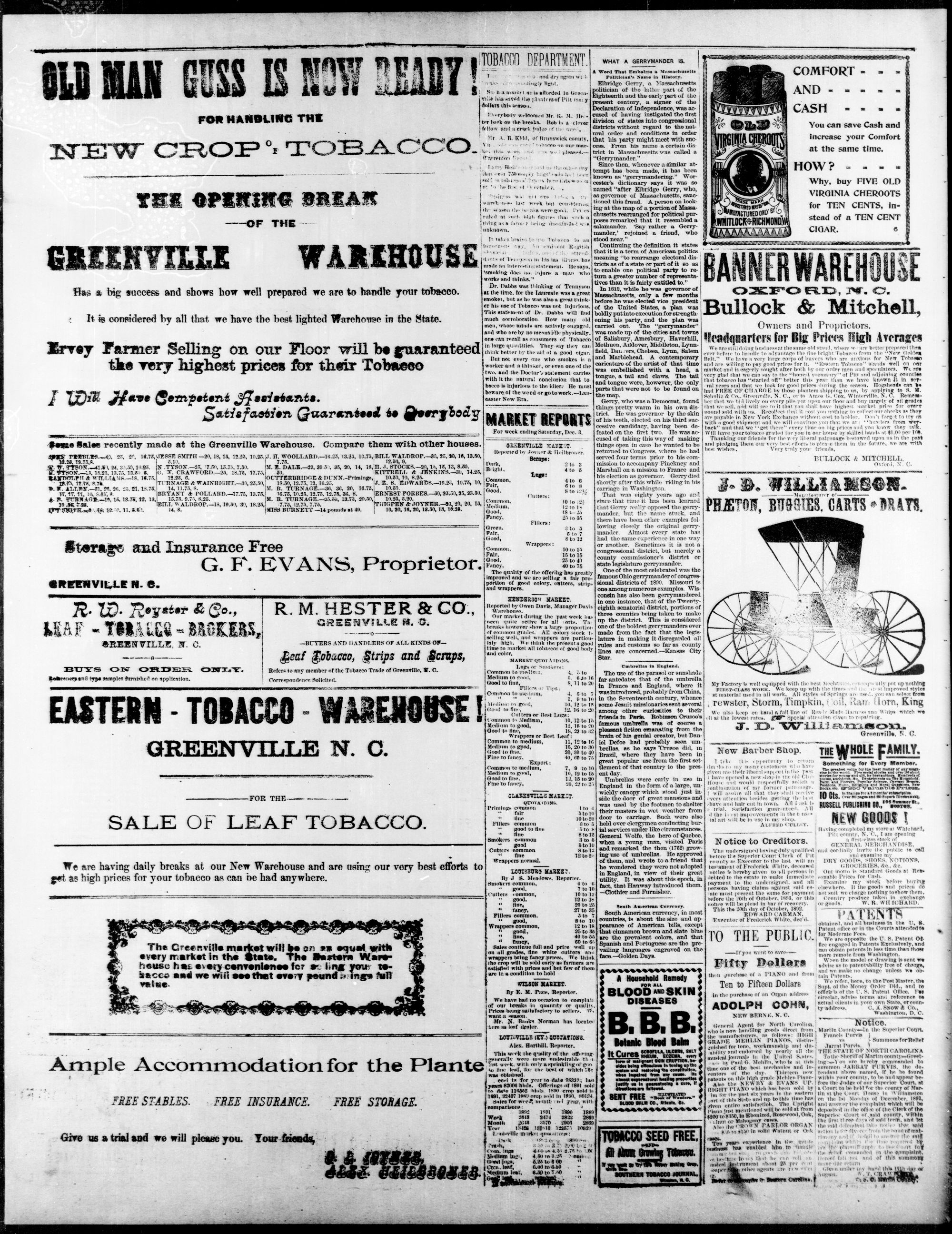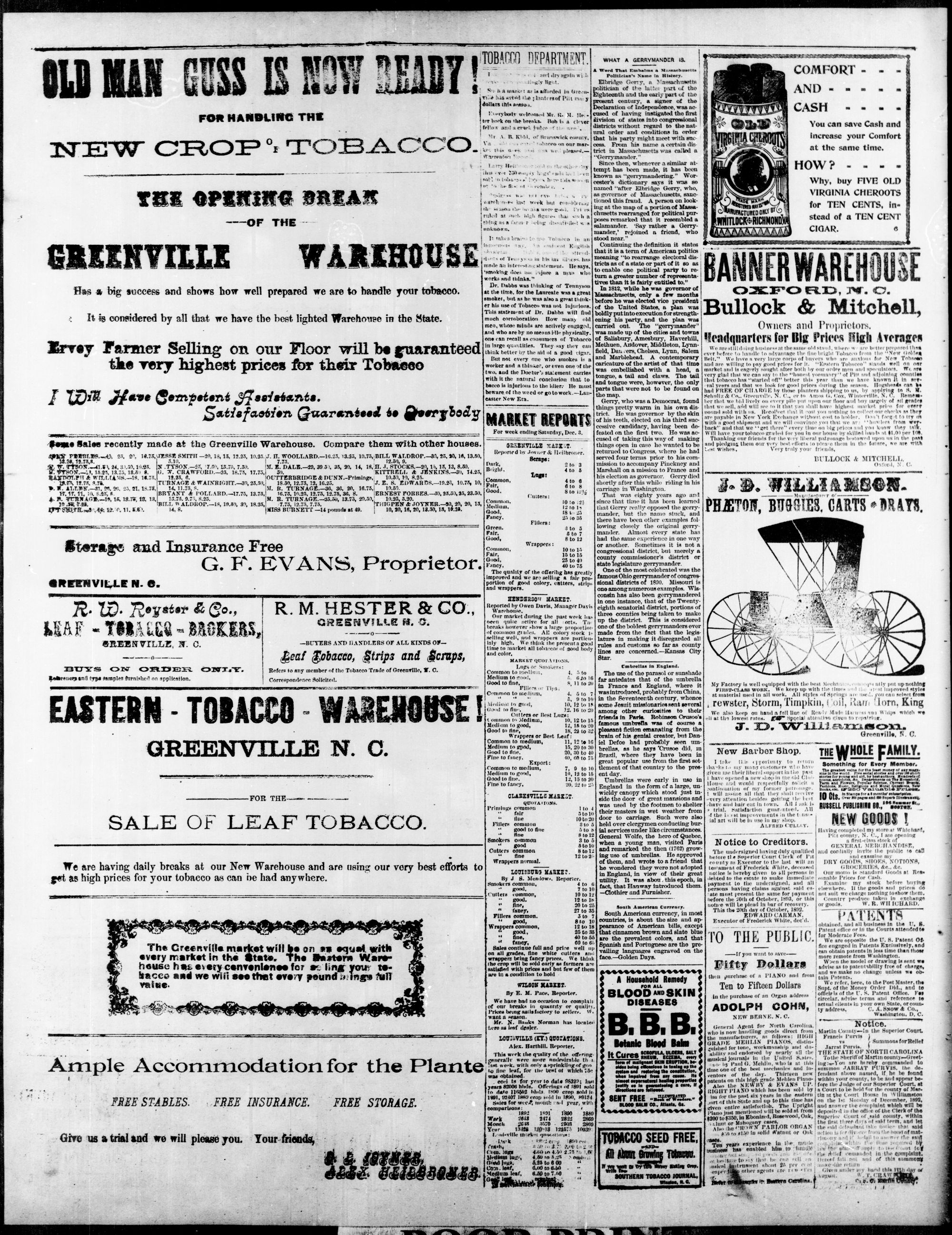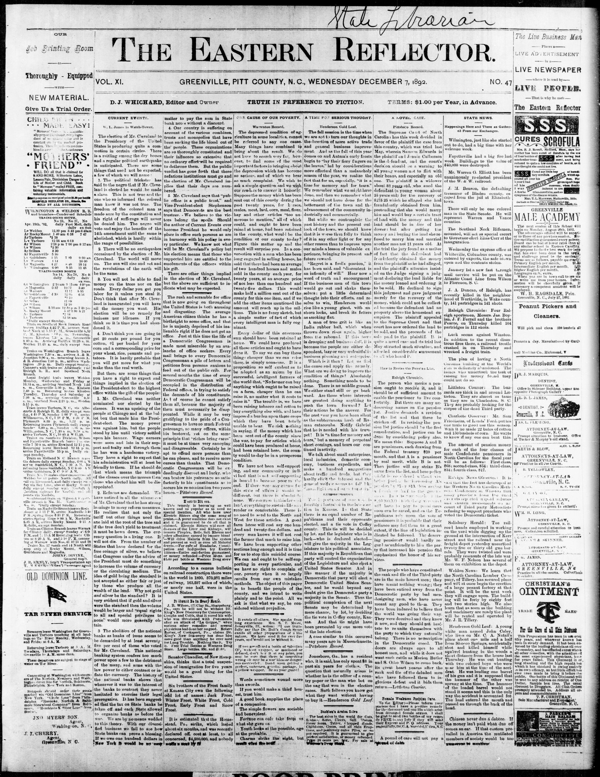 GREENVILLE, PITT COUNTY, WEDNESDAY DECEMBER 1892.