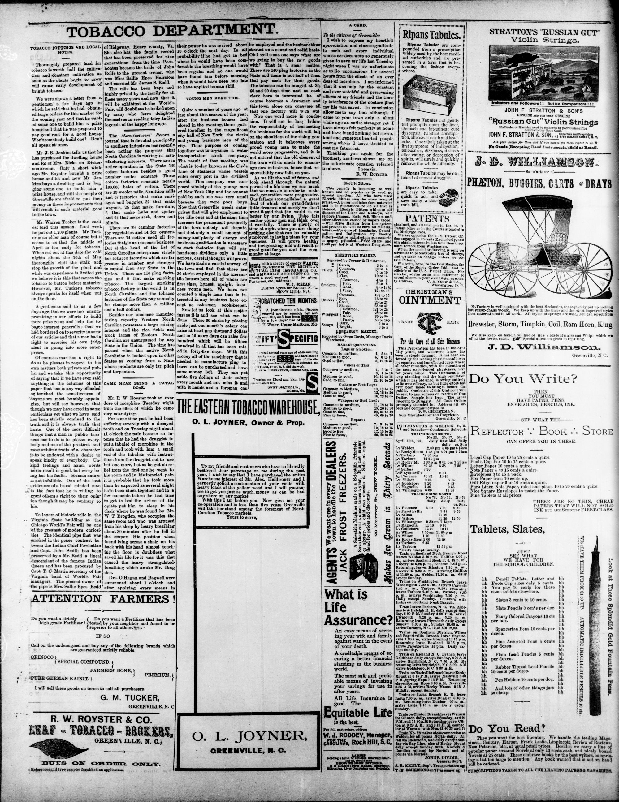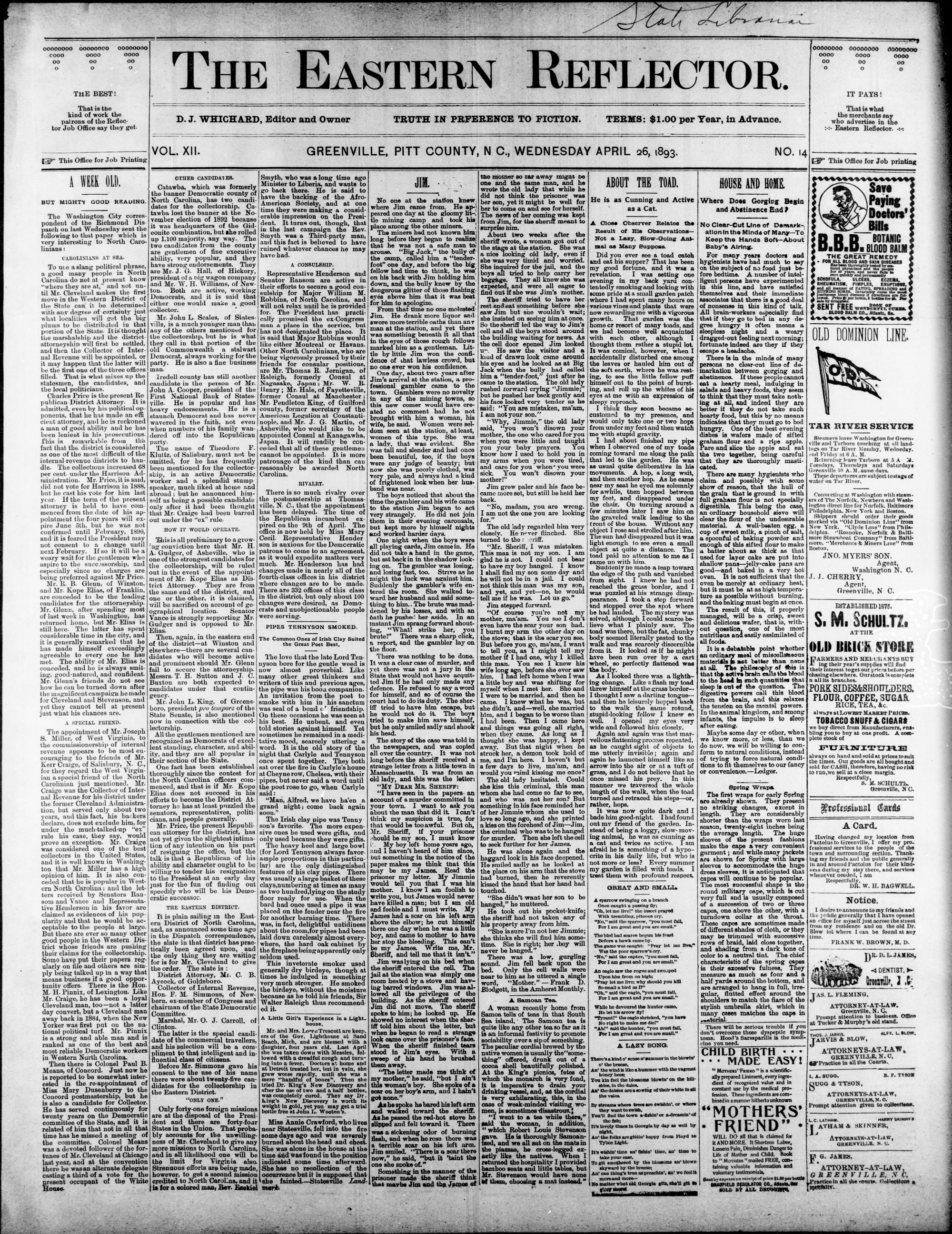 GREENVILLE, PITT COUNTY, N C, WEDNESDAY APRIL 1893.