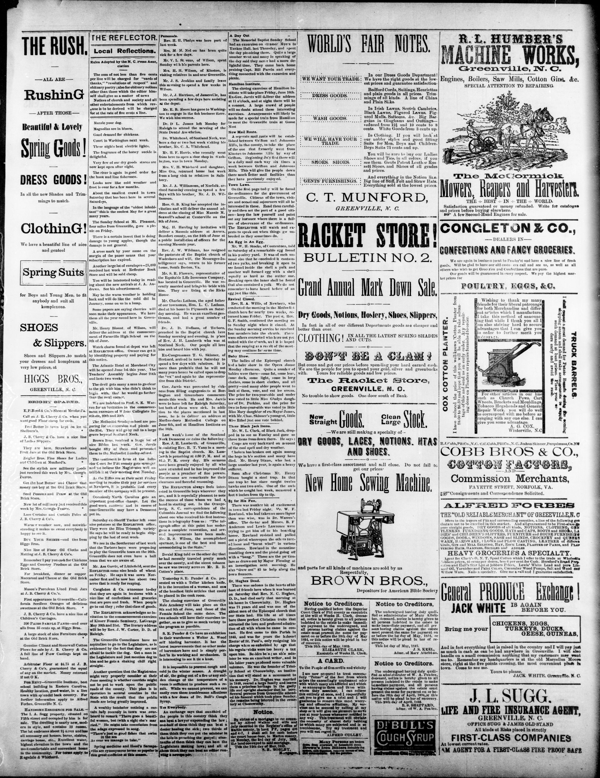 friends for their liberal patronage.