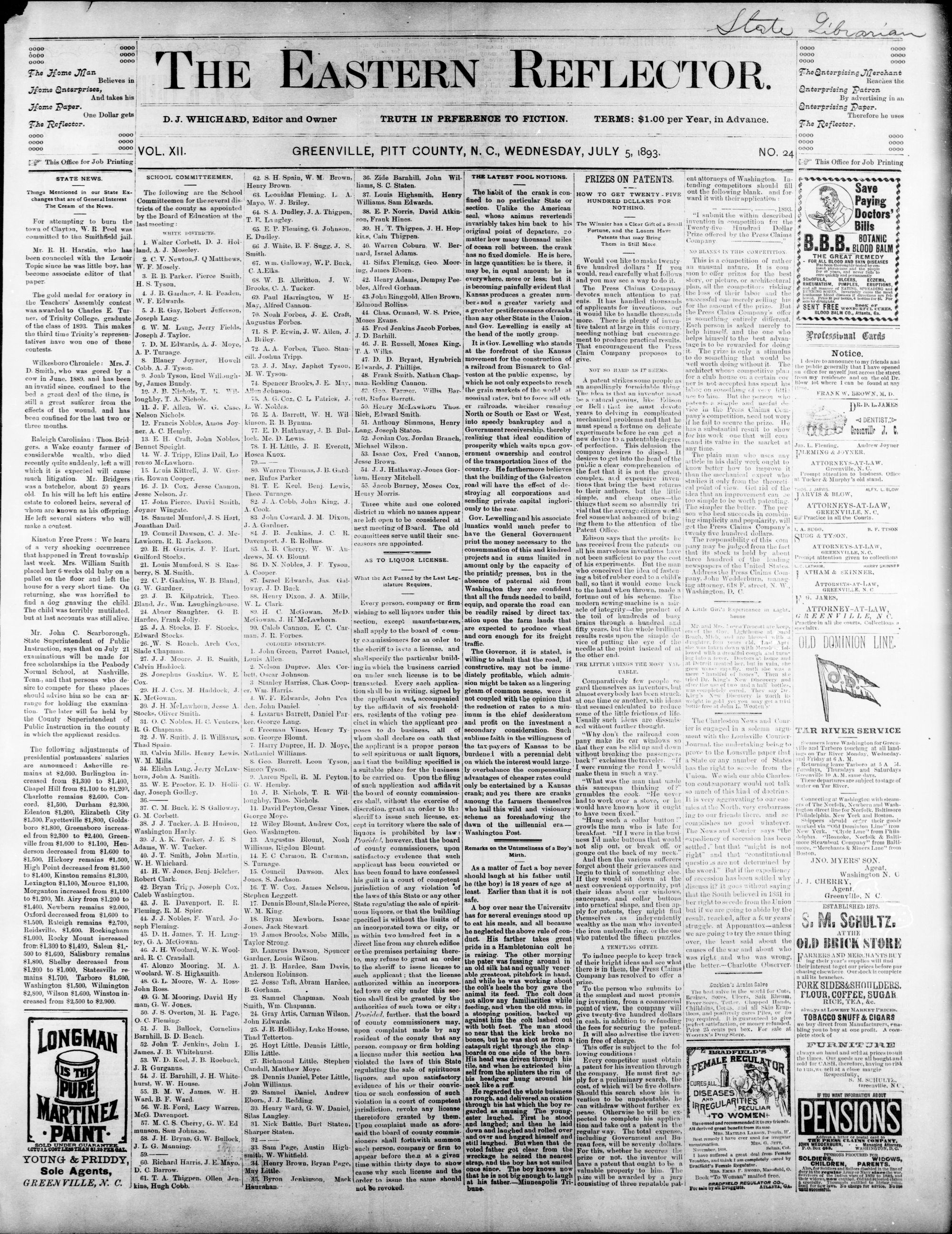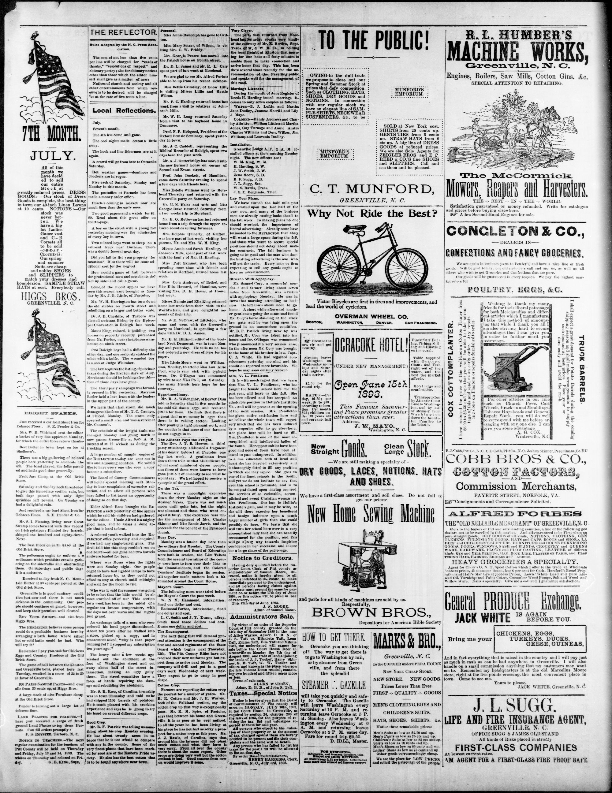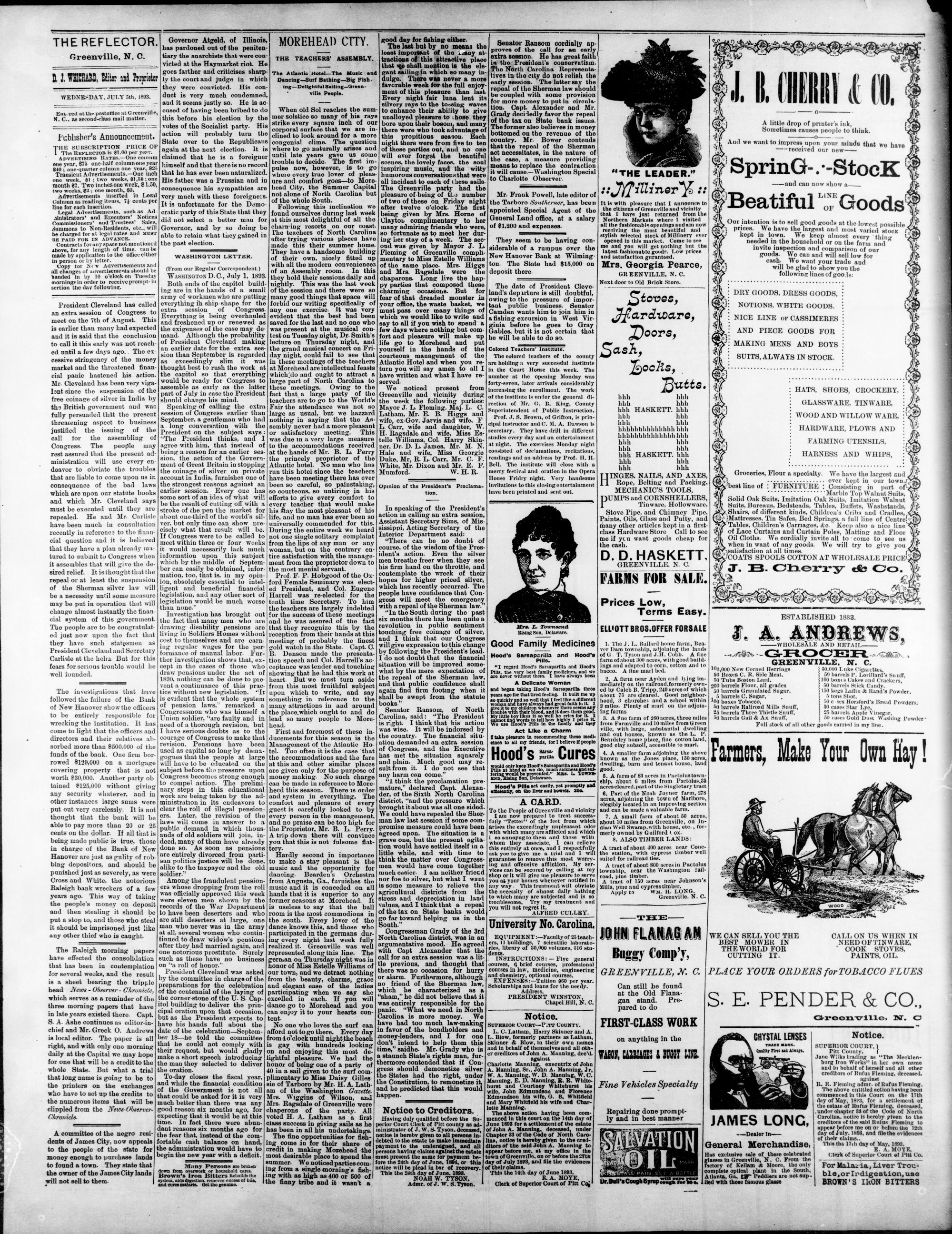 GREENVILLE, PITT COUNTY, N. C, WEDNESDAY, JULY 1893.