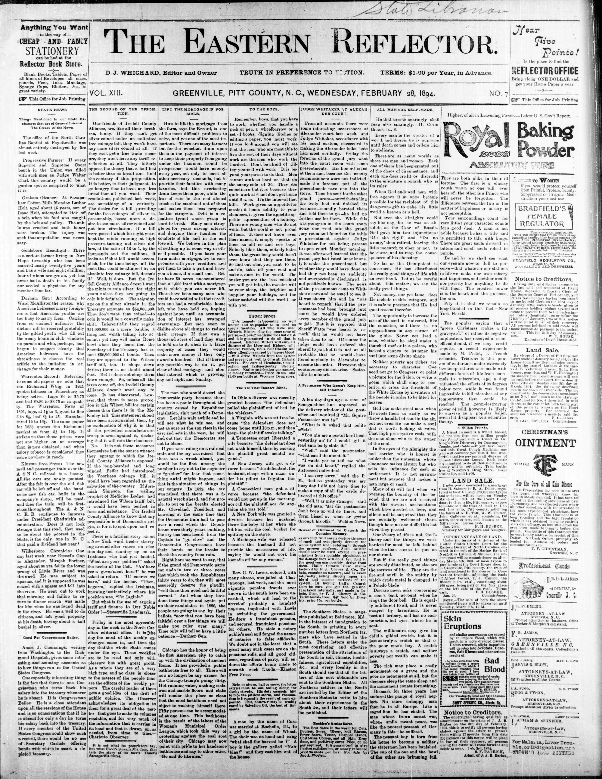 GREENVILLE, PITT COUNTY, N. C, WEDNESDAY, FEBRUARY