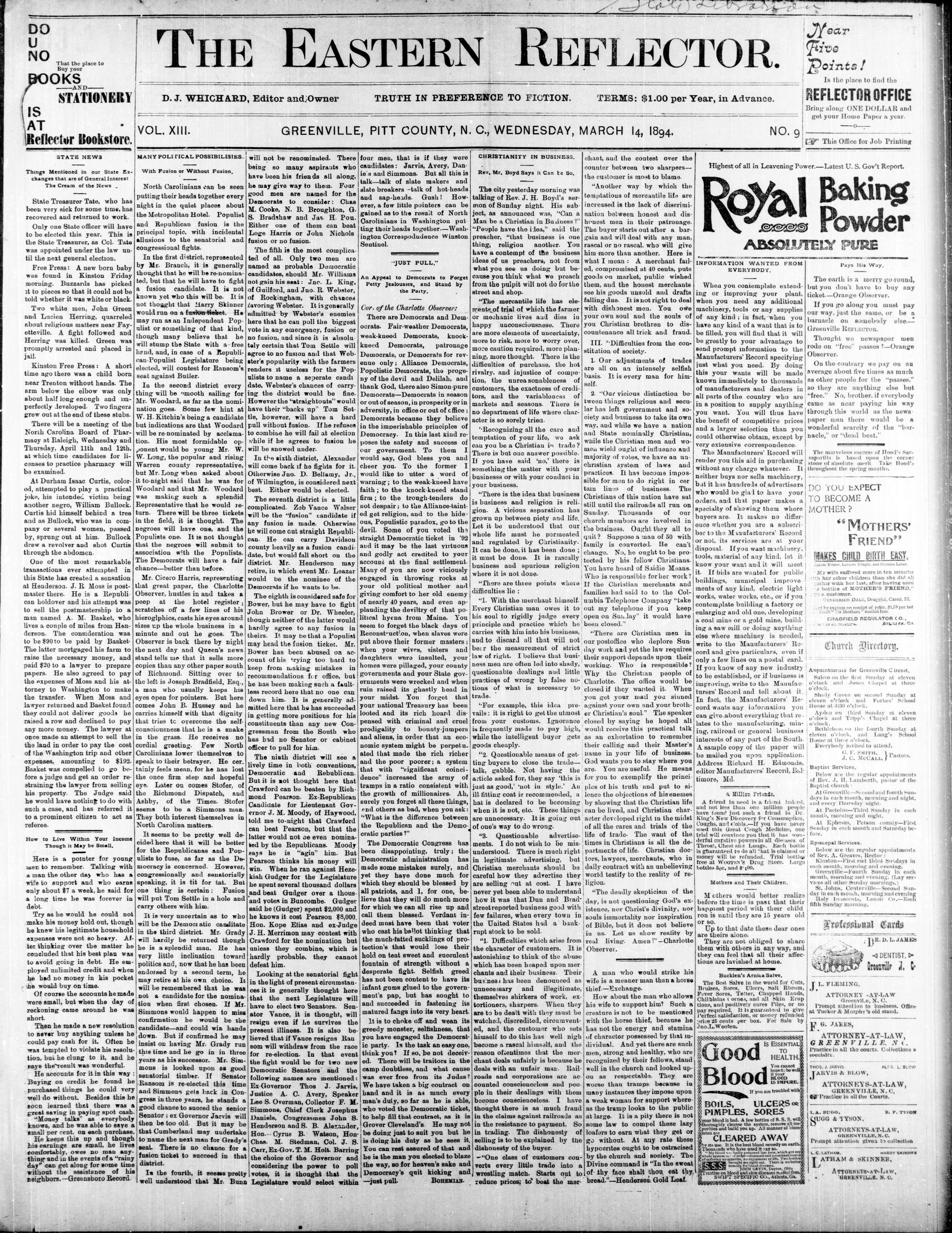Eastern reflector, 14 March 1894