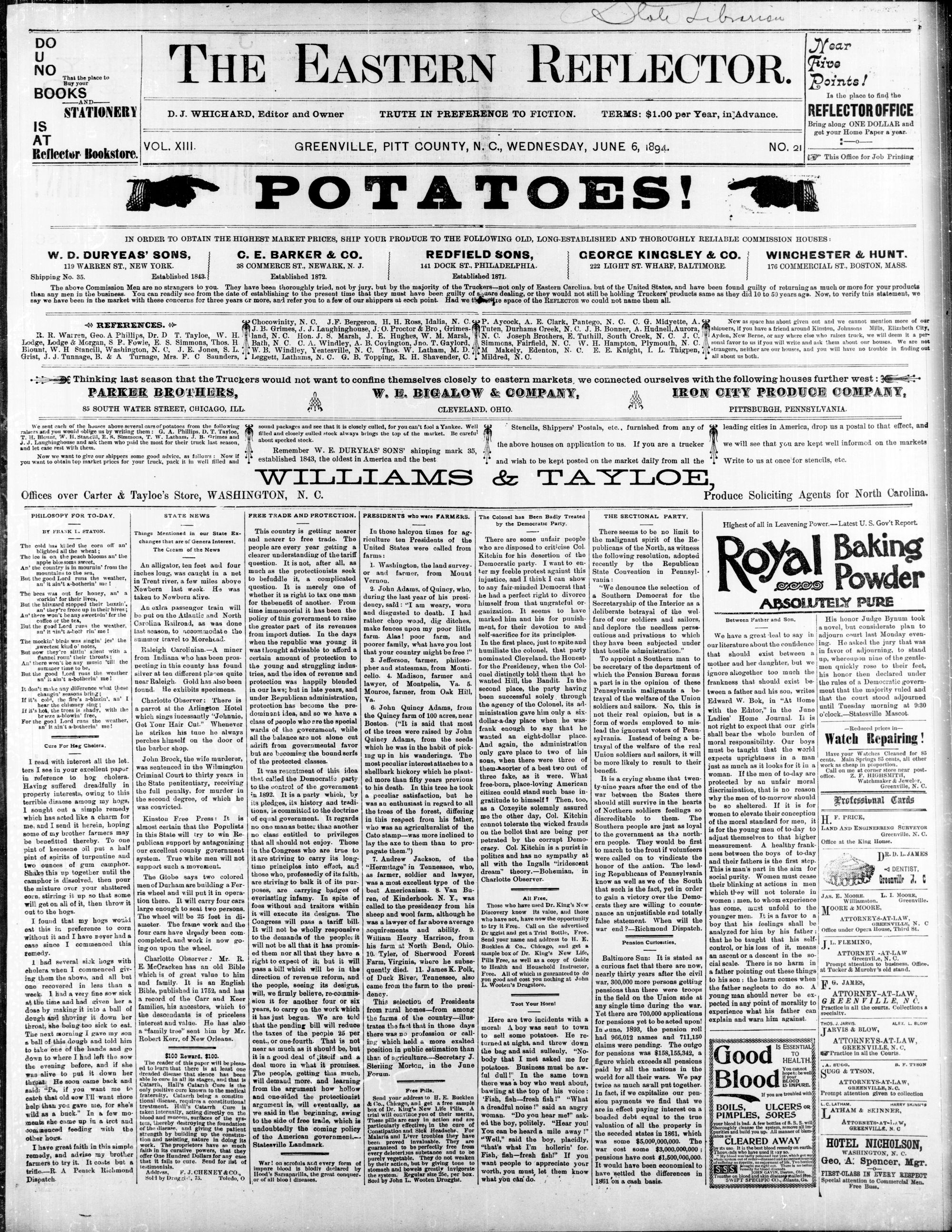 GREENVILLE, PITT COUNTY, N. C, WEDNESDAY, JUNE 1894.