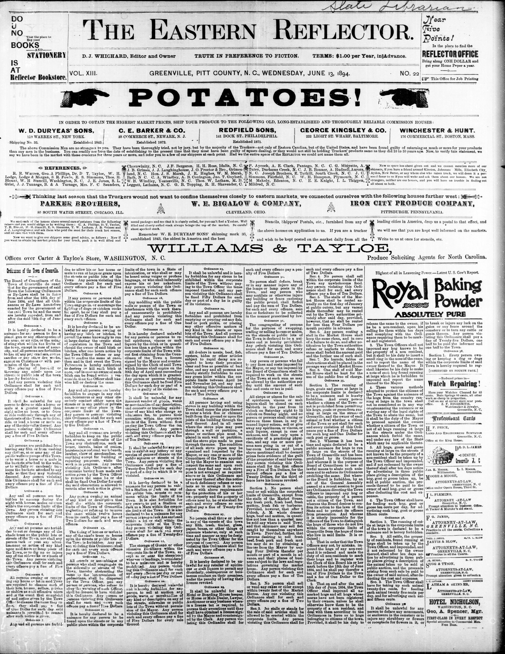 GREENVILLE, PITT COUNTY, N. C. WEDNESDAY, JUNE 1894.