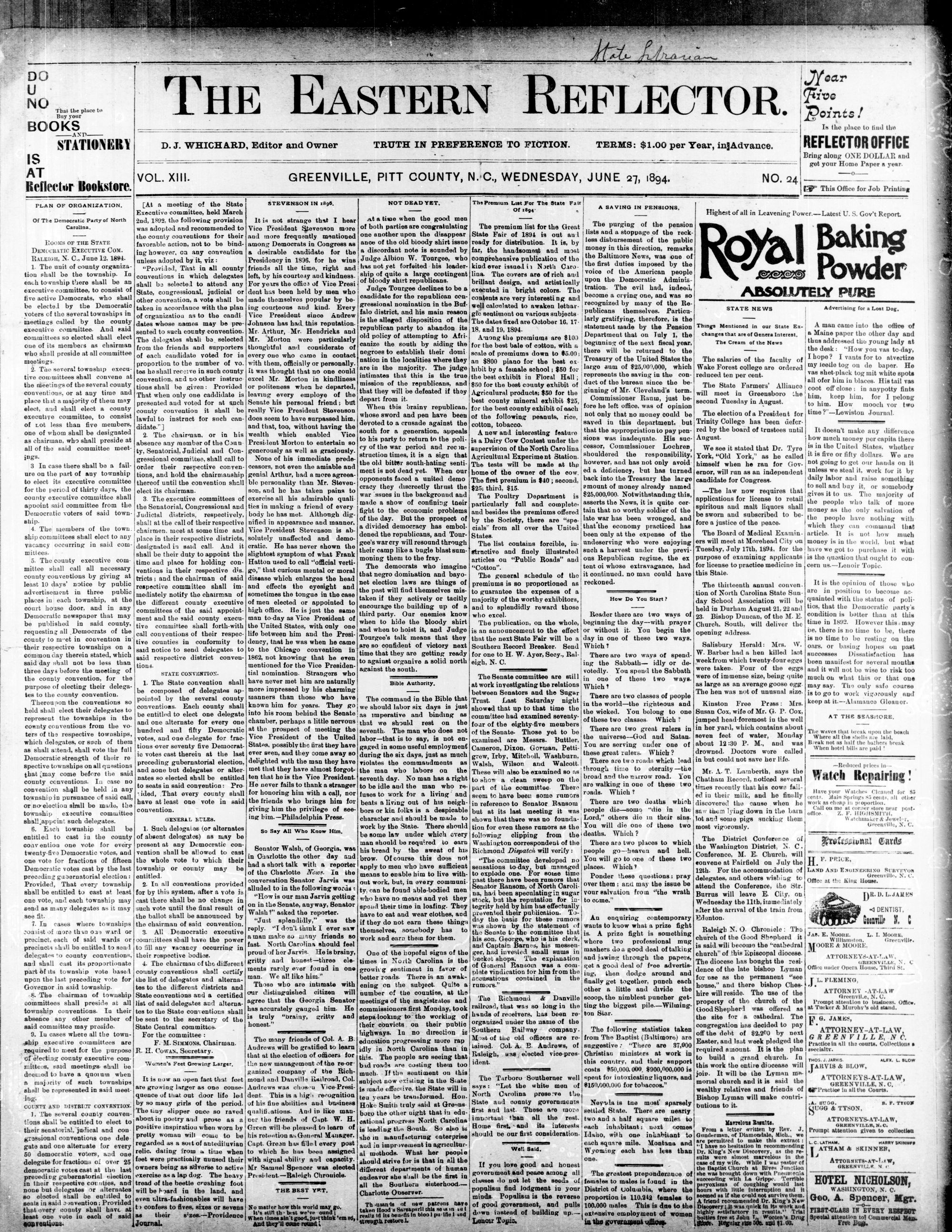The Eastern Reflector was a newspaper published in Greenville, N.C. It later became known as the Daily Reflector.