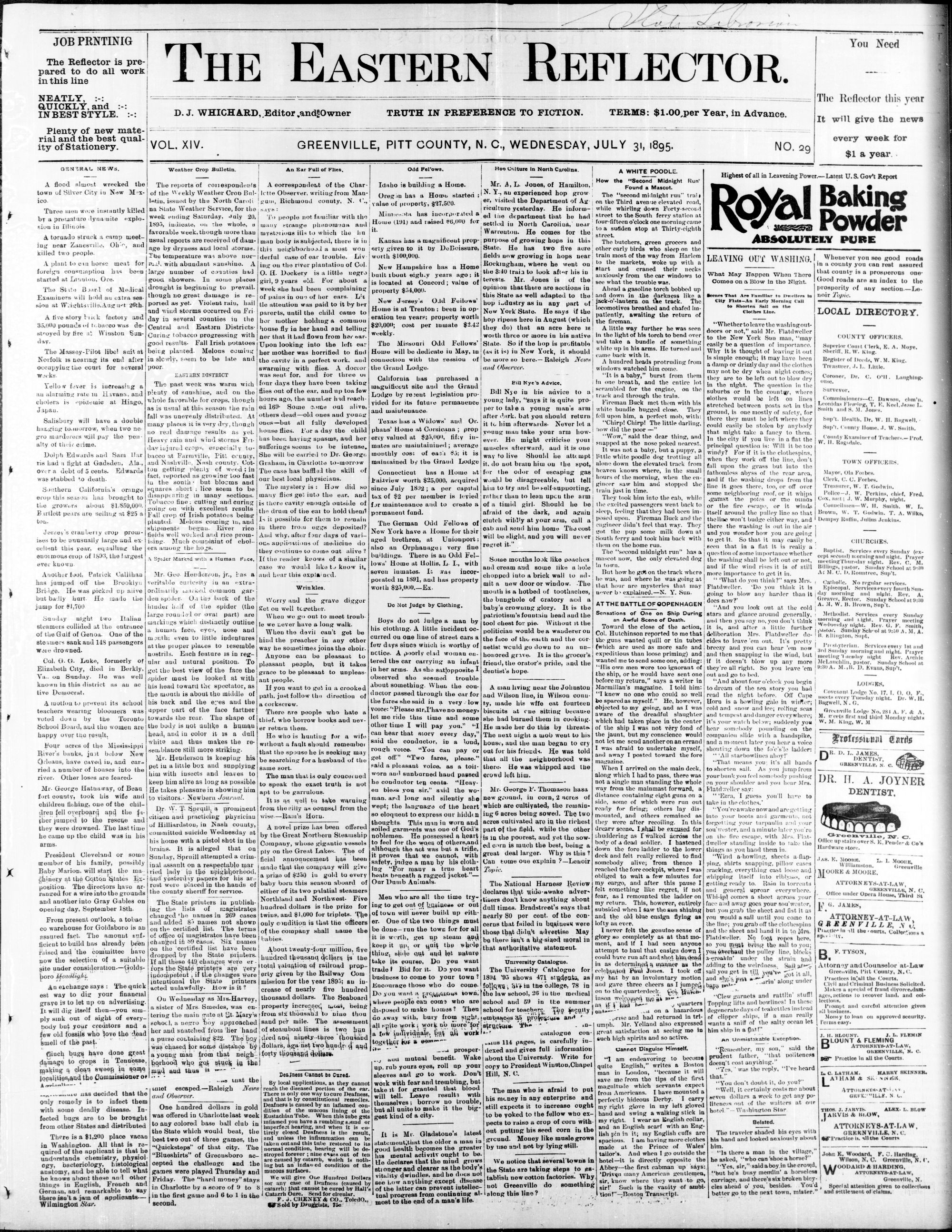 GREENVILLE, PITT COUNTY, N. C, WEDNESDAY, JULY 1895.