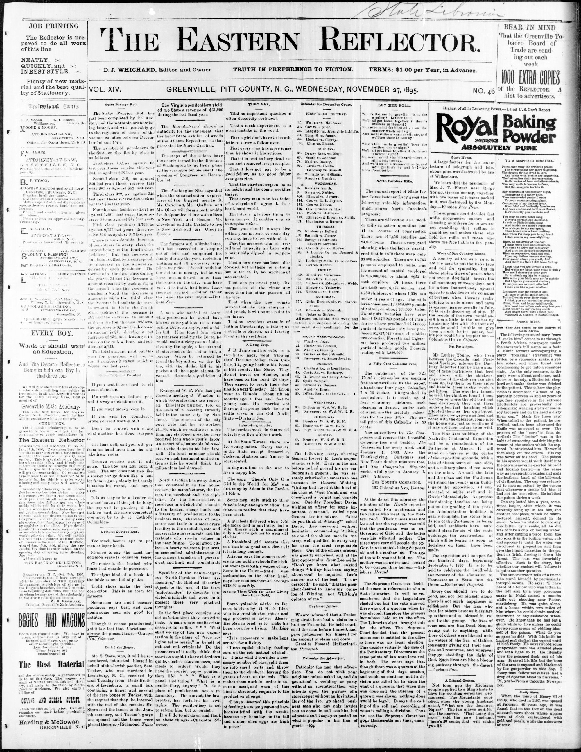 GREENVILLE, PITT COUNTY, N. C, WEDNESDAY, NOVEMBER 1895.