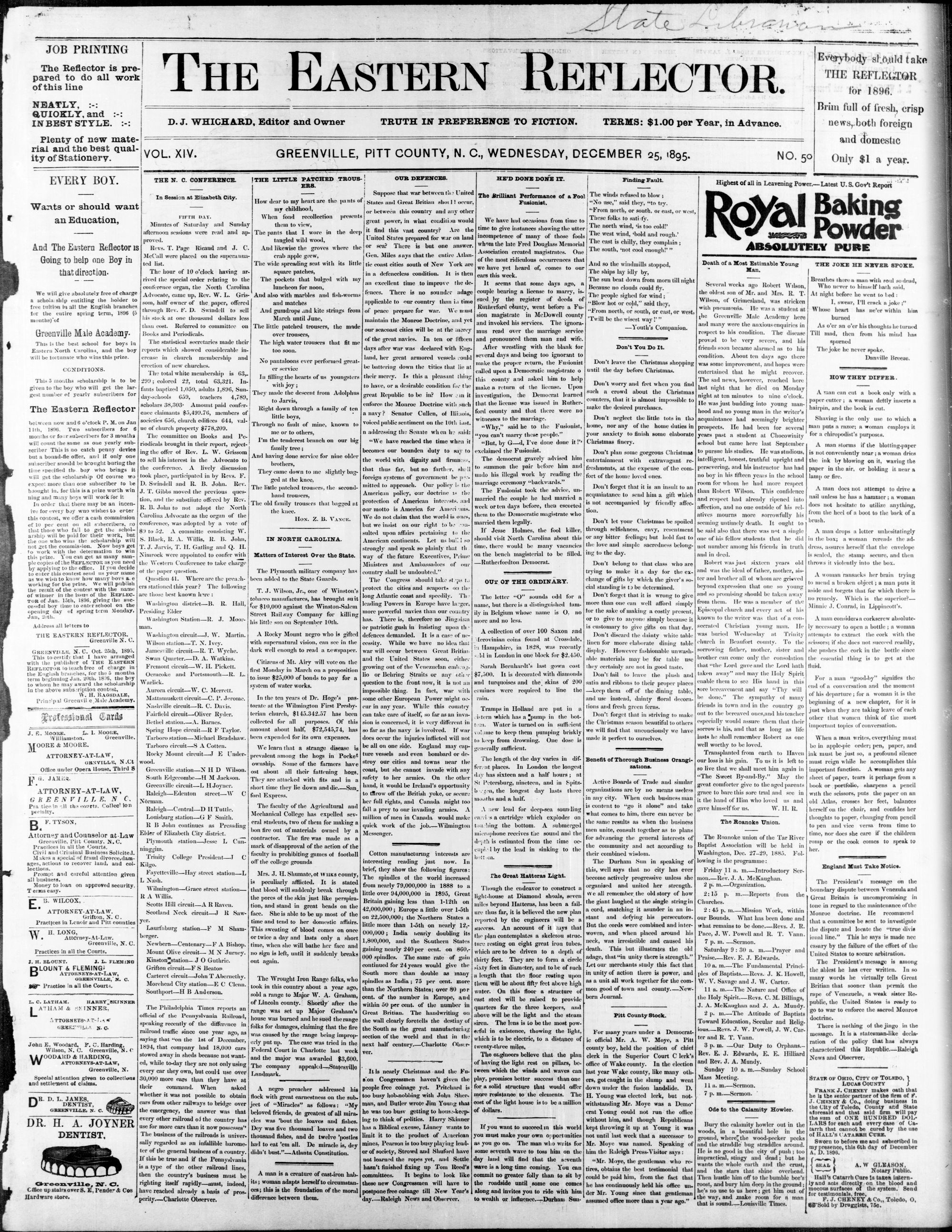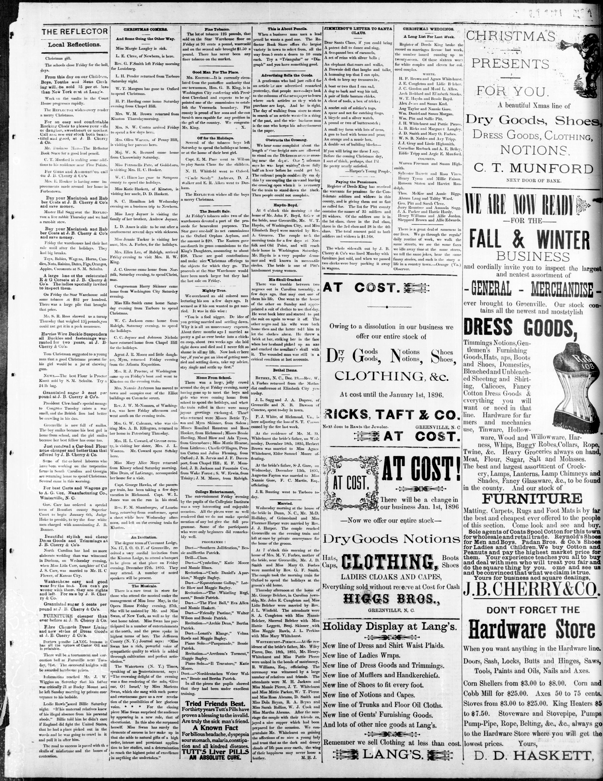 GREENVILLE, PITT COUNTY, N. C, WEDNESDAY, DECEMBER 1895.