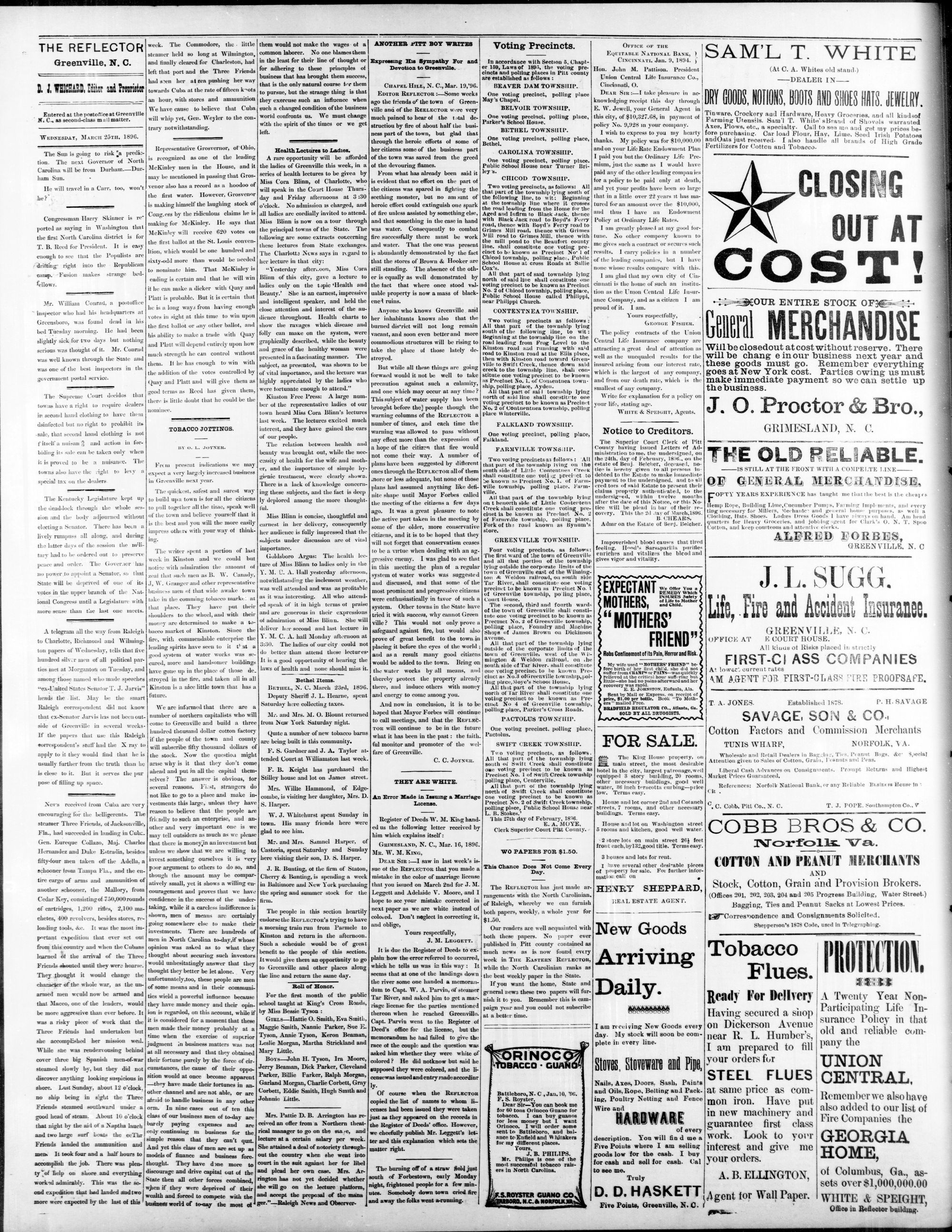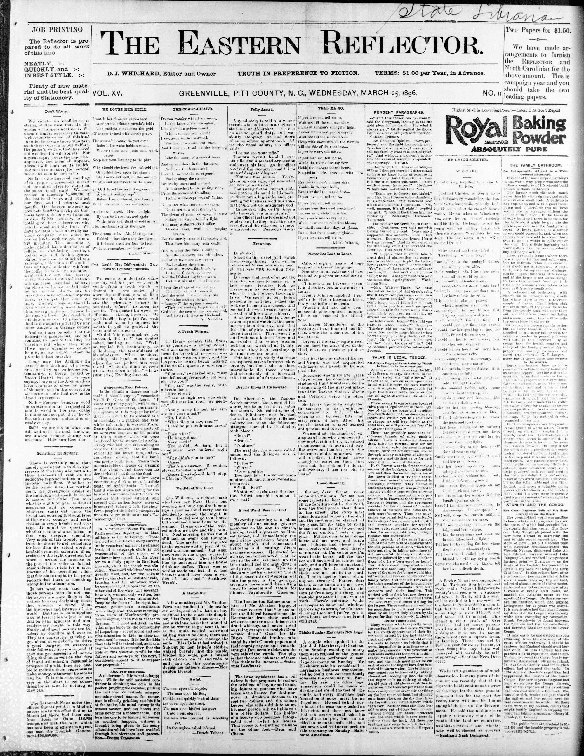GREENVILLE, PITT COUNTY, N. Ci, WEDNESDAY, MARCH 1896.