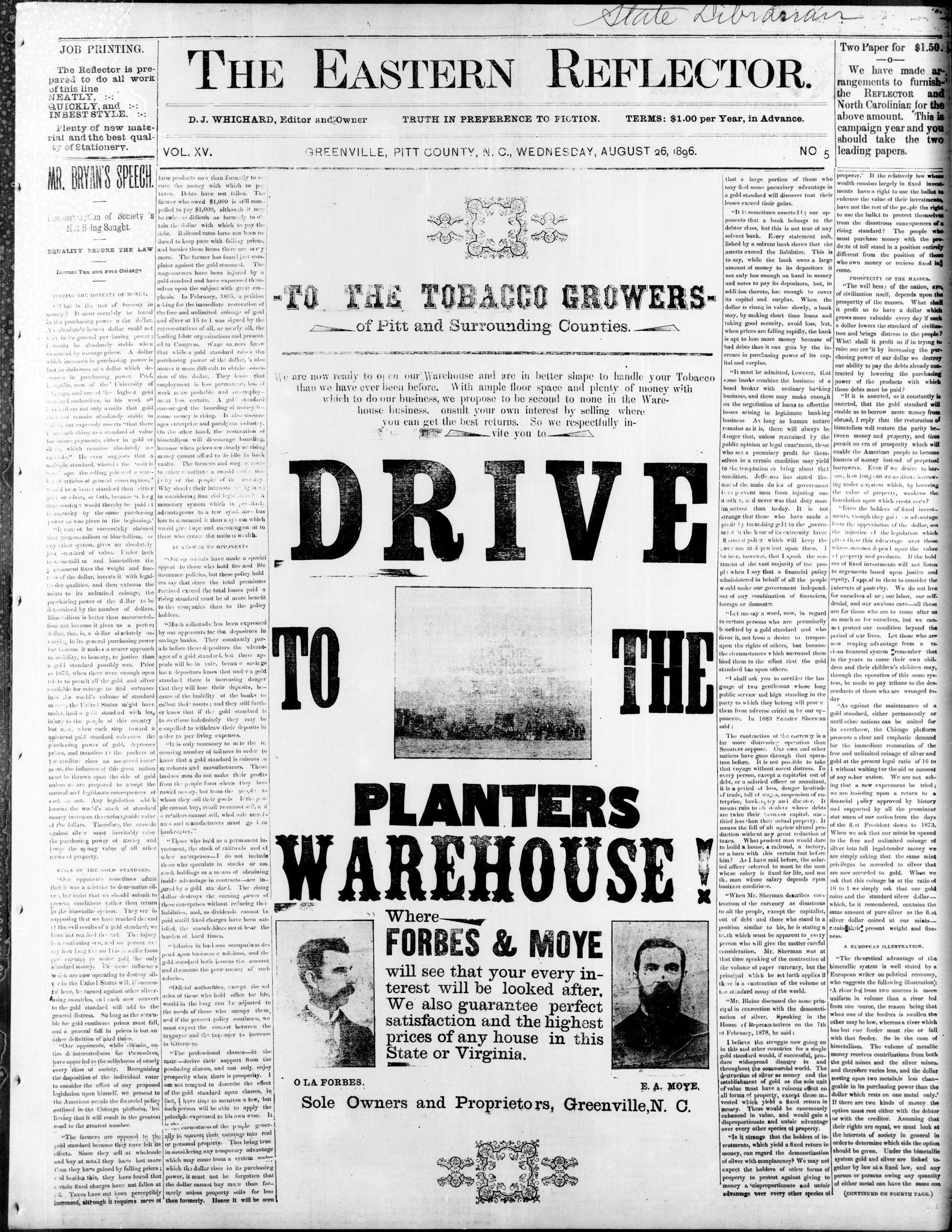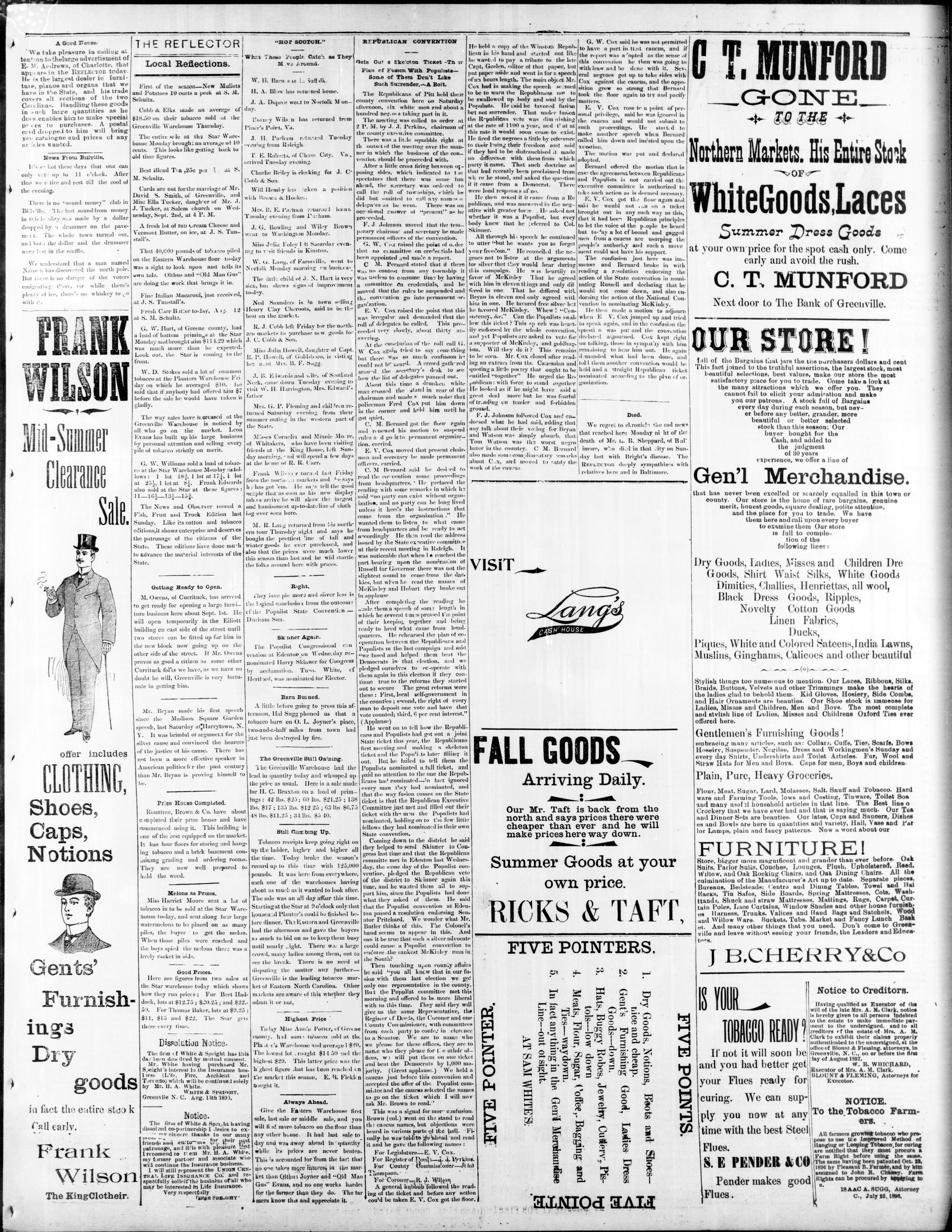 GREENVILLE, PiTT COUNTY, N. C, WEDNESDAY, AUGUST 1896.