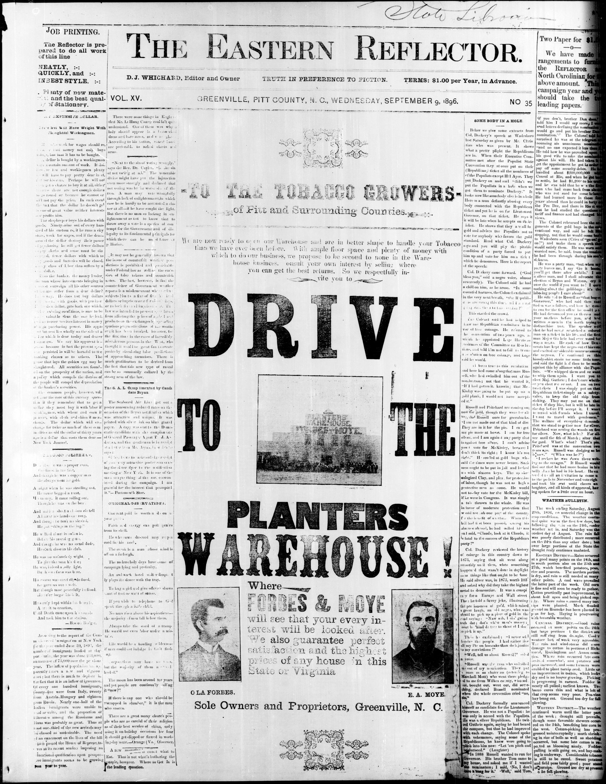 The Eastern Reflector was a newspaper published in Greenville, N.C. It later became known as the Daily Reflector.