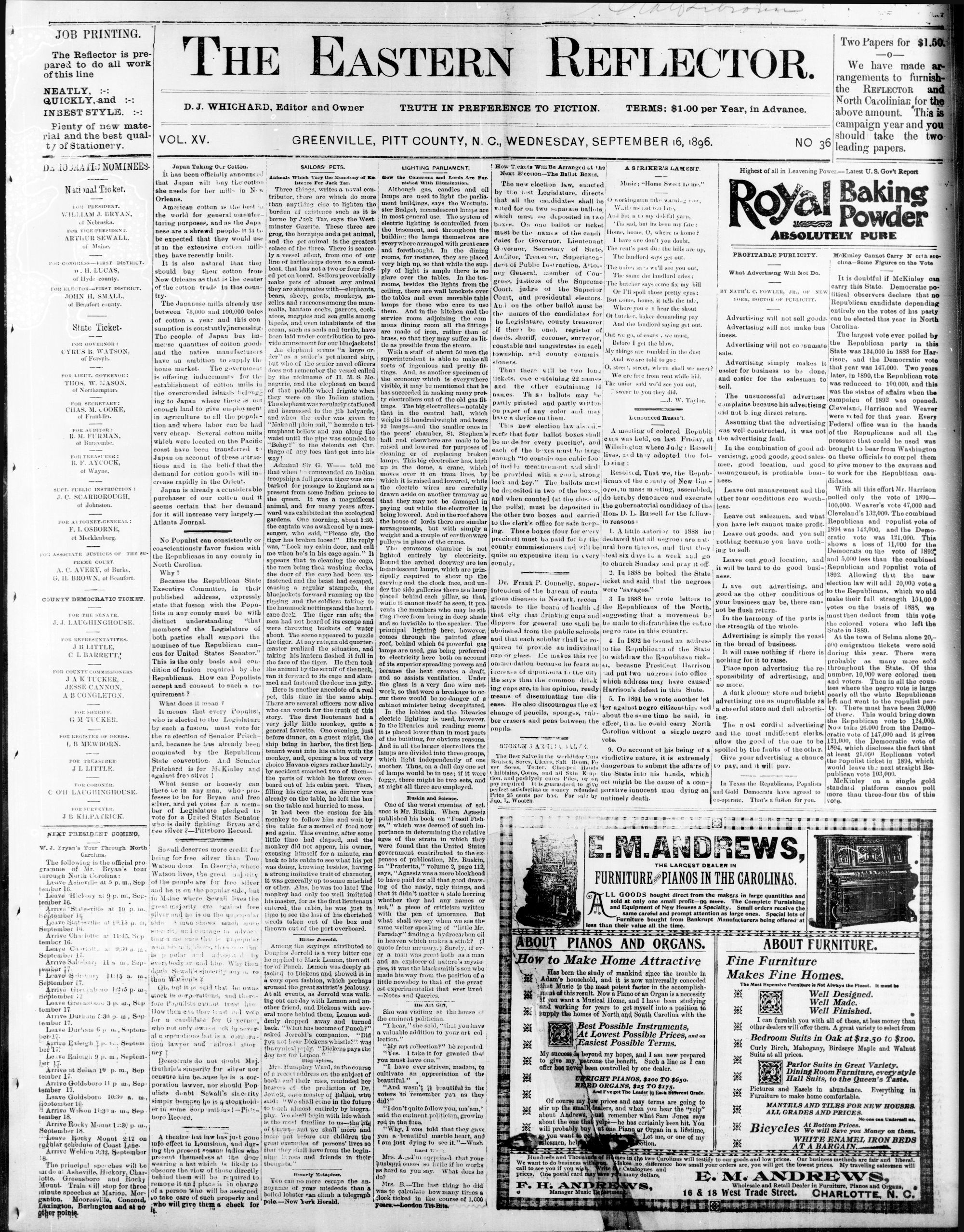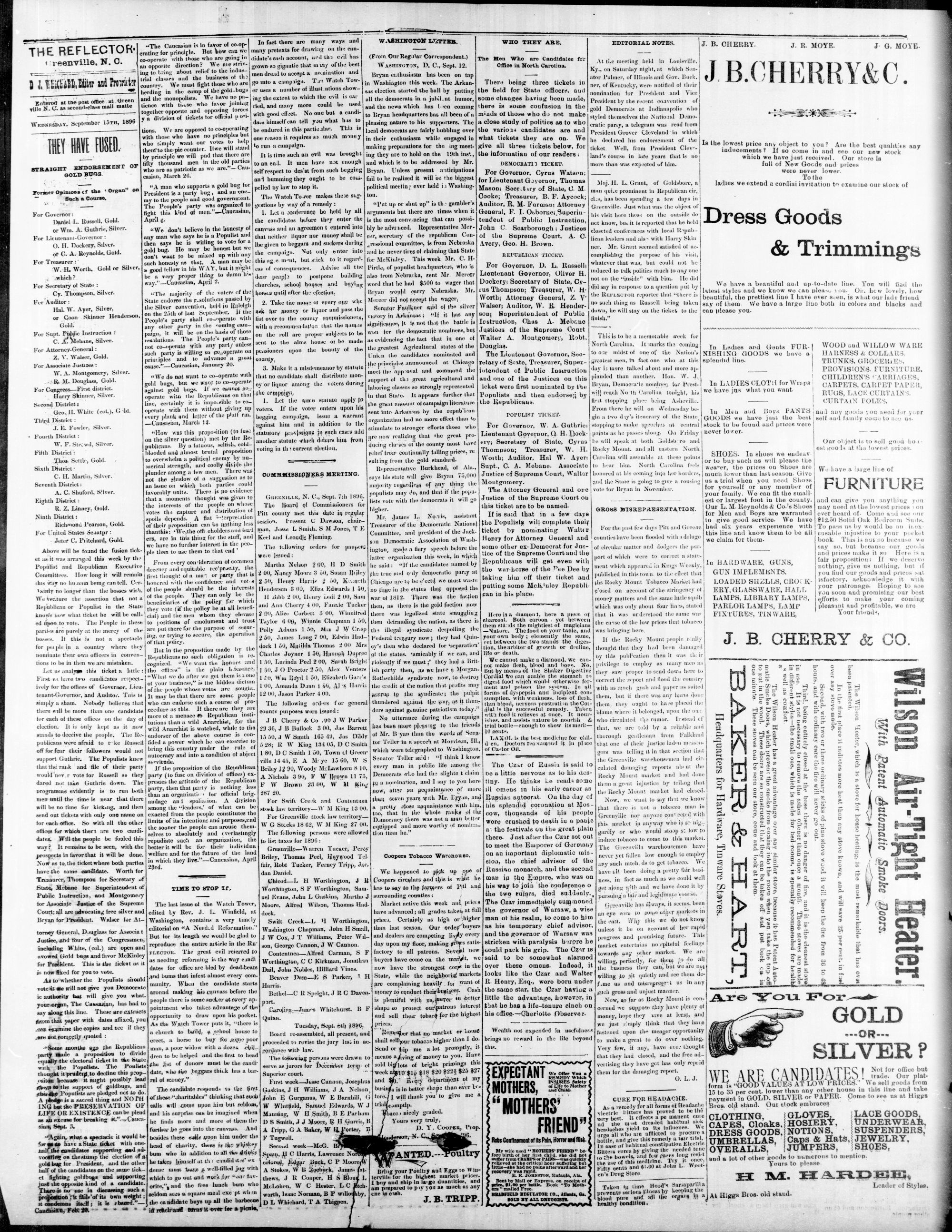 GREENVILLE, PITT COUNTY, N. C, WEDNESDAY, SEPTEMBER 1896.