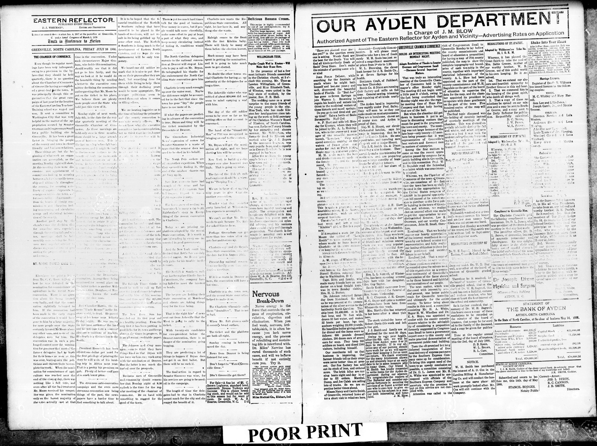 r c . j ;,.,. Daily Reflector for publication.