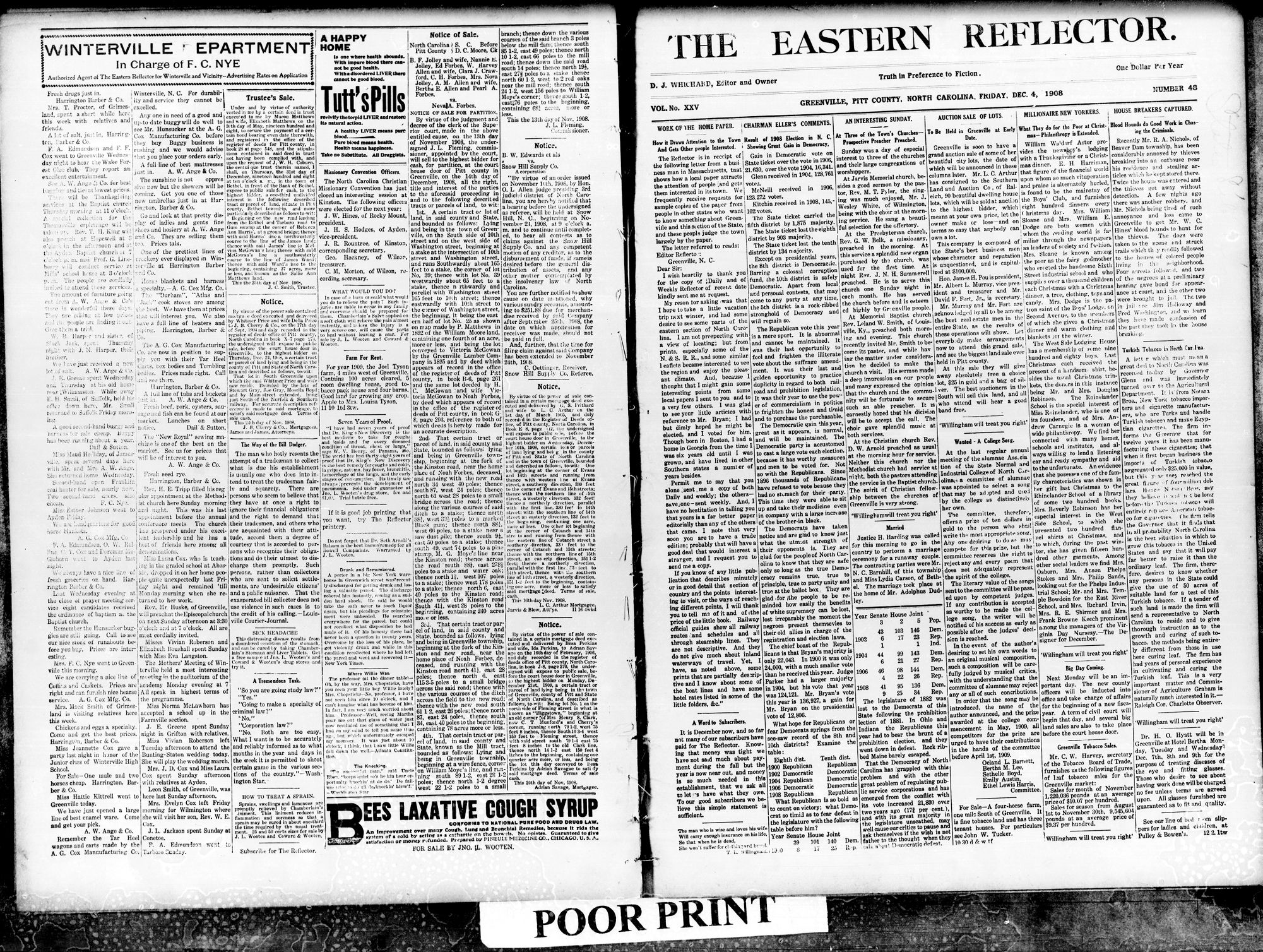 S A Agent The Eastern Reflector Winterville and Vicinity-Advertising Rates on Application