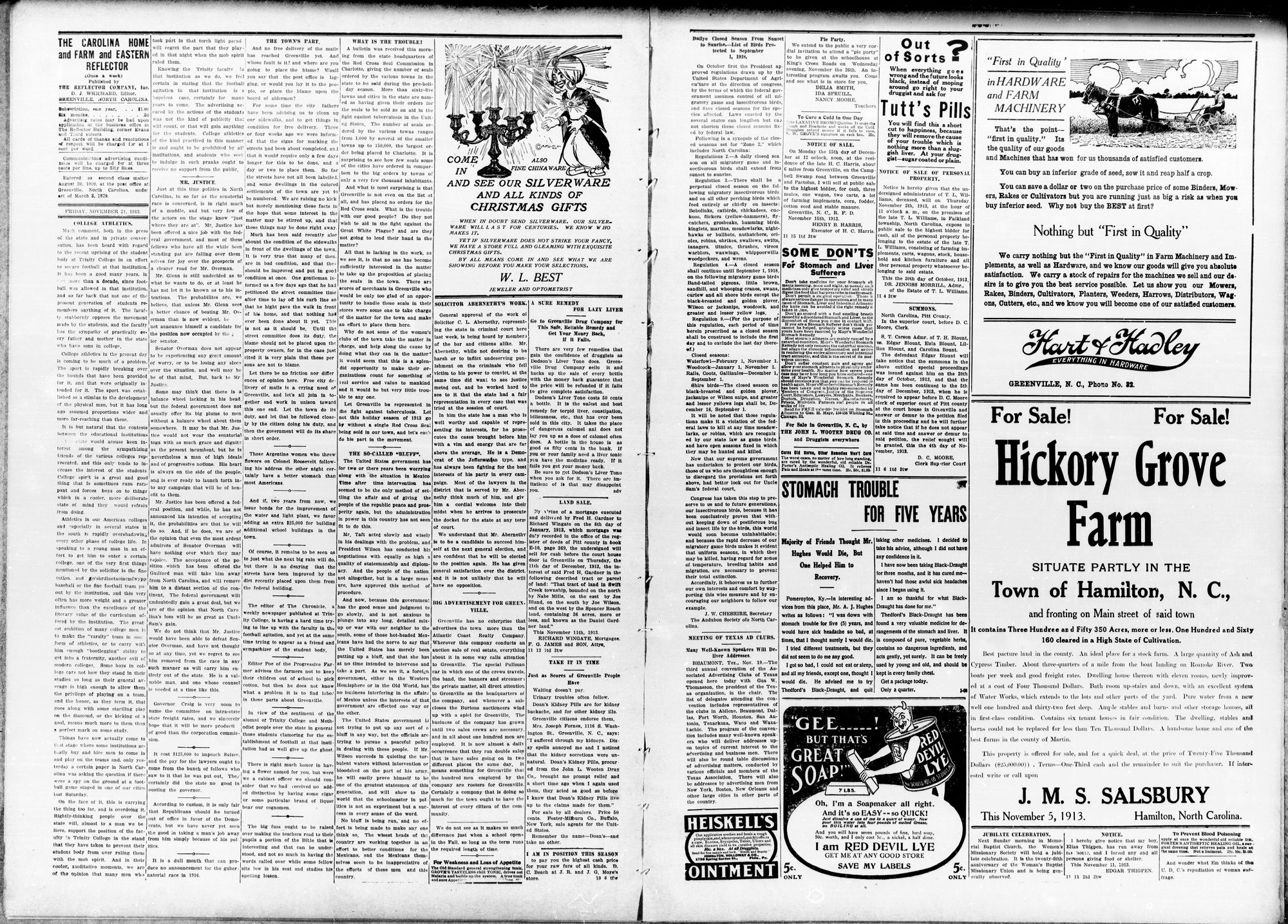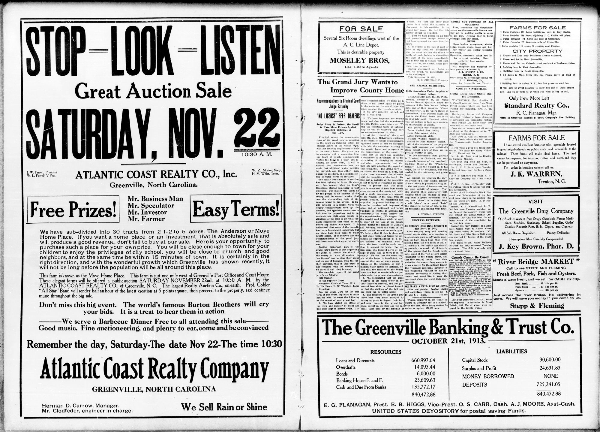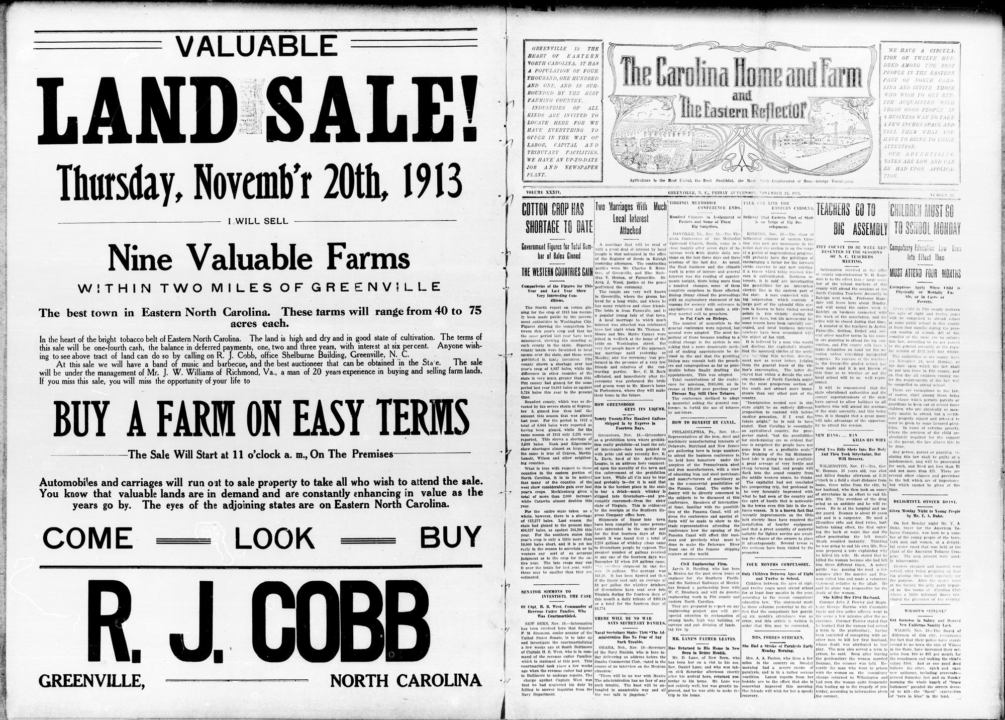 In the heart of the bright tobacco belt of Eastern North Carolina. The land is high and dry and in good state of cultivation. The terms of