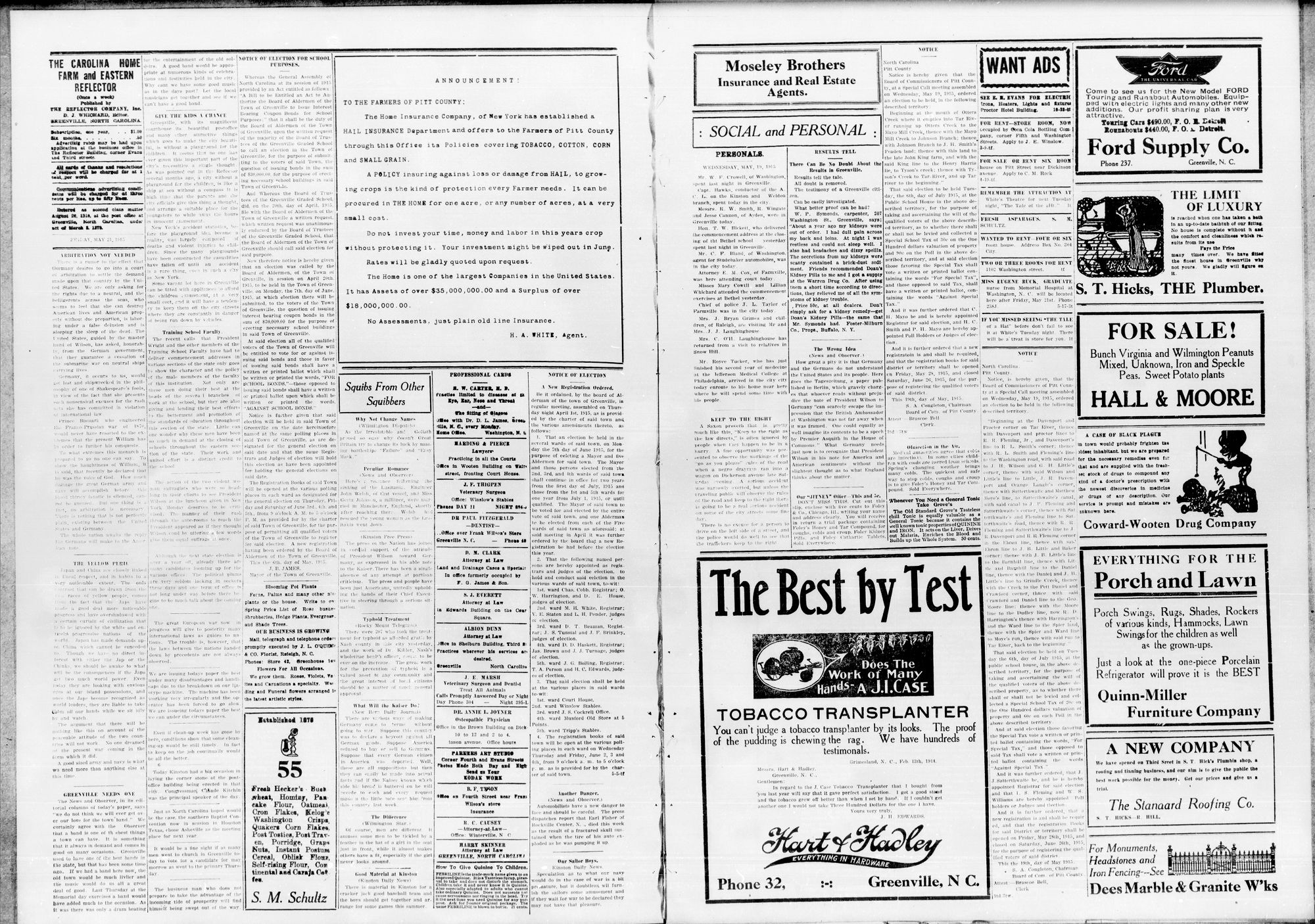 the town of Farmville, N. C. Con-