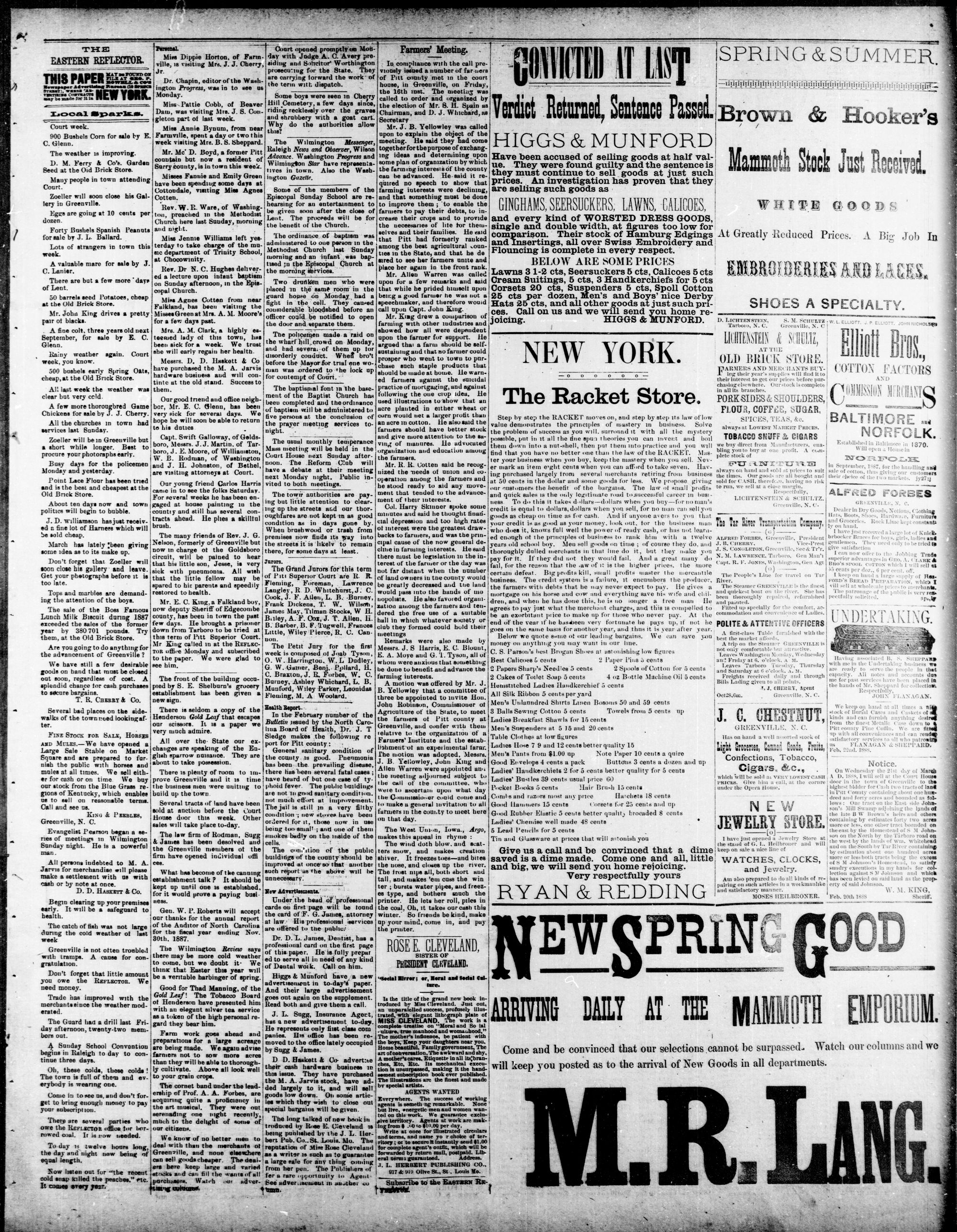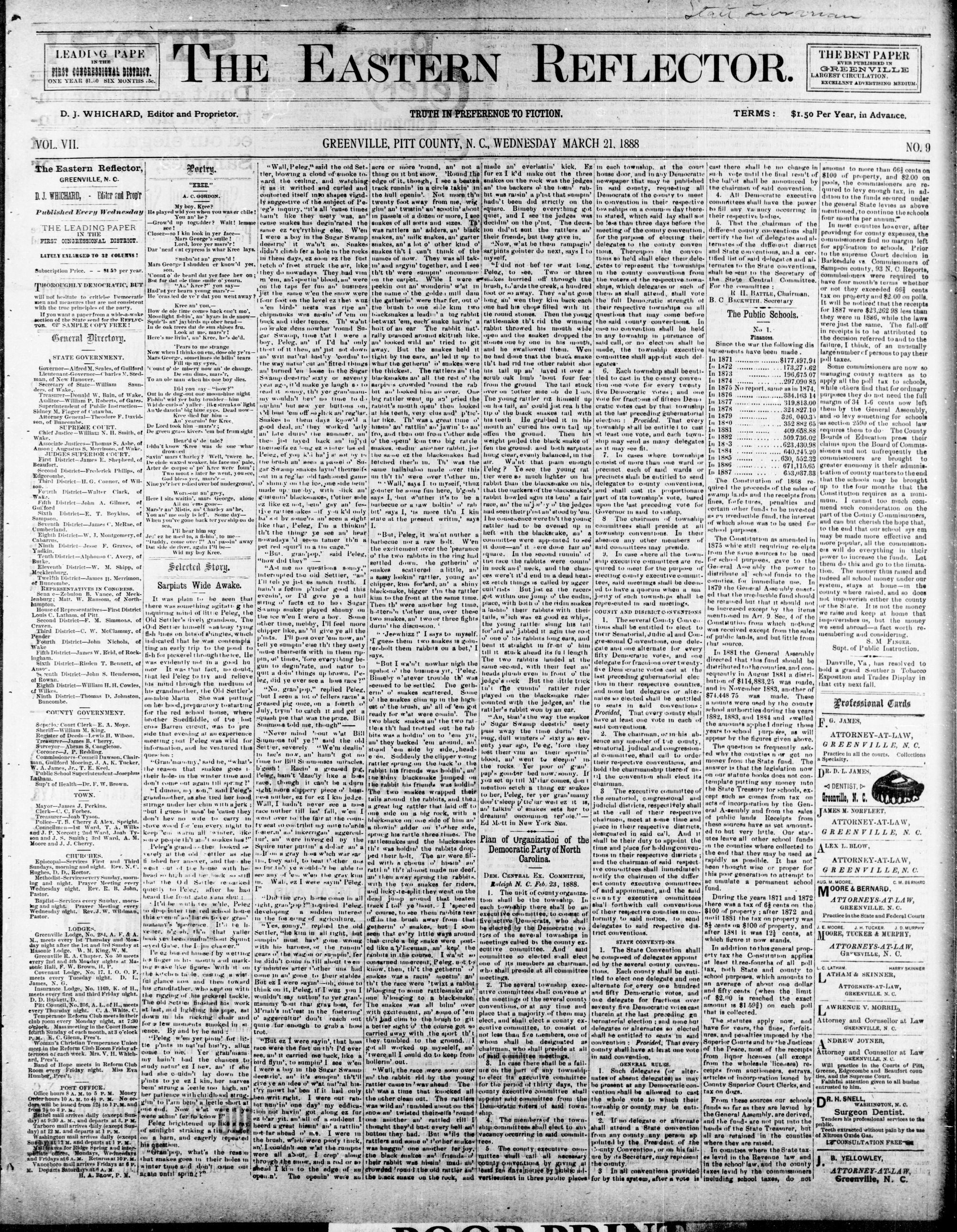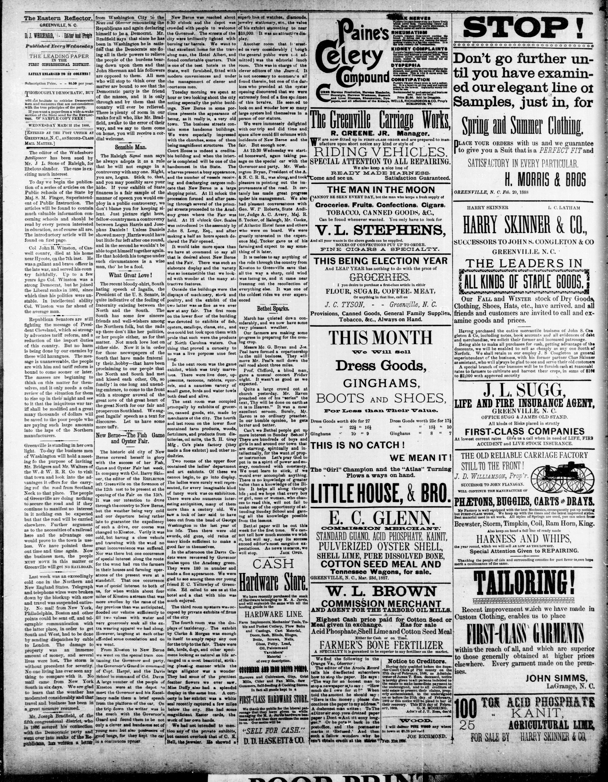 GREENVILLE, PITT COUNTY, N. C, WEDNESDAY MARCH 1888
