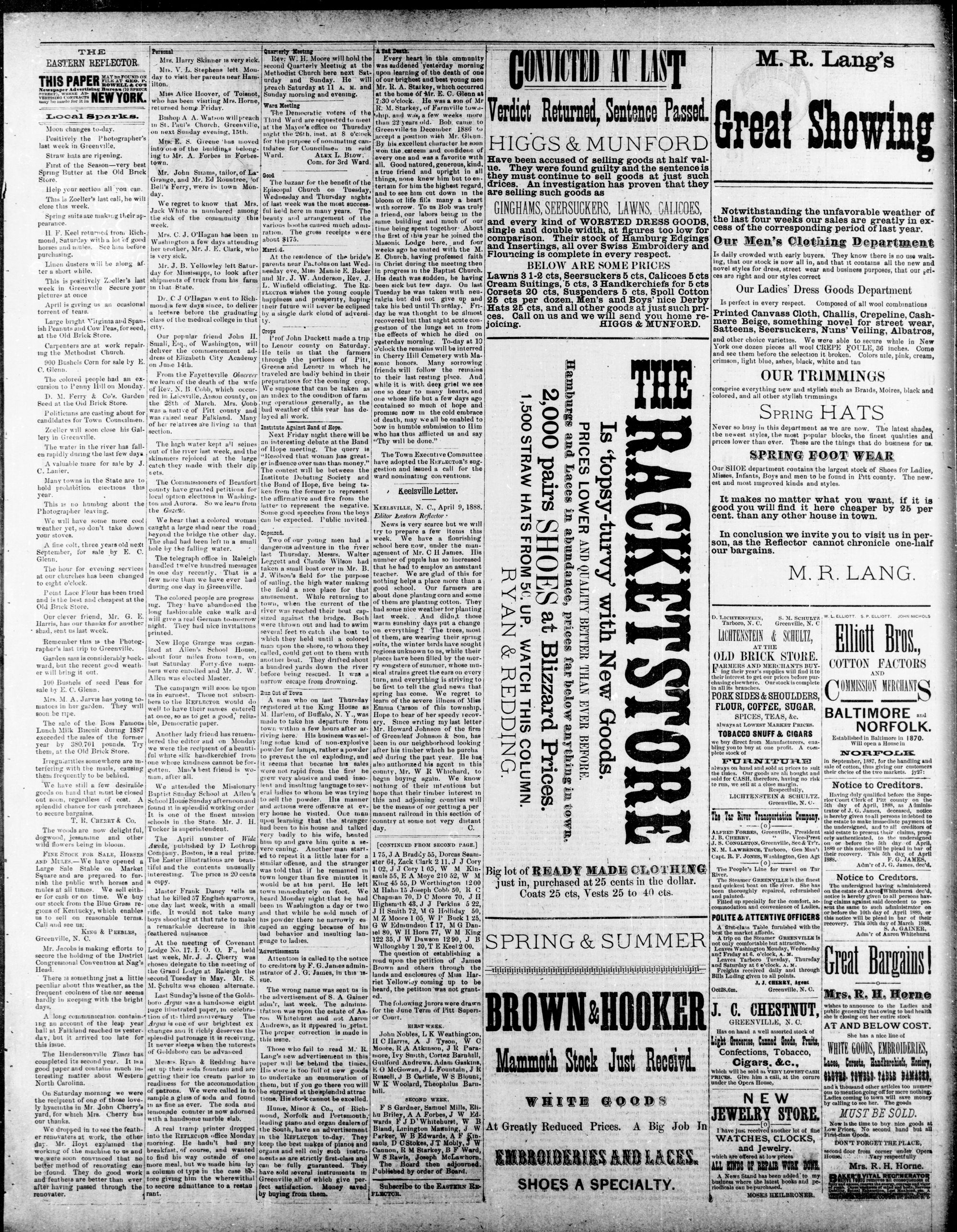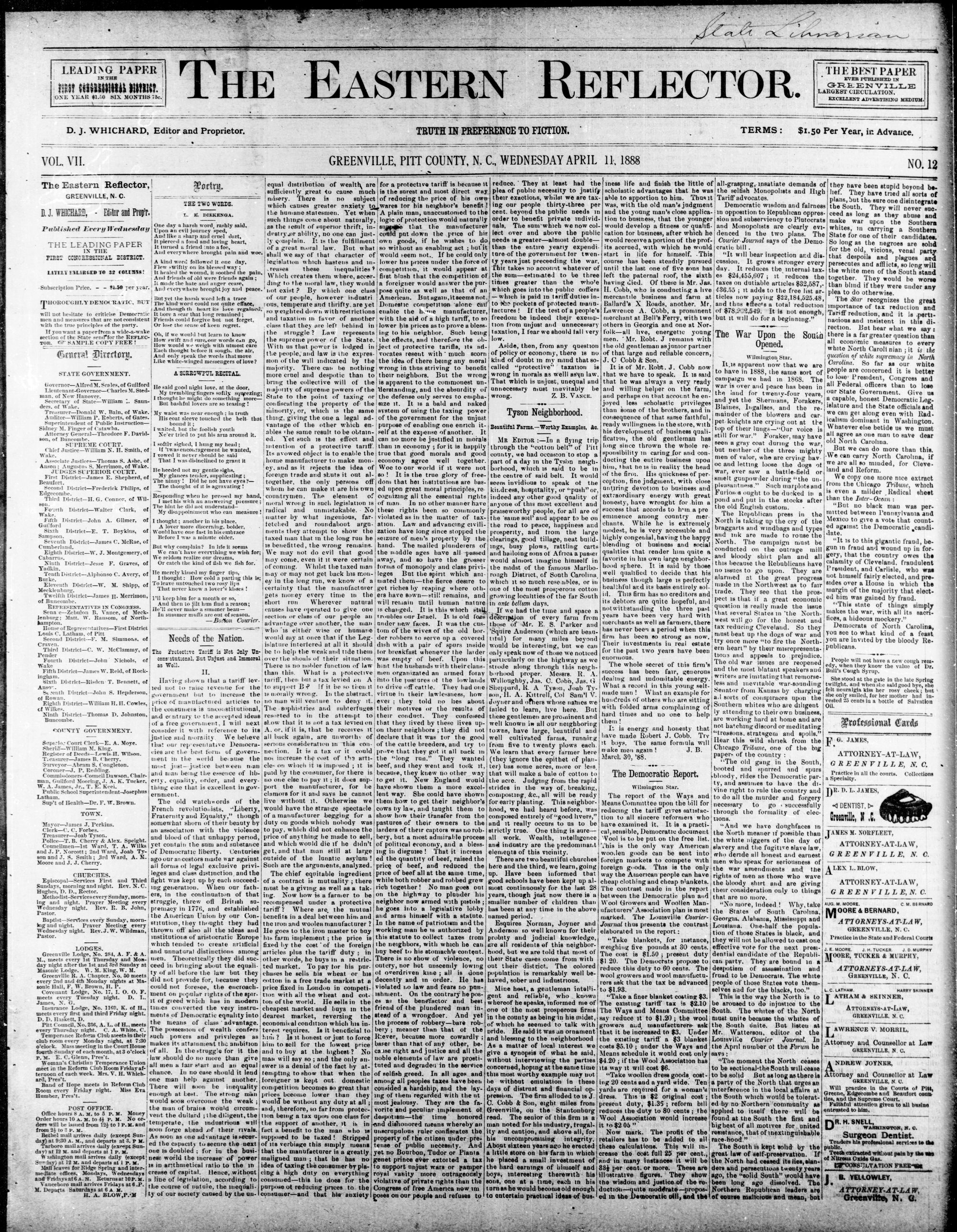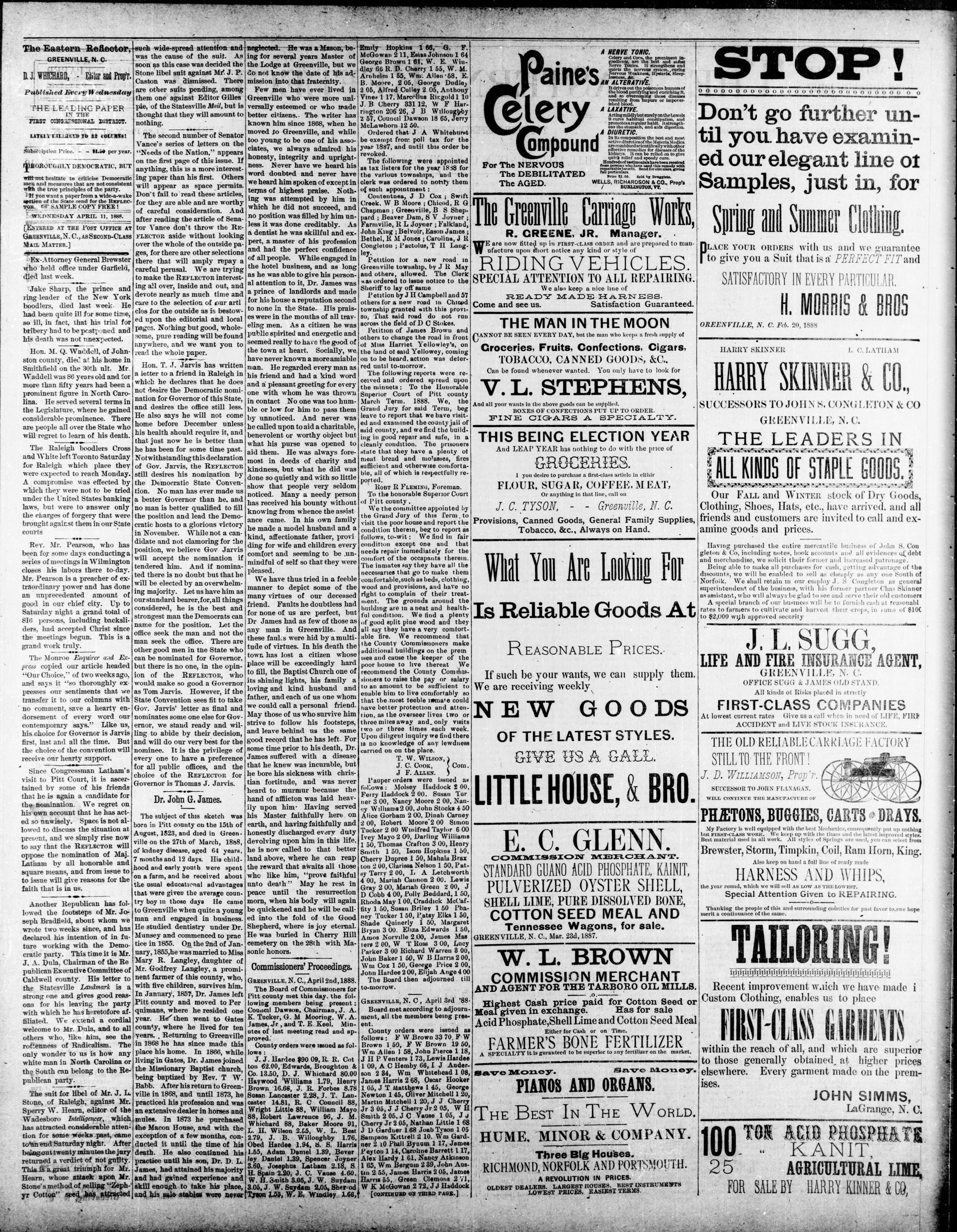 GREENVILLE, PITT COUNTY, N. C, WEDNESDAY APRIL 1888