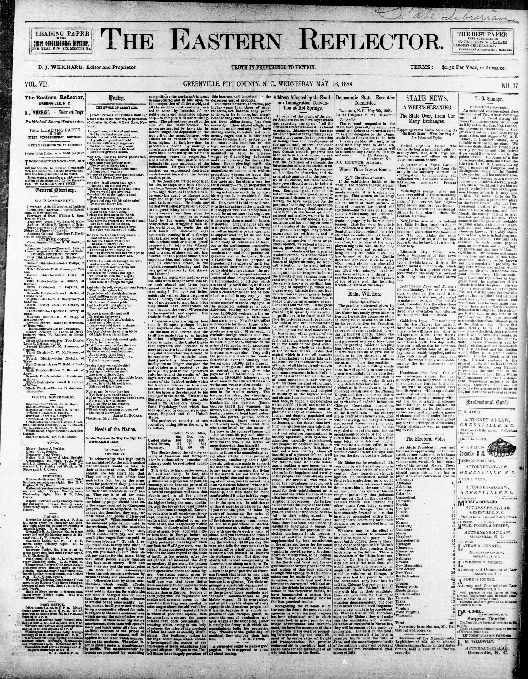 GREENVILLE, PITT COUNTY, N. C, WEDNESDAY MAY 1888