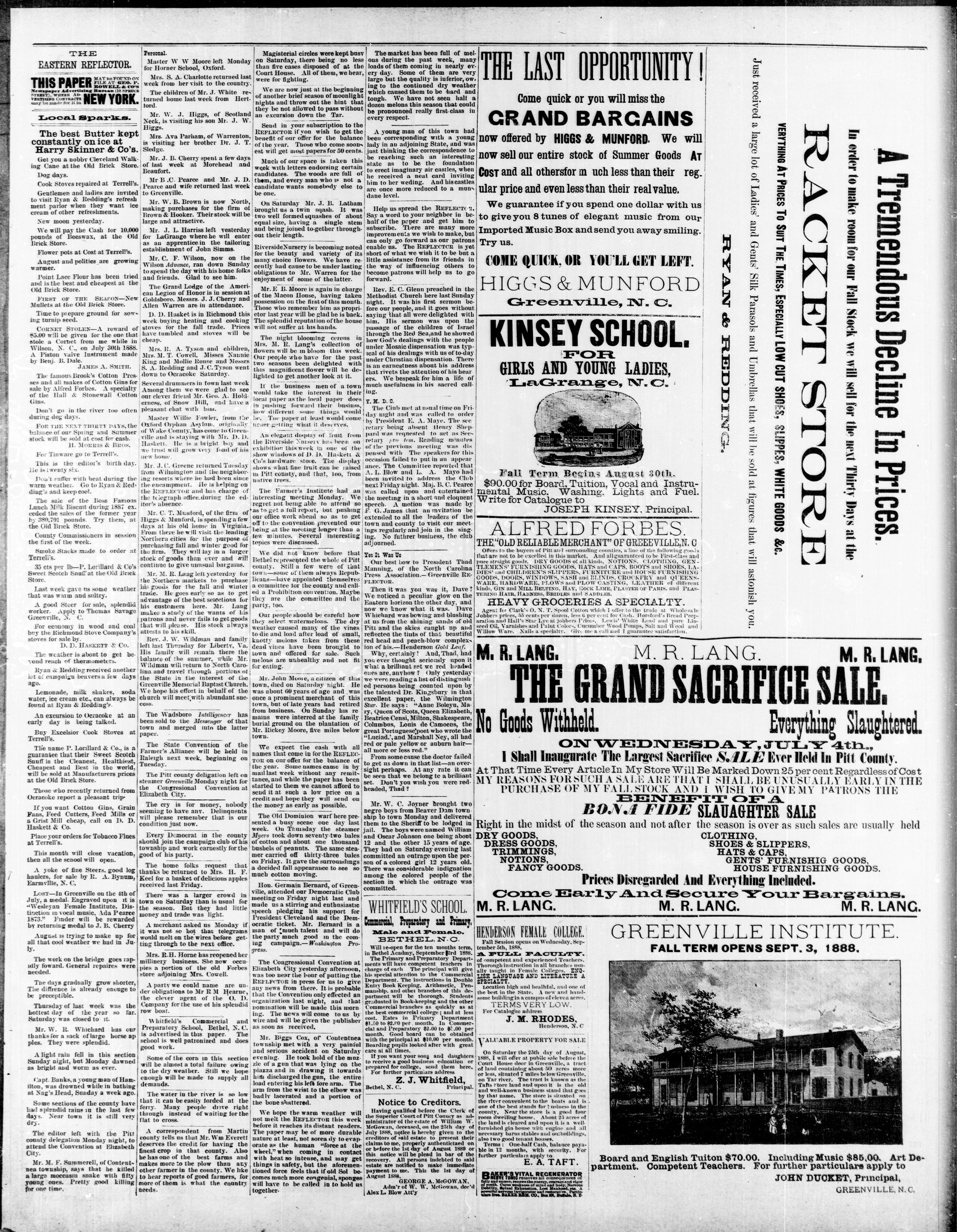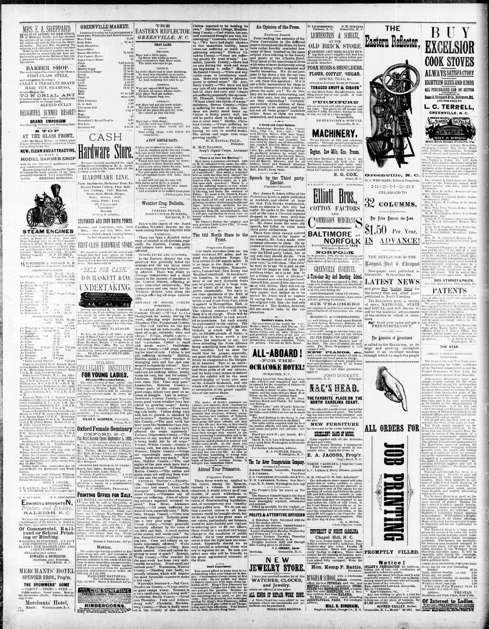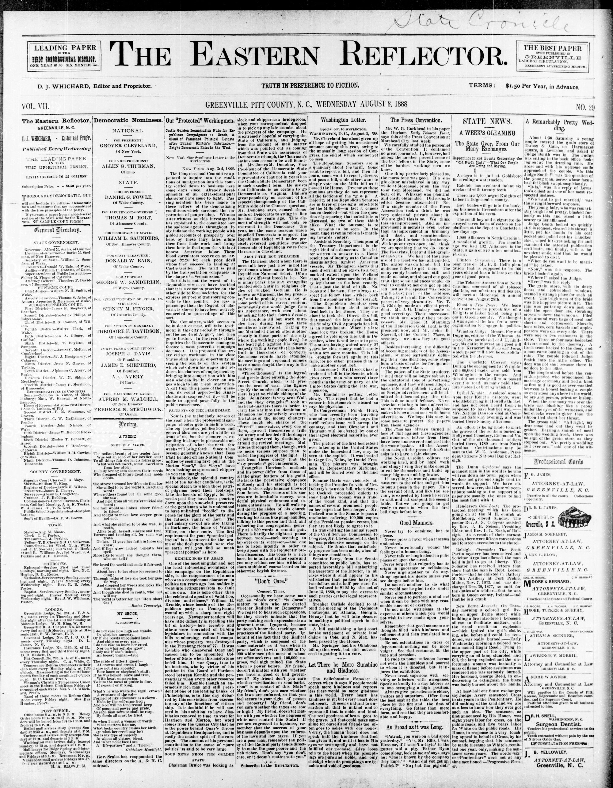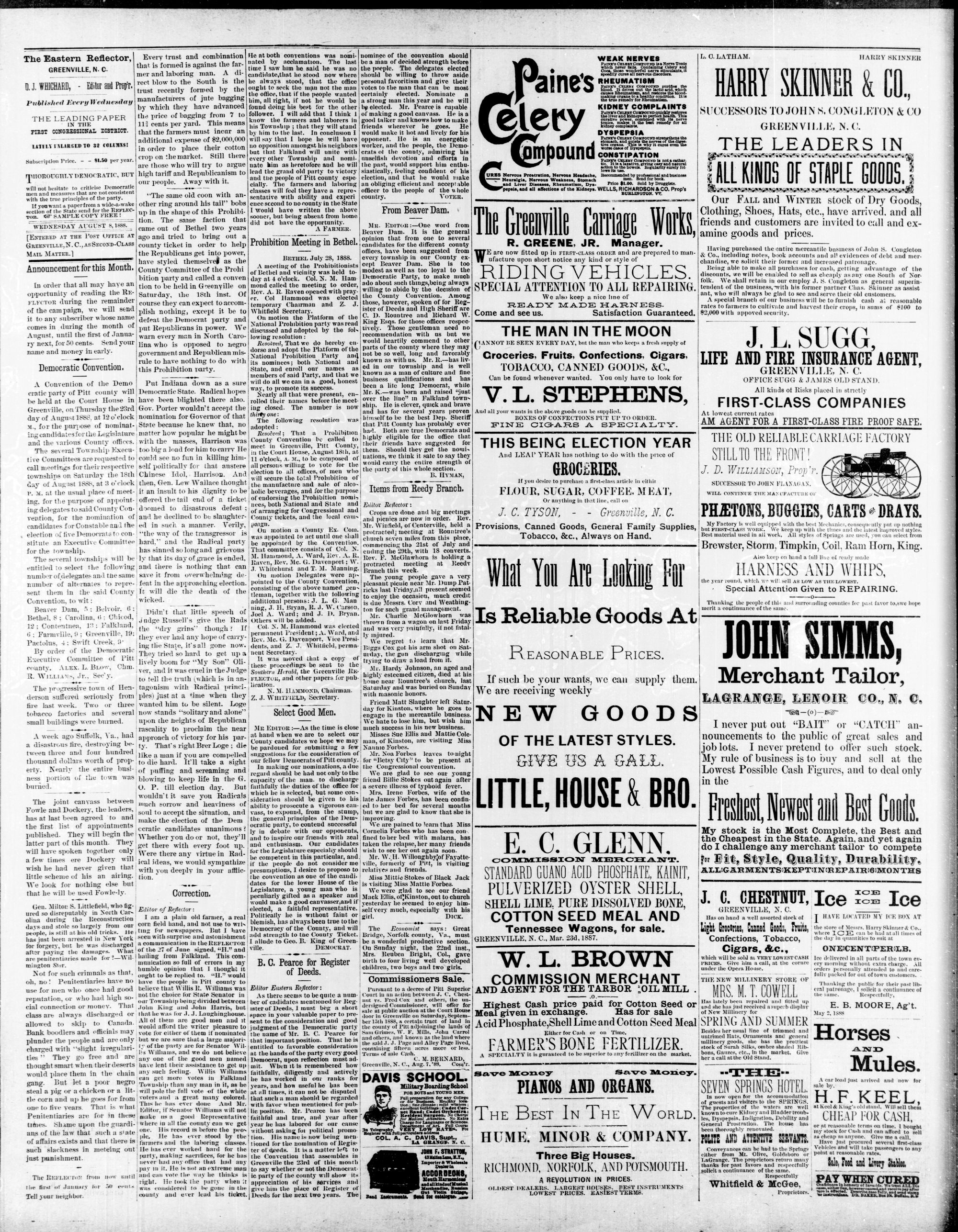 GREENVILLE, PITT COUNTY, N. C, WEDNESDAY AUGUST 1888