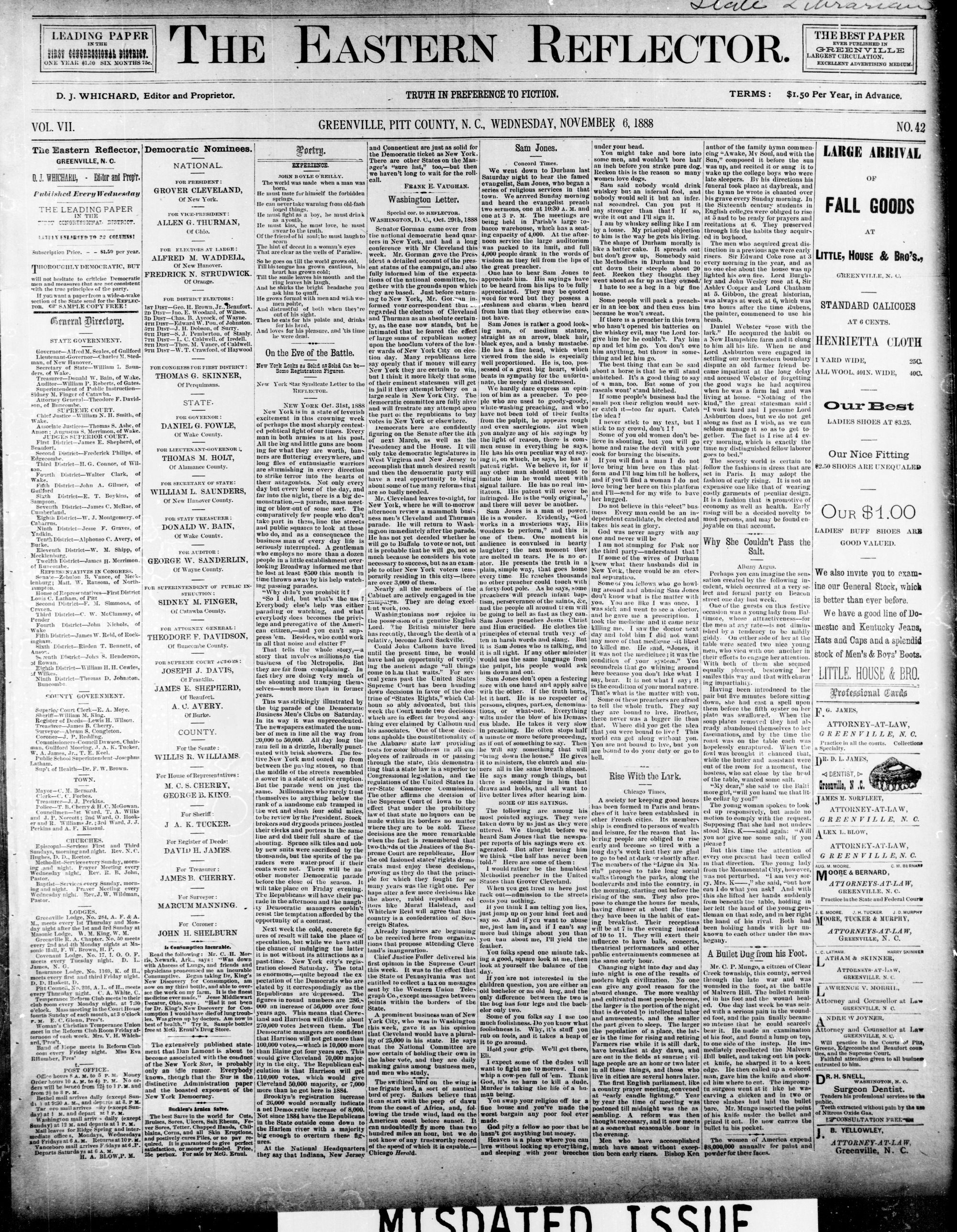 GREENVILLE, PITT COUNTY, N. C, WEDNESDAY, NOVEMBER 1888